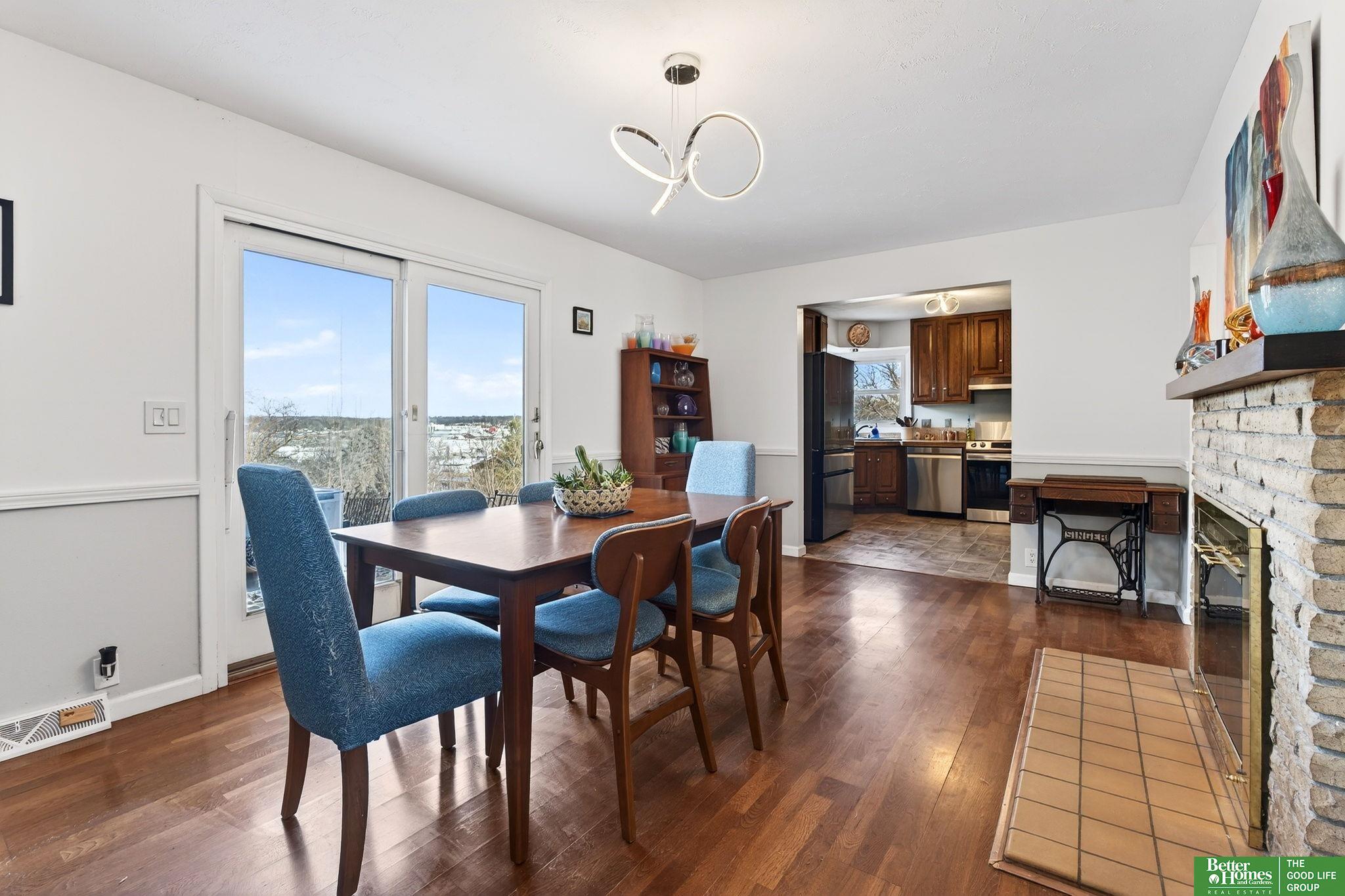 What a fantastic opportunity in highly sought-after District 66! Perched high on the hill with beautiful northeast city views, this mid-century one-and-a-half story home is full of character and charm. A circular drive under a canopy of mature trees sets the tone before you step inside to vaulted ceilings and an open loft that make a great first impression. The main floor offers a spacious living room, two bedrooms, a full bath, and a formal dining room with fireplace open to the kitchen—because every meal deserves a little ambiance. The dining area overlooks the deck and nearly half-acre yard, perfect for relaxing or entertaining. Upstairs, you’ll find a cozy den with city views, two additional bedrooms, and a full bath. The lower level features a huge open family room with flexible space for movies, workouts, or hobbies. A built-in two-car garage and ample driveway parking complete this classic home with room to grow—this one checks all the boxes.