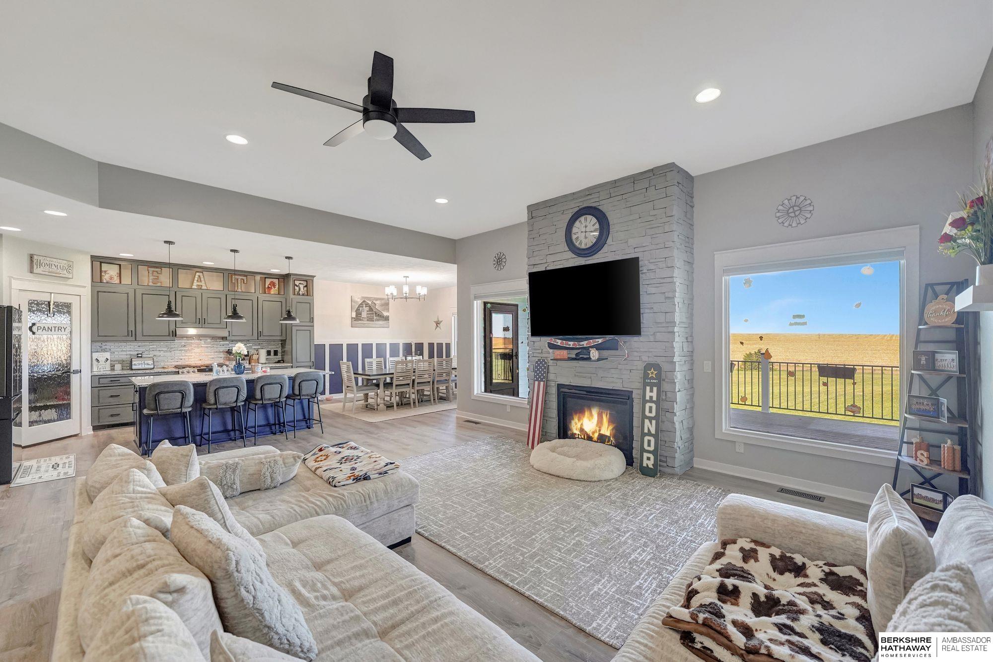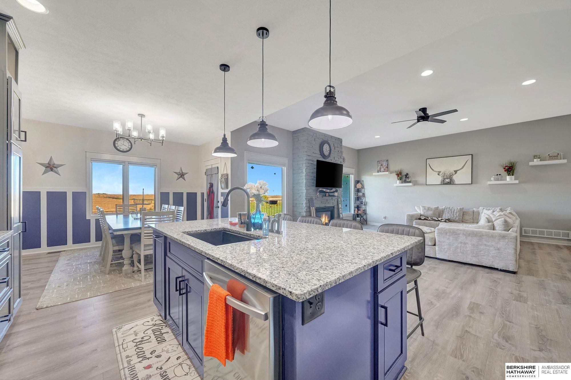 Beautiful Scenic Acreage on Pavement in Norris School District! Gorgeous open plan with large windows and spectacular views all around on over 3.25 acres. Over 1800 sf on first floor in this beautiful walk-out ranch. Granite counter tops, onyx shower, ceramic floors, cherry cabinets, whirlpool tub in primary bath, gas fireplace in the large living room. Newly Painted, and Flooring throughout. Pool with Composite Deck added in 2024! The basement is finished with family room/game room, full bath & 2 more bedrooms. Underground sprinklers! The kitchen provides a roomy walk-in pantry and High end appliances. The 30 x 40 (1200 SF) outbuilding has a concrete floor and provides storage for your toys. Norris is 5 miles away and the Bus picks students up at Bowman Circle!