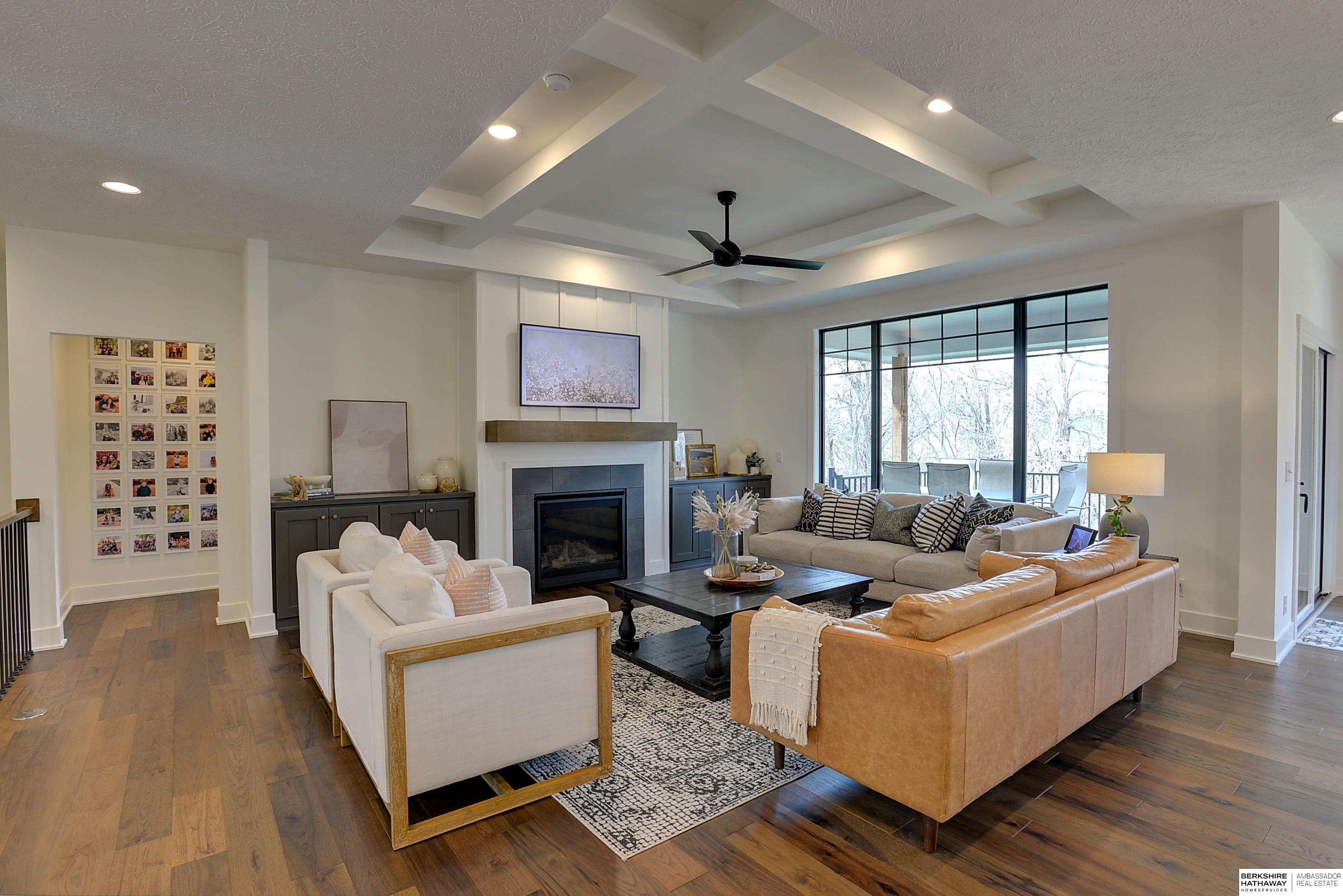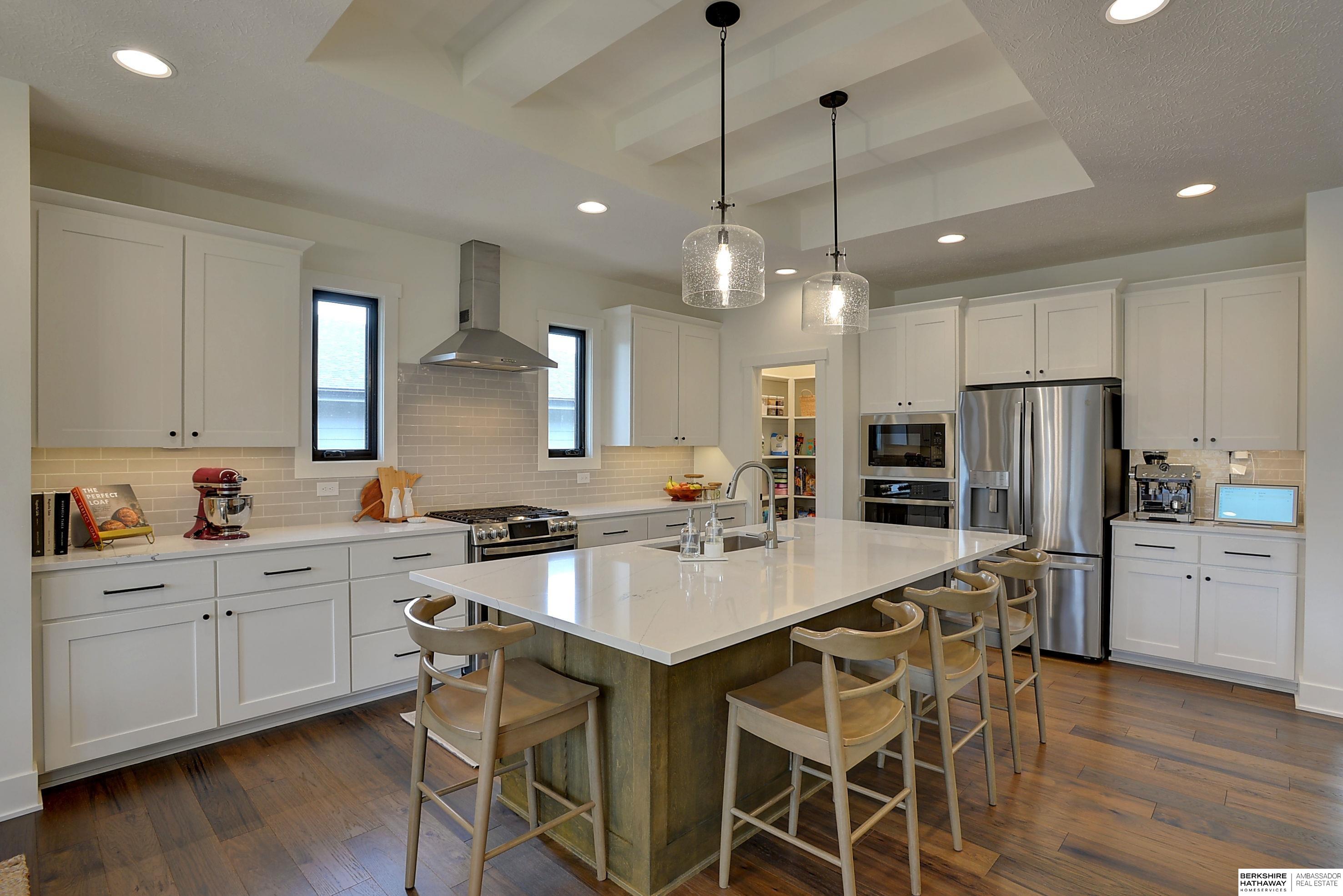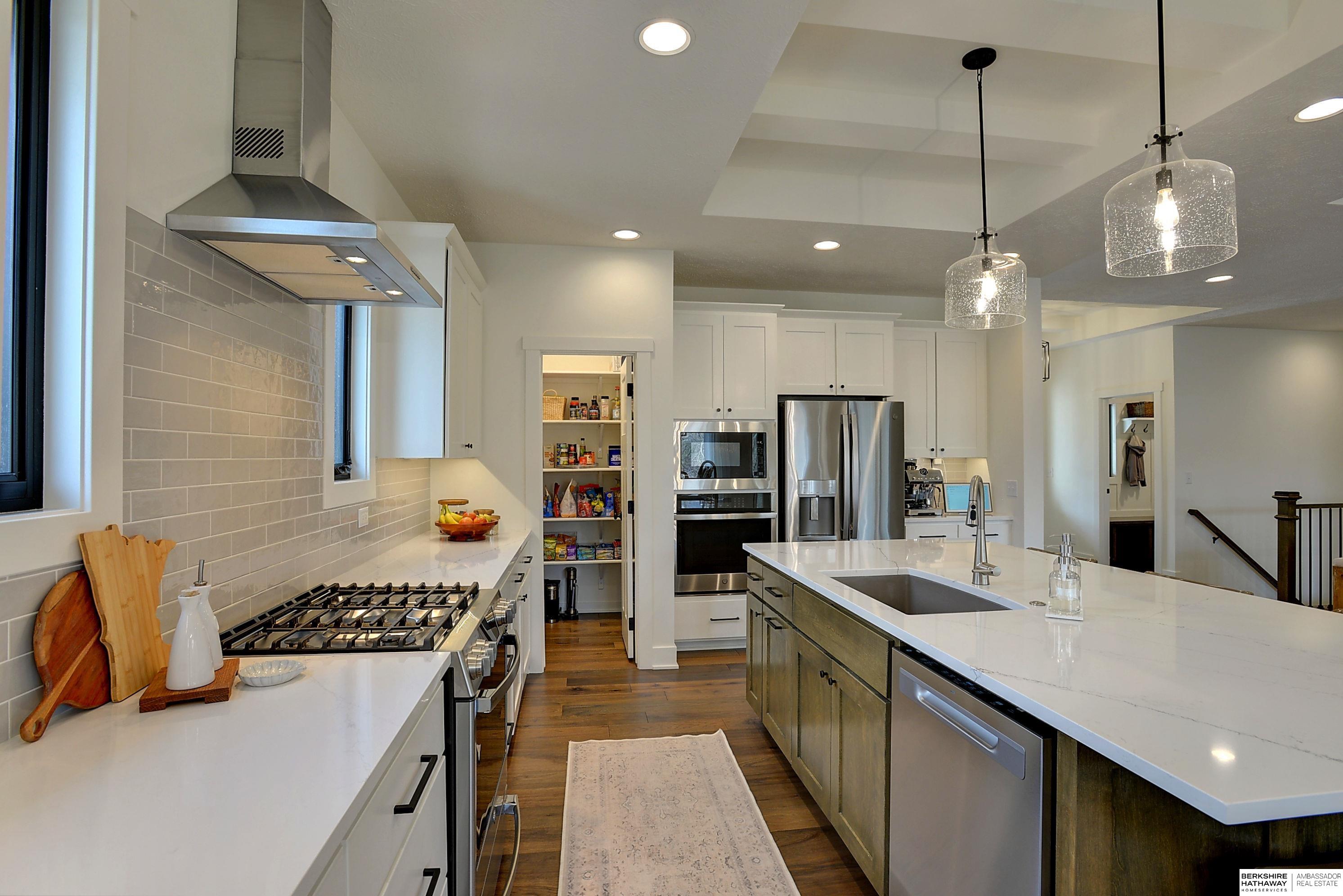 Relocation-Additional paperwork required. 4 BD/3 BTH/3 Car wide open floor plan with character, function and style! Engineered hardwood floors, tile backsplash, quartz counters, custom lighting and locally handcrafted cabinetry add to the beauty of this well cared for one owner home! Durable engineered hardwood floors span the living room, dining and kitchen areas. Bright and open kitchen featuring GE profile stainless steel appliances that all stay with the home, painted and stained kitchen cabinetry, quartz countertops, custom lighting and eat in kitchen. Added storage in the walk-in pantry along with a built-in custom hutch in the dining area. A gas fireplace for those cozy winter evenings! Coffered ceilings add warmth to the inviting great room and entry. Marvin windows, natural stone, hardboard exterior along with some board and batten and shingle siding. Relax on your covered deck backing to mature trees in your private backyard! Finished lower level offers a flex room and family