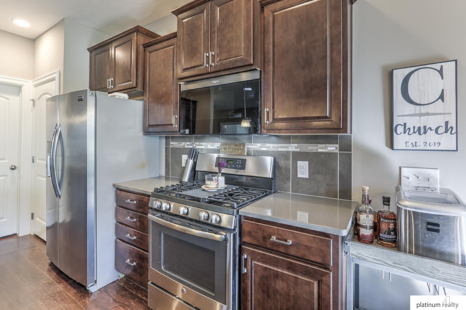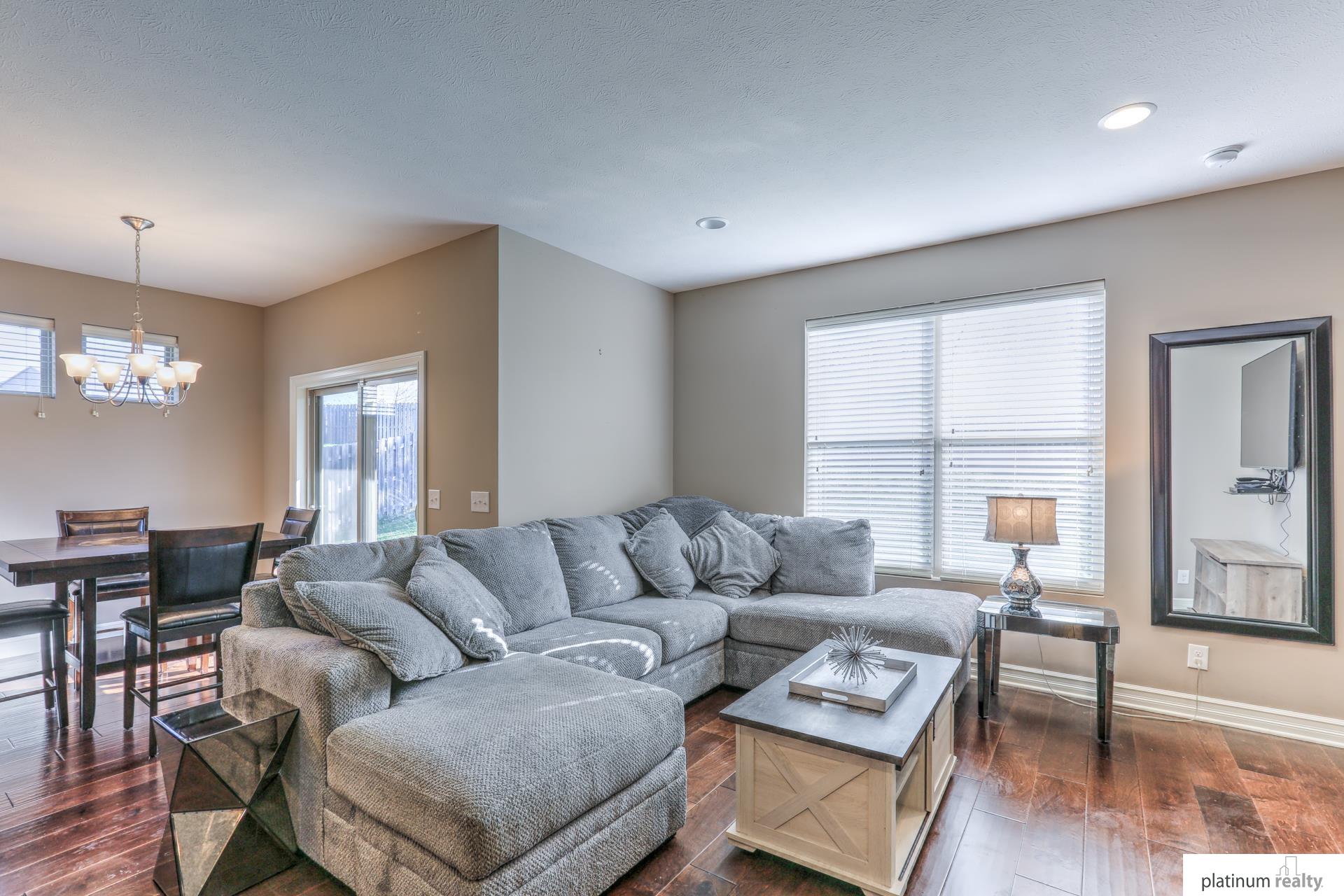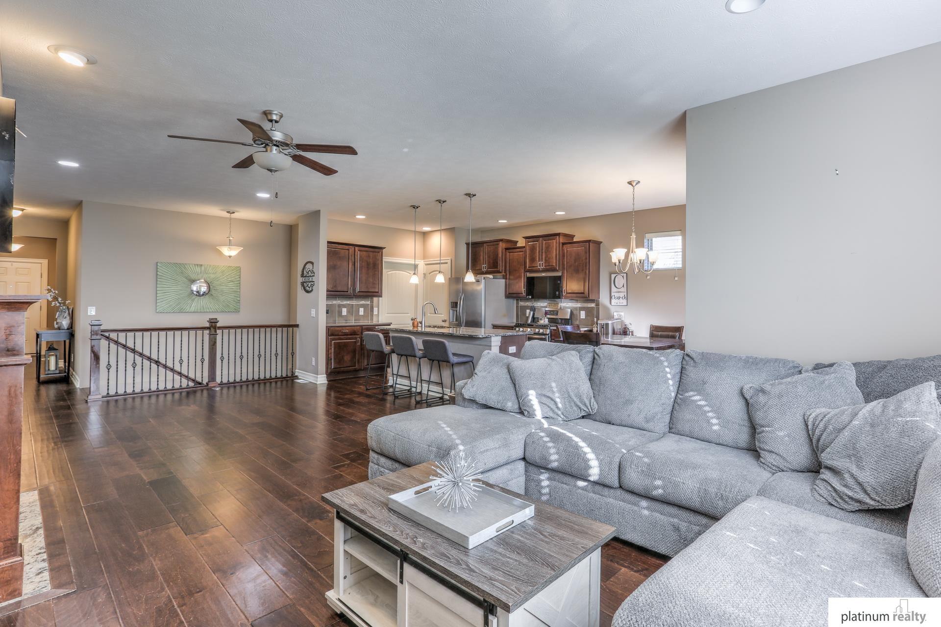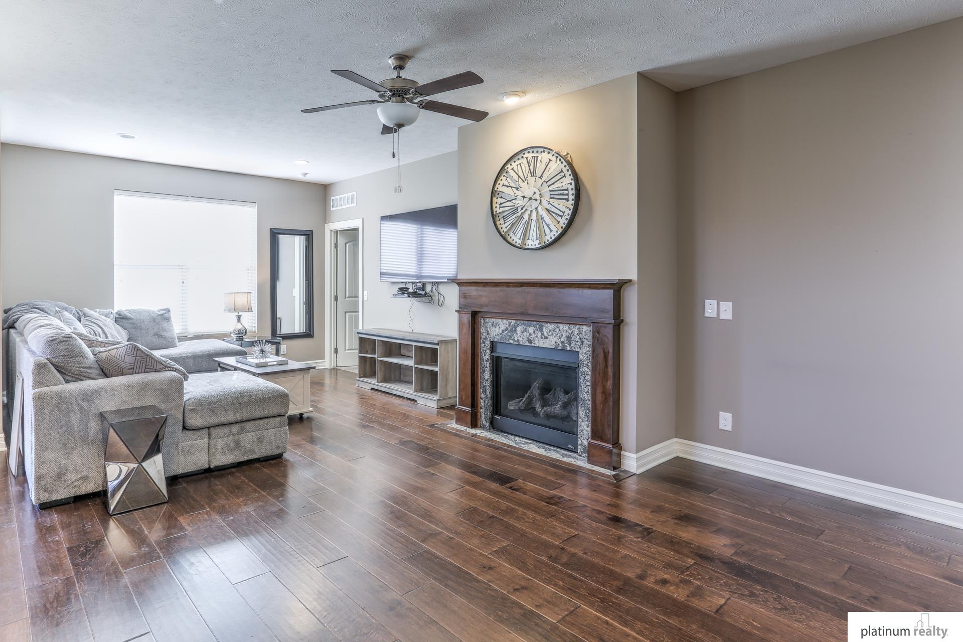 Beautiful Ranch Home with Open Floor Plan and Modern Finishes. Immaculate ranch home featuring an open-concept layout with hardwood floors throughout the main living areas. The spacious kitchen offers granite countertops, stainless steel appliances, a large island, and rich wood cabinetry. The bright living room includes a cozy gas fireplace and large windows that provide plenty of natural light. The primary suite features a comfortable layout with ample closet space and a private bath. Additional bedrooms offer flexibility for guests, an office, or hobbies. Enjoy dining with a view of the backyard and easy access to the patio—perfect for entertaining. Beautiful curb appeal with mature landscaping and a covered front porch. Conveniently located near parks, schools, and lakes. Move-in ready and meticulously maintained!