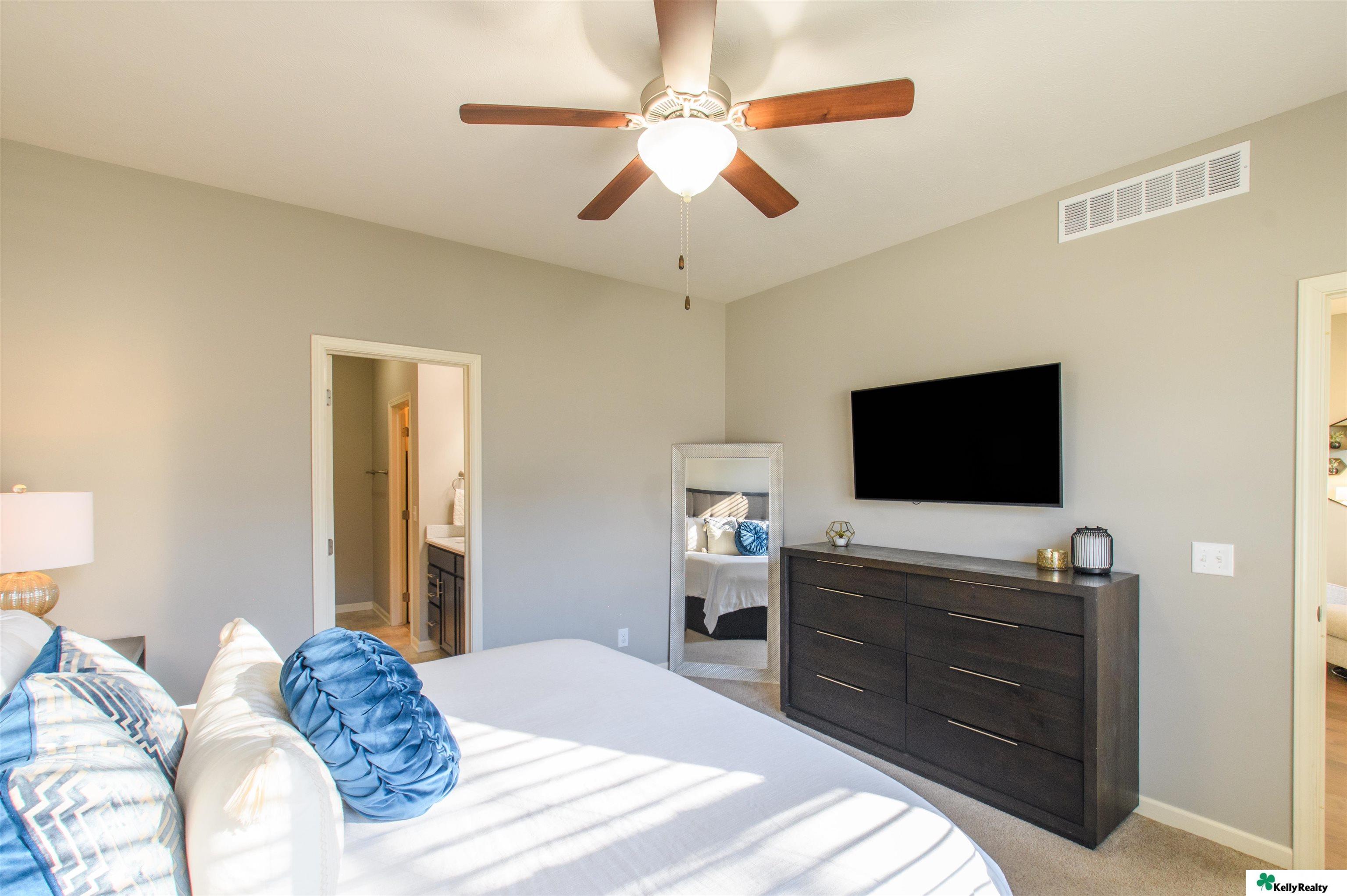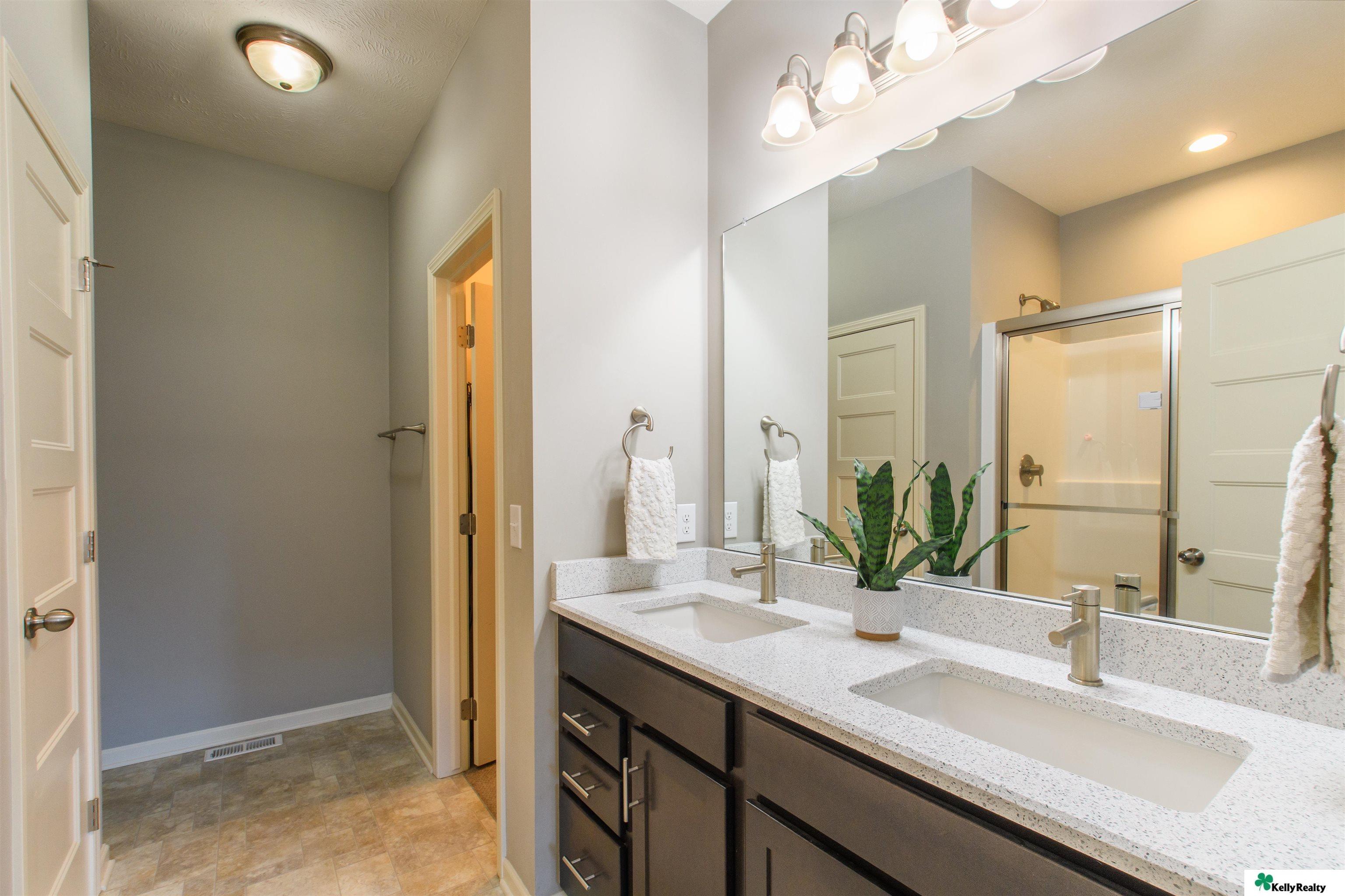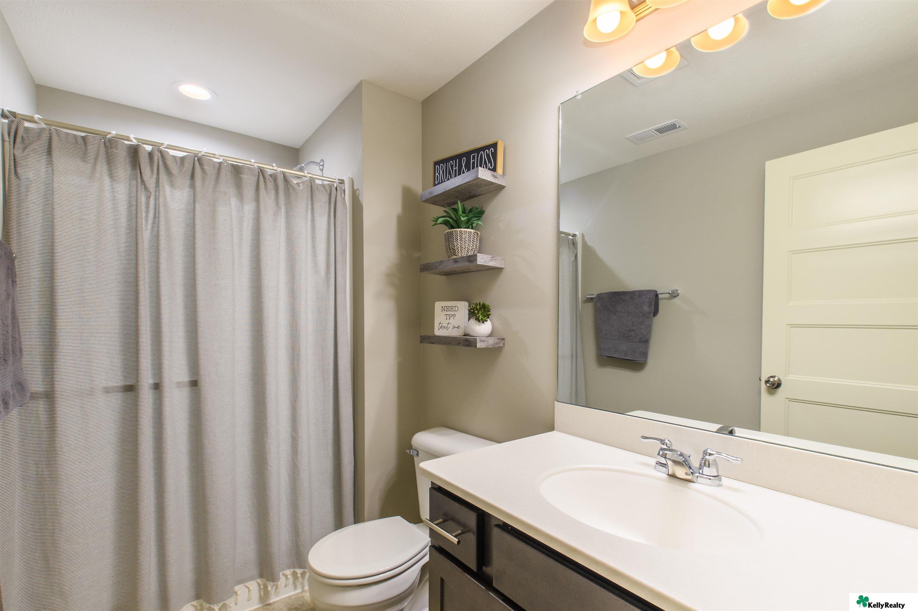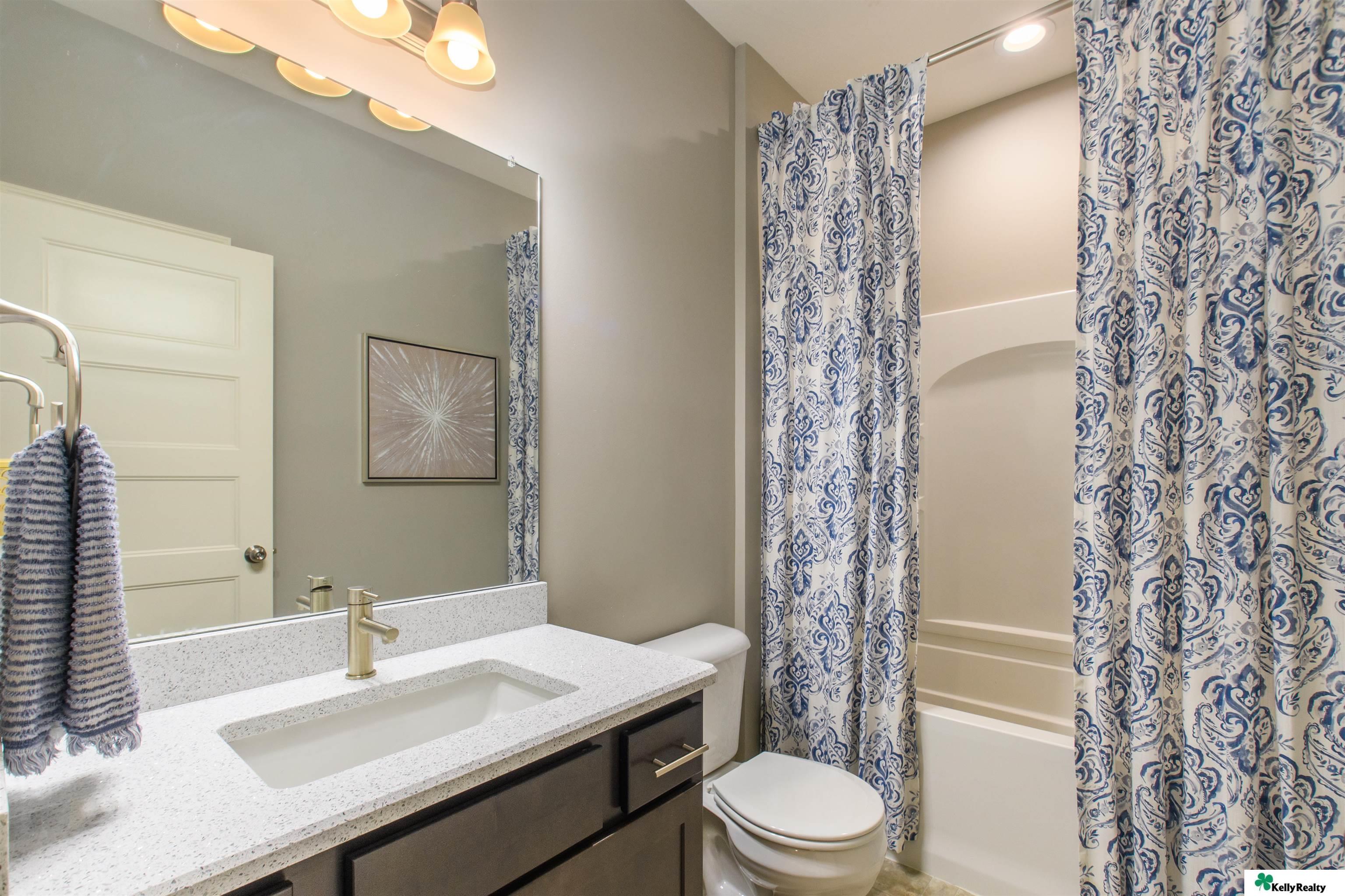 Welcome to 7912 S. 185th St. in Omaha! This beautifully maintained 4 bed, 3 bath, 3-car garage home built in 2019 showcases quality craftsmanship and designer finishes throughout. The main floor features engineered hardwood flooring flowing through the hallway, living room, kitchen, and dining area. The living room is highlighted by a stunning stone-wrapped fireplace. The kitchen offers slate appliances, quartz countertops, and modern finishes that continue throughout the bathrooms. The primary suite includes a walk-in closet and spa-like bath with dual vanity, shower, and toilet area. The finished lower level provides a spacious living area, fourth bedroom, three-quarter bath, multipurpose room with ample storage, and water softener. Enjoy the fully fenced backyard with an extra-large concrete patio and sprinkler system - perfect for entertaining or relaxing. Showings begin Friday March 13!