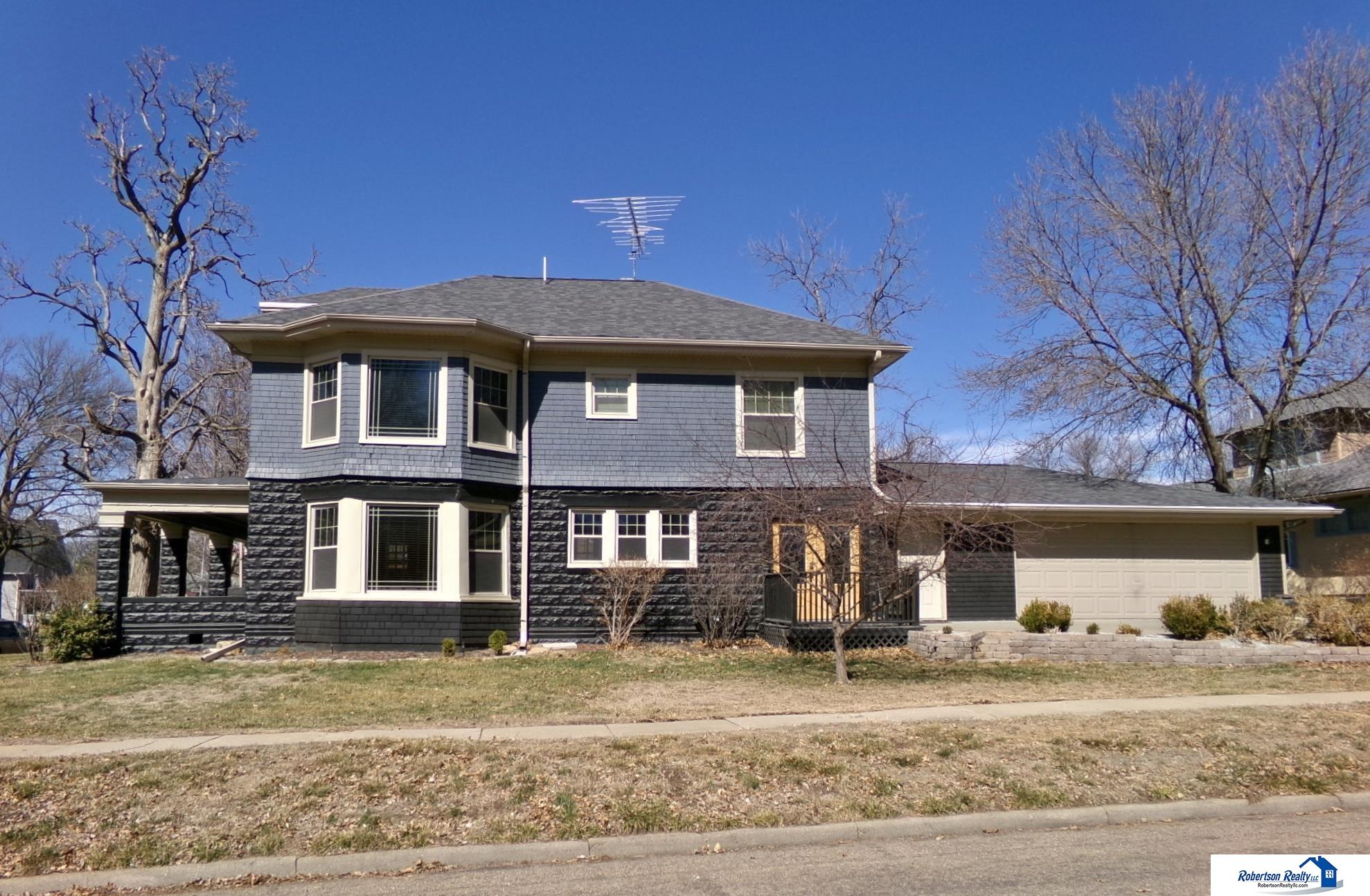 Great New Price! Great value in Beatrice! Over 2300 sq. ft. of living space with an elegant side-entry oversized garage! WoW! Take a look at this beautiful home with its wrap around front porch, 4 nice-sized bedrooms, 3 full bathrooms, delightful kitchen with custom ceiling (see pictures), office with built-in bookcase and double french doors, huge living room with hidden storage in the seating area of the gorgeous bay window, gas fireplace, main floor laundry with washer & dryer to stay, oversized 2 car attached garage, and storage shed all on a corner lot in the heart of Beatrice. New Roof, New Windows, New Blinds, Updated Shower & Baths, Beautiful Wood Floors, Some New Carpeting, Water Softener, and Tankless Water Heater. Set up a tour today - You won't be disappointed. (Cash or Conventional Loan Buyers)
