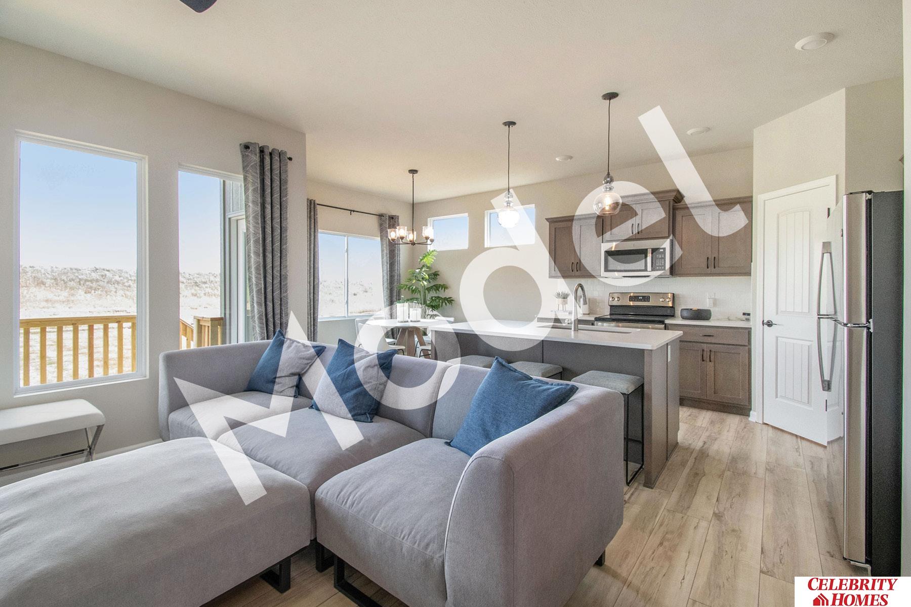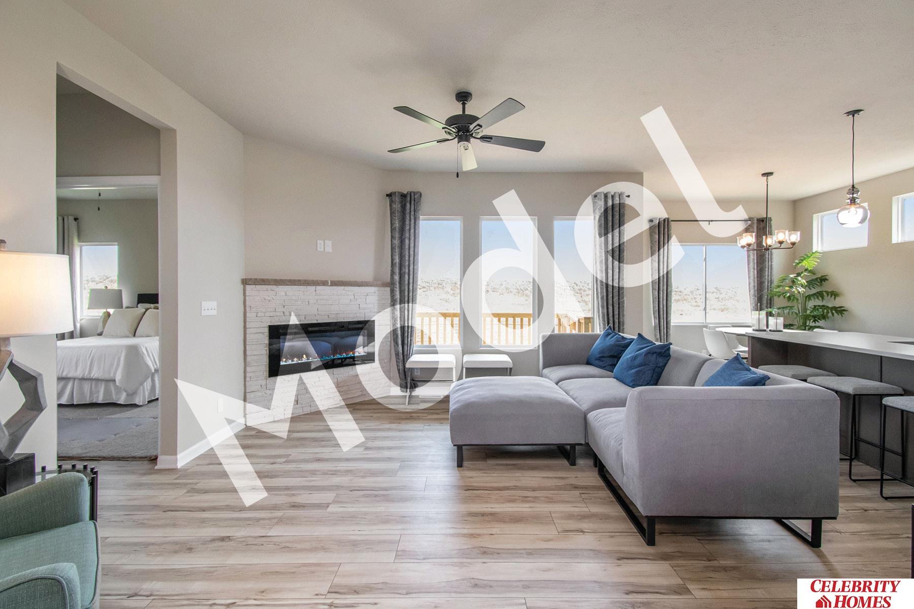 Model Home Not for Sale. MODEL HOME - NOT FOR SALE. Welcome to The Jordan by Celebrity Homes. This Ranch Design offers 3 bedrooms on the main floor With privacy for the Owner’s Suite! The JORDAN Design has a spacious main floor Gathering Room leading into an Eat-In Island Kitchen and Dining Area. And with Raised Ceilings towering over 9’, the main floor seems even more spacious. Owner’s Suite is appointed with a walk-in closet, ¾ Privacy Bath Design with a Dual Vanity. Features of this 3 Bedroom, 2 Bath Home Includes: 2 Car Garage with a Garage Door Opener, Refrigerator, Washer/Dryer Package, Quartz Countertops, Luxury Vinyl Panel Flooring (LVP) Package, Sprinkler System, Extended 2-10 Warranty Program and Professionally Installed Blinds, and that’s just the start! (Pictures of Model Home) Final price may vary due to additional features added at time of contract.