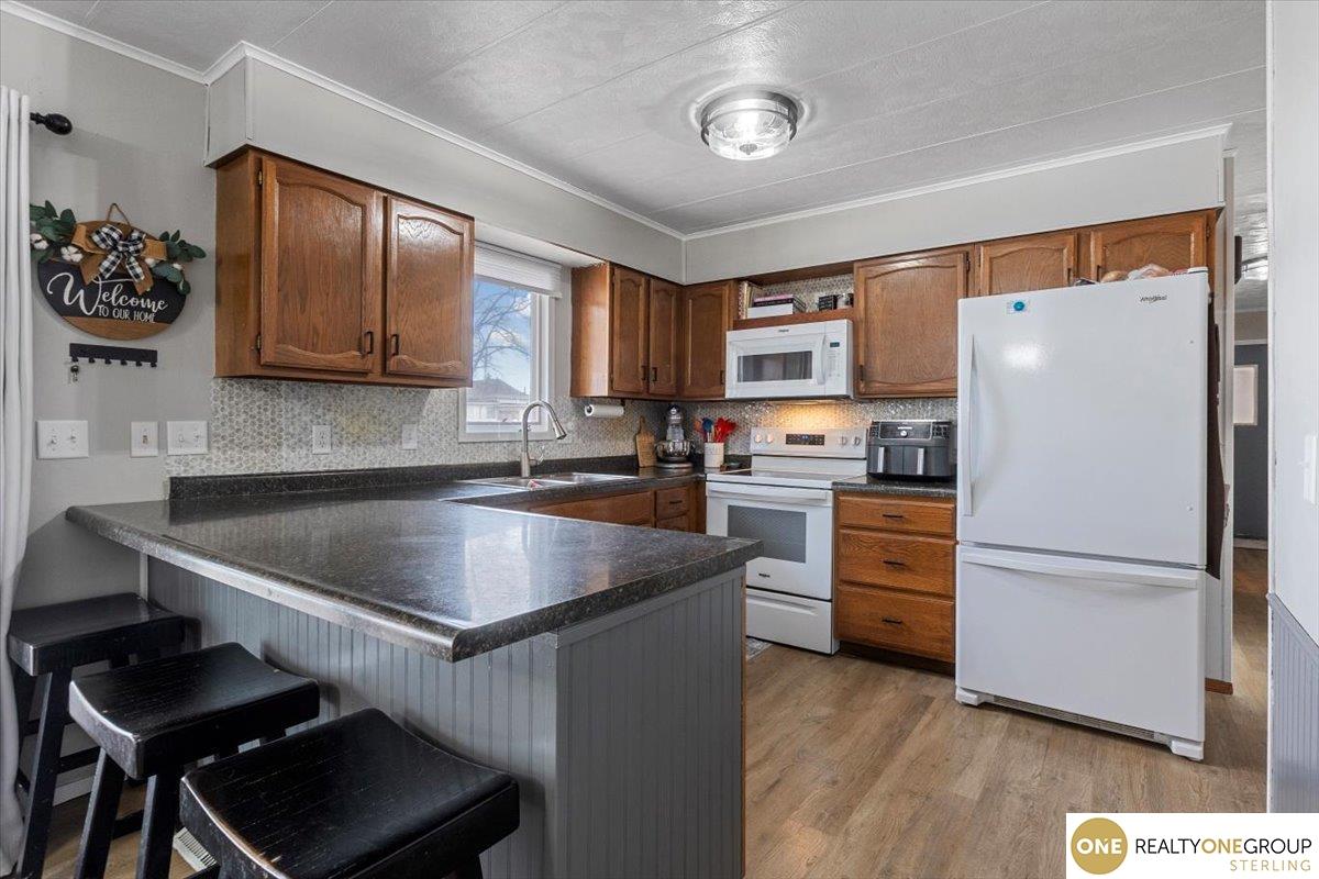 Welcome to this charming ranch home offering classic character and great potential. The exterior features a unique stone accent façade and a white picket fence surrounding the spacious front yard. Inside, enjoy a bright living room with wood laminate flooring and a large picture window that brings in plenty of natural light. The kitchen features oak cabinetry, a modern tile backsplash, and updated appliances. This home includes 3 comfortable beds and 2 bathrooms, providing plenty of space for family or guests. A massive unfinished basement, already framed, offers endless possibilities for additional living space, such as a theater, gym, or rec room. Car enthusiasts will appreciate the oversized 2-car garage and large driveway. Outside, relax on the covered back deck overlooking the fully fenced backyard—perfect for entertaining or quiet evenings. With recent updates and a great layout, this home offers a fantastic opportunity to build equity. Schedule your private showing today!