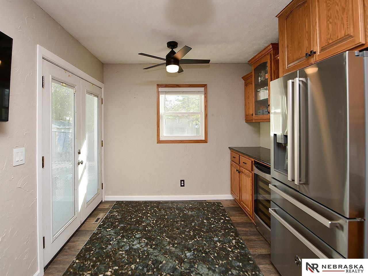 Welcome to this 3/3/2 split entry in Papillion school district. Walk in the front door and you are greeted with so many updates. You will love the large living room with architectural appeal, new carpet on the main level, new interior paint, new light fixtures and fans. The kitchen is large and boasts granite counters w/new backsplash, SS appliances + wine cooler, new hardware, new LVP flooring and pantry w/pull outs. Step onto the large Trek deck that wraps around an above ground pool w/new liner and pump. The kitchen has an eat-in area, but close by is the large DR. The bathrooms have been updated with tile flooring, solid surface counters, new tile shower in PB, some new doors and step in closet. The LL houses a large brick FP. Functional storage under landing, newer carpet and extra bonus room w/ 1/2 bath. Roof - 2025, new furnace/AC, HWH-2018. Easy access to 370, shopping, parks, schools, medical and so much more. Houses in this neighborhood are not available often!