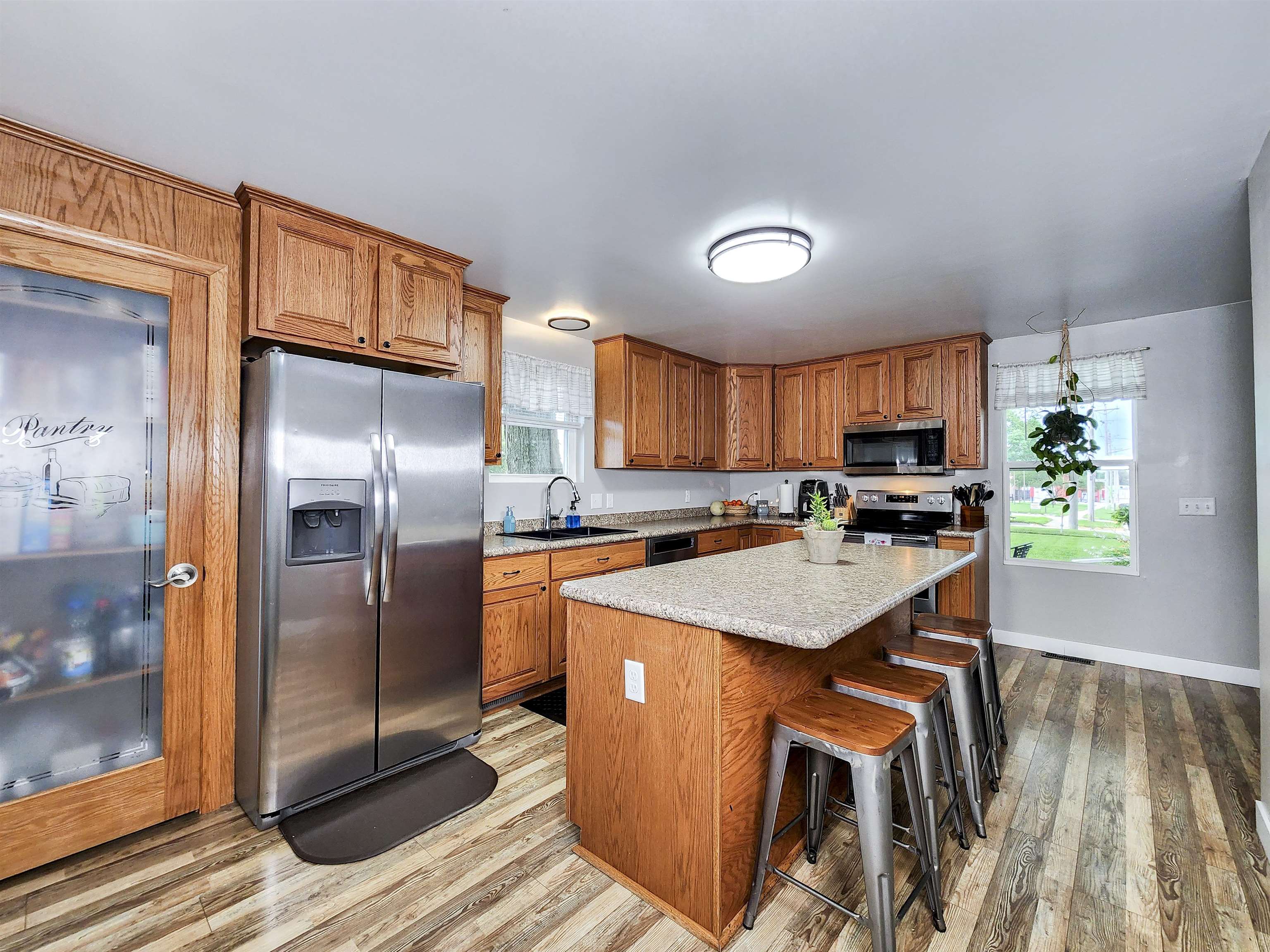 Snow will be here before we know it, but you won't mind in this home becasuse the main driveway is city owned and maintained for snow removal! This beautifully updated and well-cared-for 4bd, 2ba home is much more spacious than the photos suggest; featuring main floor laundry, spacious main floor bedrooms, primary suite with a full bathroom, and a second full bathroom located just off the kitchen. Upstairs you'll find 2 additional bedrooms with plenty of closet space. Notable updates include NEW HVAC in 2020 - - - NEW ROOF in 2017 - - - NEW WINDOWS in 2017 - - - DRYWALL THROUGHOUT (NO lath & plaster). The unfinished basement works great for storage. Outside you'll find a patio area right off the dining room and an an established lawn with beautiful landscping. Plently of room for a fenced in area for kids or pets. And potential to turn the single-car garage into an attached double car garage.