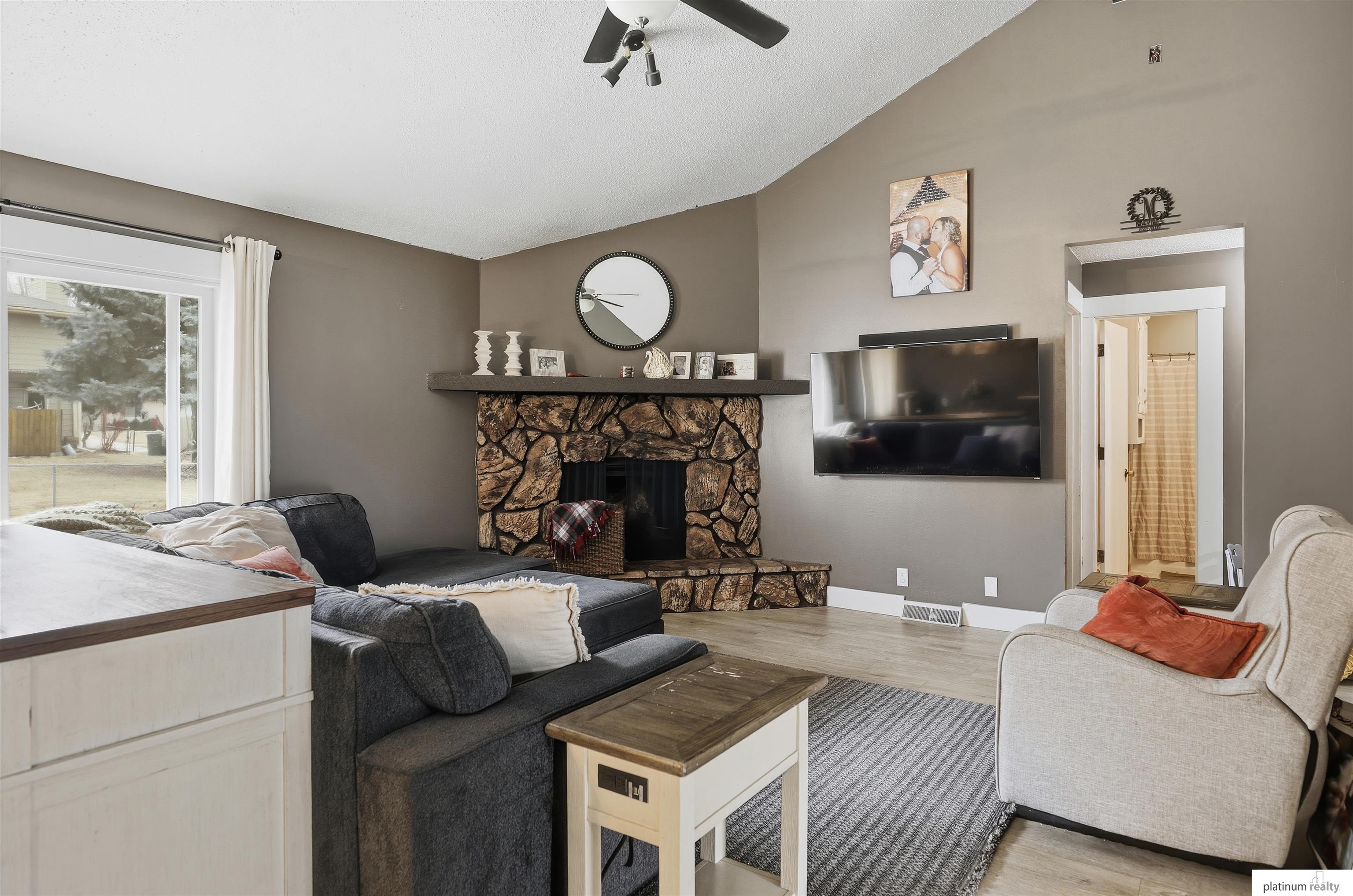 SHOWINGS BEGIN AND OPEN HOUSE SATURDAY, FEB 7TH 1PM-3PM. Welcome home to this beautifully maintained 3-bedroom property located in highly sought-after Papillion-La Vista School District. This home offers both comfort and functionality with a 2-car garage and a large utility room featuring extra storage. The main living area is warm and inviting with its cathedral ceilings, highlighted by a stunning stone fireplace that serves as the heart of the home. Downstairs, the daylight basement adds valuable living space and features a convenient sink, making it ideal for entertaining, hobbies, or a home workspace. Step outside to enjoy the newer patio, perfect for summer gatherings, overlooking large yard with mature trees.