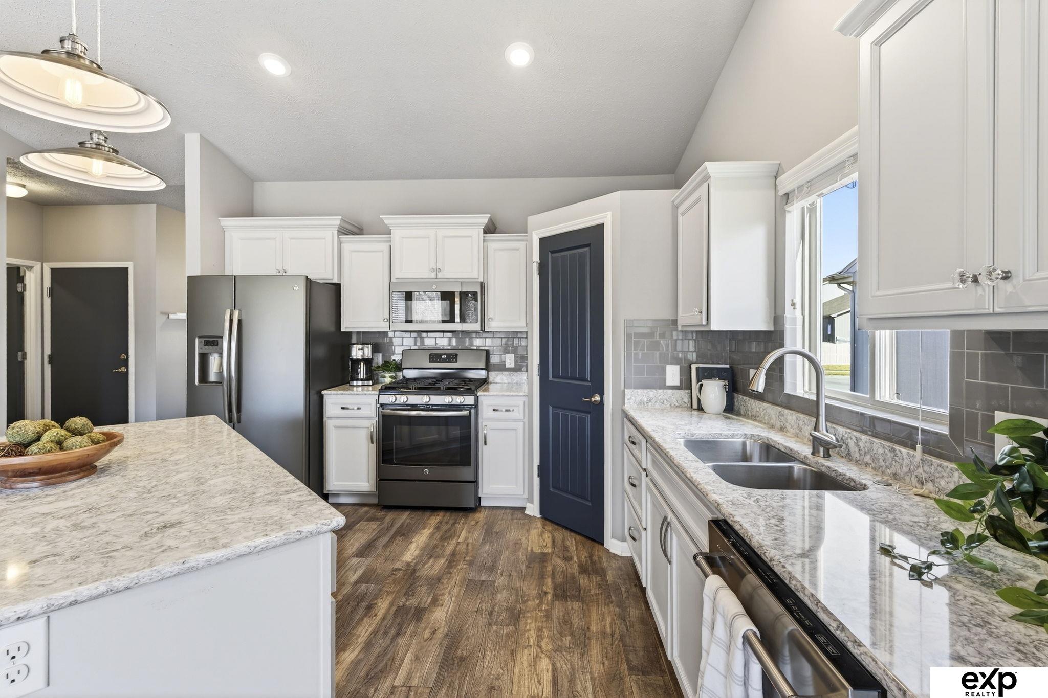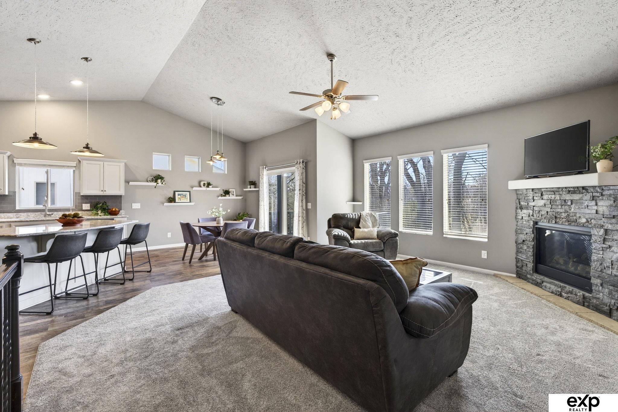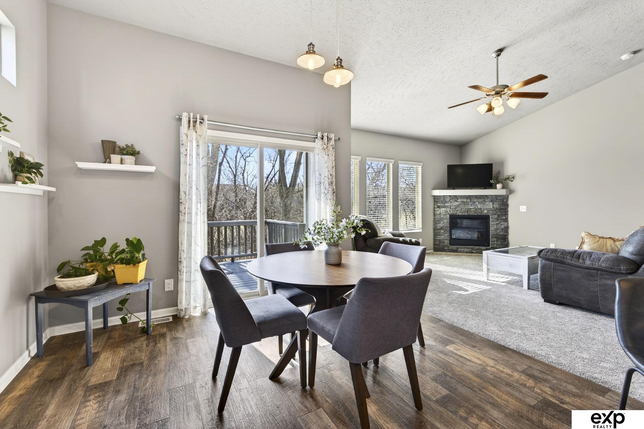 Open 3/28 11-12:30pm. Easy living in Gretna with this maintenance free villa backing to trees! Lawn and snow care are provided so you can move right in and enjoy this updated home featuring new carpet on the main level, new "Elfa" custom shelving system in the primary closet, some newer light fixtures, updates to kitchen cabinetry including hardware, and newer Kitchenaid dishwasher. Open floor plan with vaulted ceilings makes entertaining a breeze and the fully finished, walkout basement with large rec room gives multiple spaces to spread out and relax. Basement has a large storage room in addition to the utility storage space. Outside you will love spending your mornings or evenings enjoying your private yard overlooking a treed space that is full of vibrant colors in the fall. Other features include: sprinkler system, hot tub outlet on the oversized patio and RV outlet by the garage.