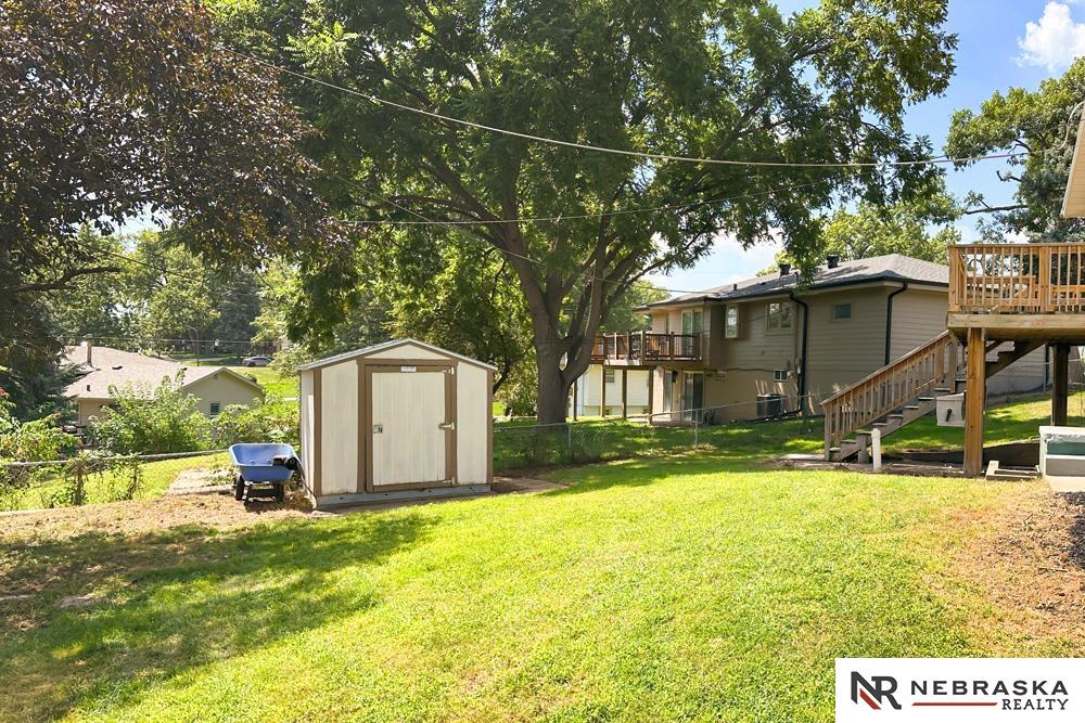 Contract Pending Spacious Multi Level on Huge Corner Lot! The lot line in front goes all the way to the neighbor's driveway. Extra driveway space to the right w/ potential to cement/rock for camper, boat etc. Approx 1800 fsf! New Roof 2024! Vinyl Siding! Same owner for over 22 years! Three bedrooms, 2 bathrooms, Original hardwood flooring! Fresh Interior paint throughout! Open Living room to updated kitchen and informal dining room. Nice-sized Flex/ office/den room. Main floor laundry room! Finished walkout lower level with new paint & carpet! Lower level features a large recreation room, storage, a back porch, and a walkout to the rear patio. Deck off the kitchen. Big backyard that is fully fenced w/shed! 3 separate entrances to the backyard. Close to schools. Close to Cornhusker HWY & 370. Low utility bills and Low Taxes!!