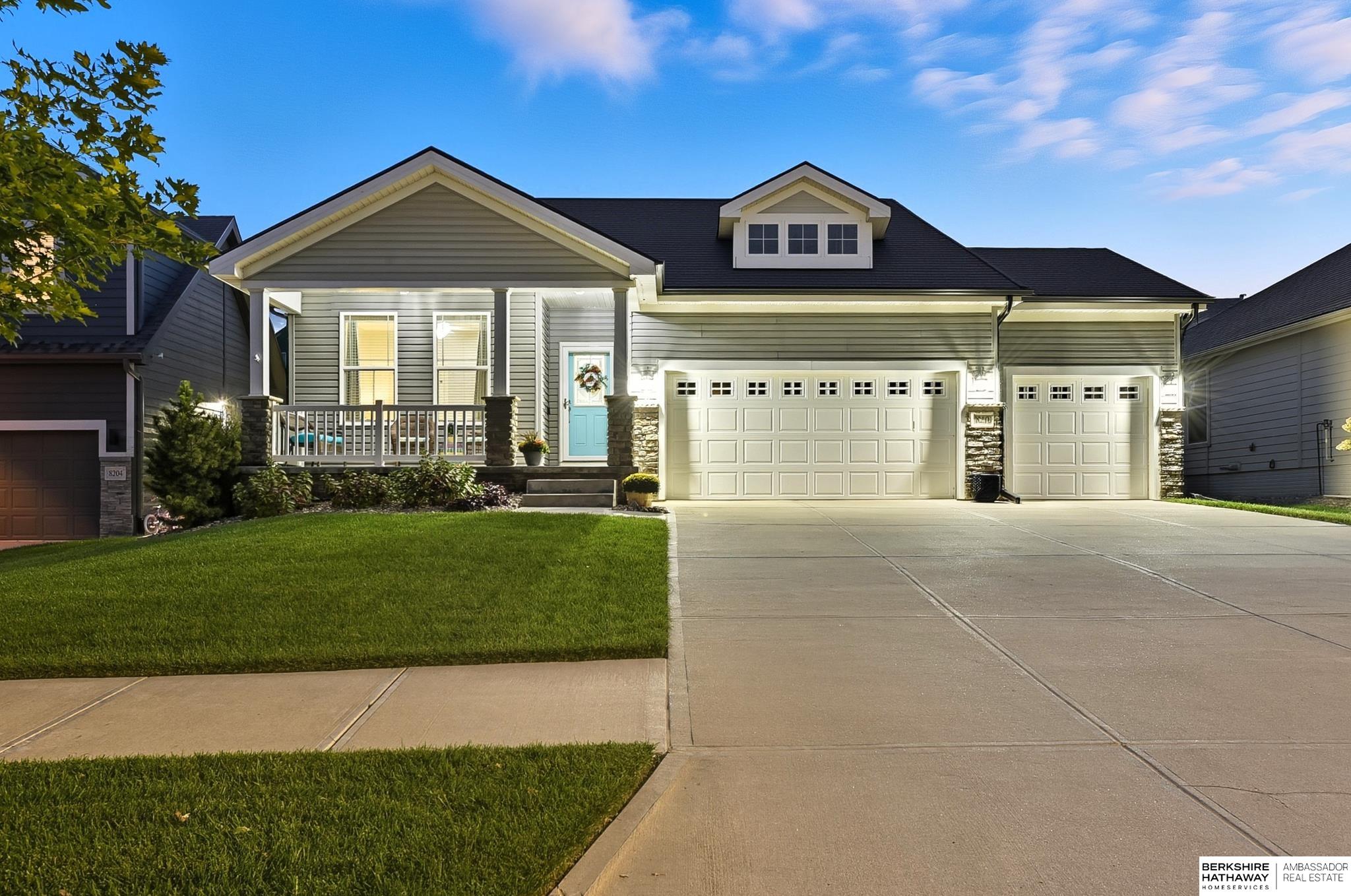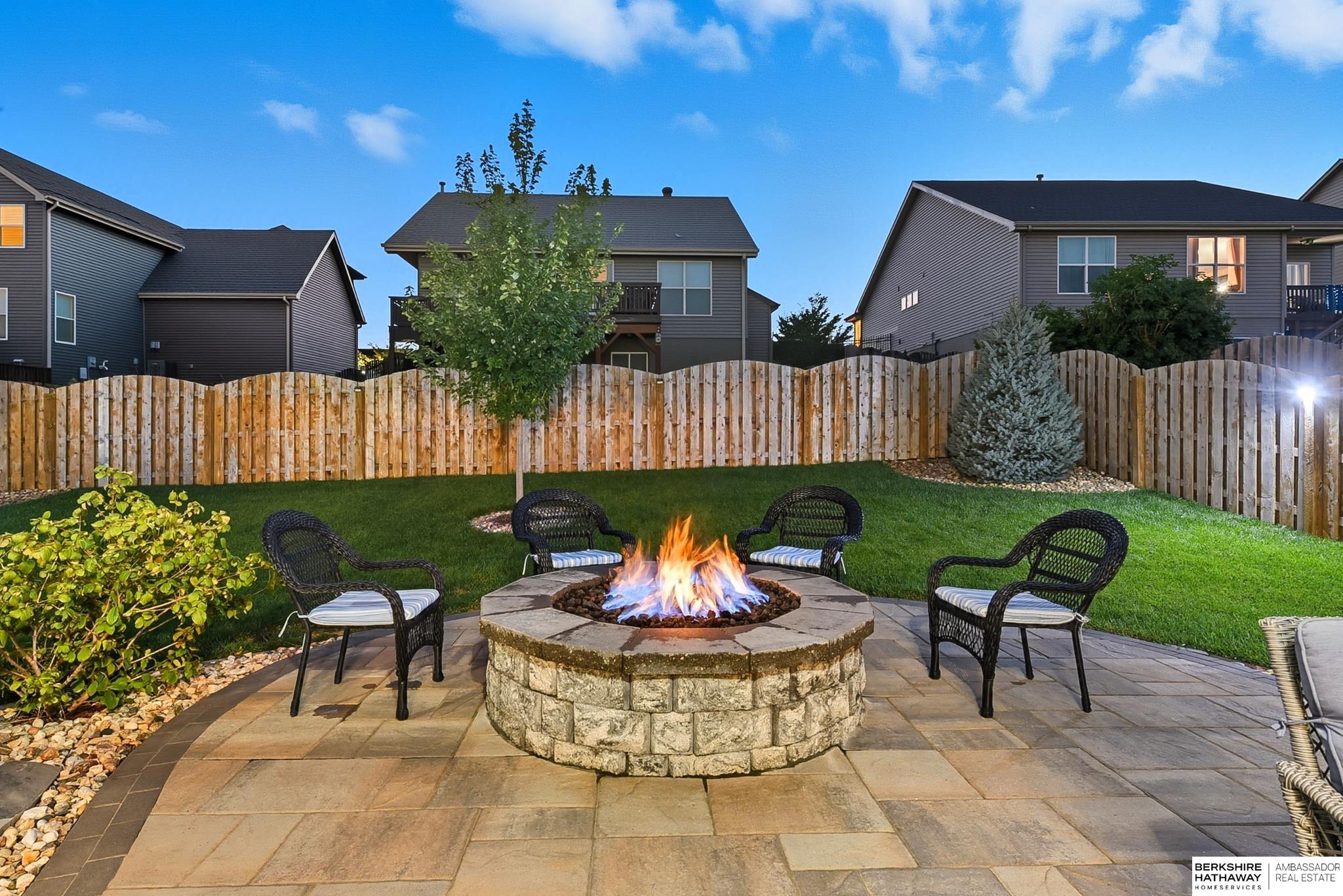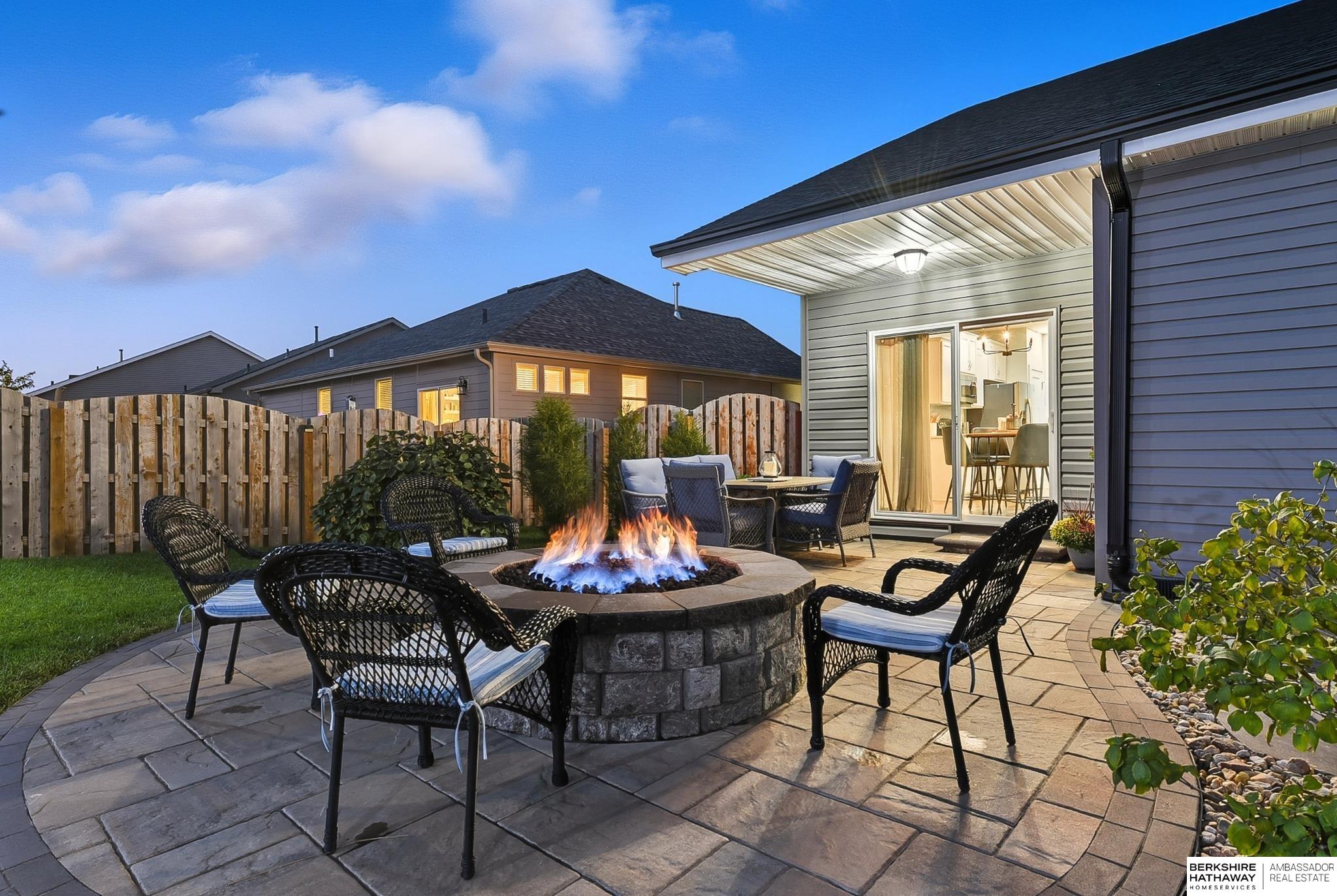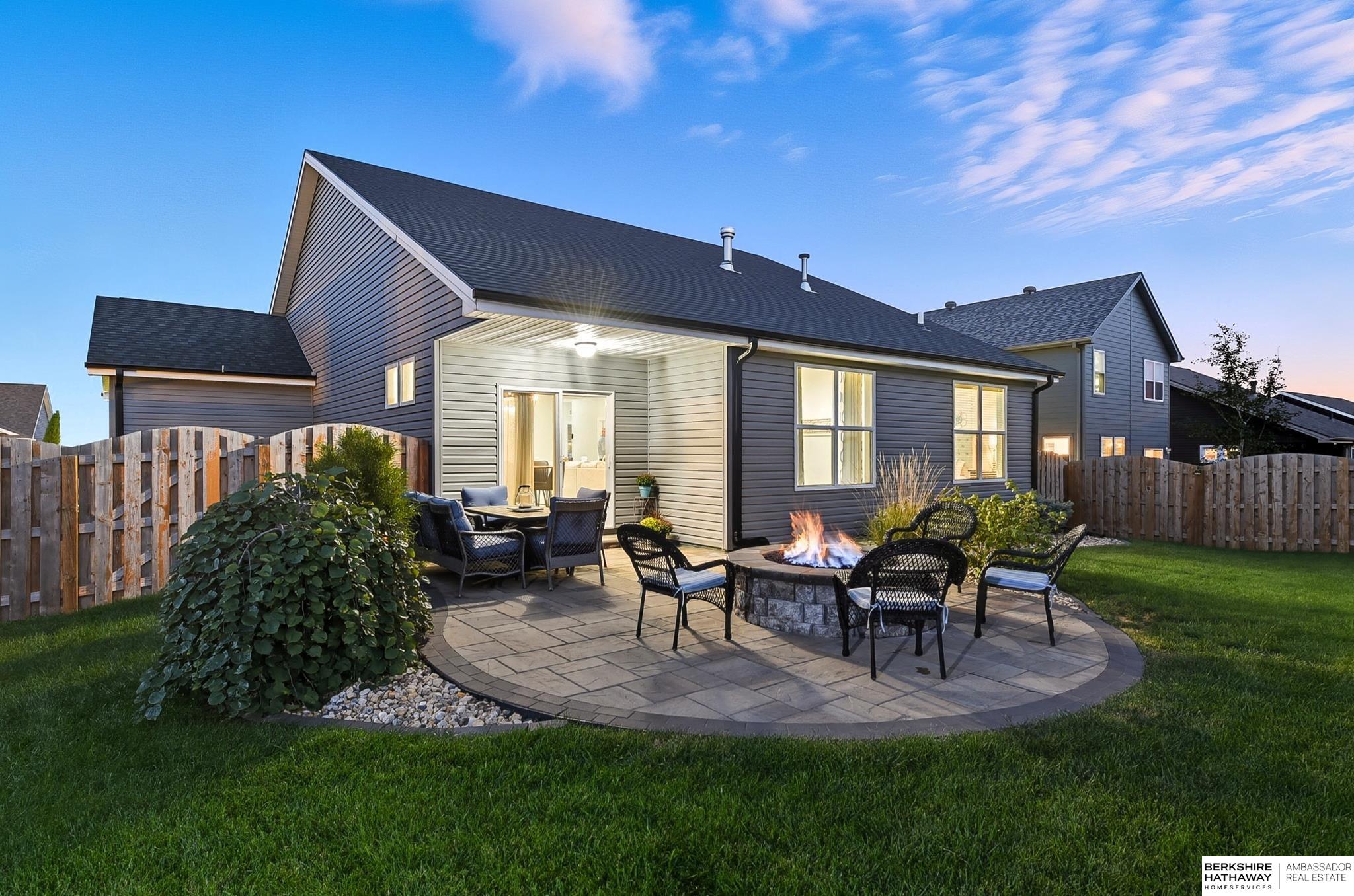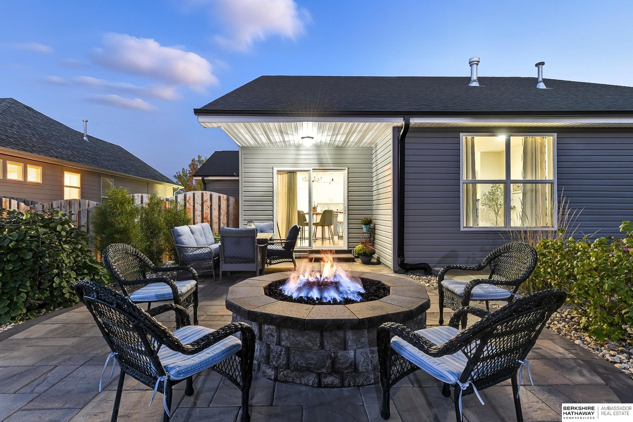 Welcome to 8210 N 173rd Street in Majestic Pointe! This one-owner ranch offers 3 bedrooms, 3 bathrooms, and 1,590 sq. ft. on the main level plus a fully finished basement, providing plenty of living space. The open floor plan features a spacious living room with a cozy fireplace, a bright kitchen with abundant cabinetry, and a dining area that flows to the backyard. The primary suite includes an en-suite bath, while the second bedroom is perfect for guests or a home office. The finished basement adds versatility with space for a rec room, theater, gym, or guest area. Outside, enjoy a custom patio and fire pit (2022), ideal for entertaining. A new roof (2024) adds peace of mind. Located in Majestic Pointe subdivision near Bennington schools, parks, and amenities, this home blends comfort, updates, and convenience in a fantastic community.