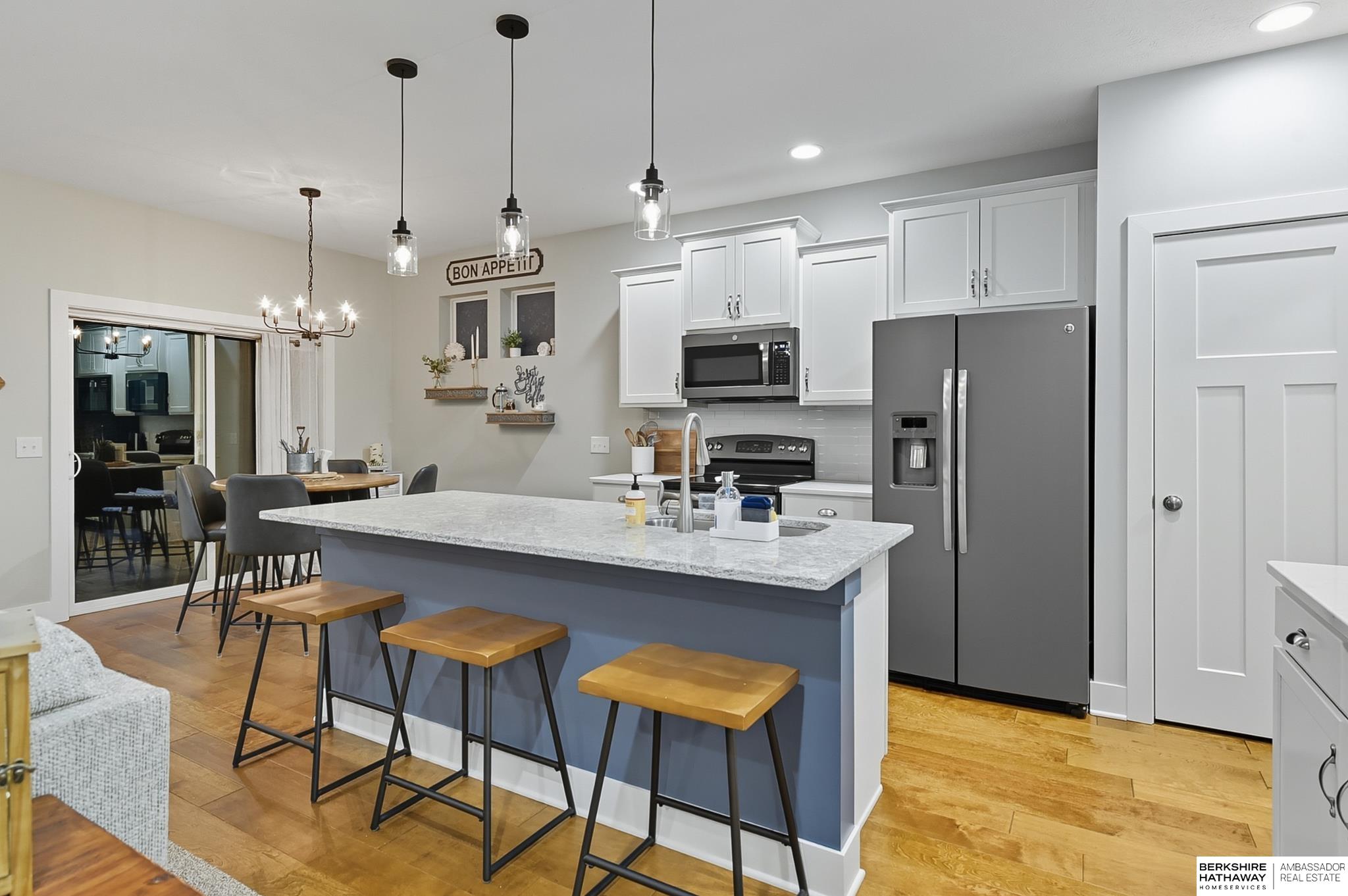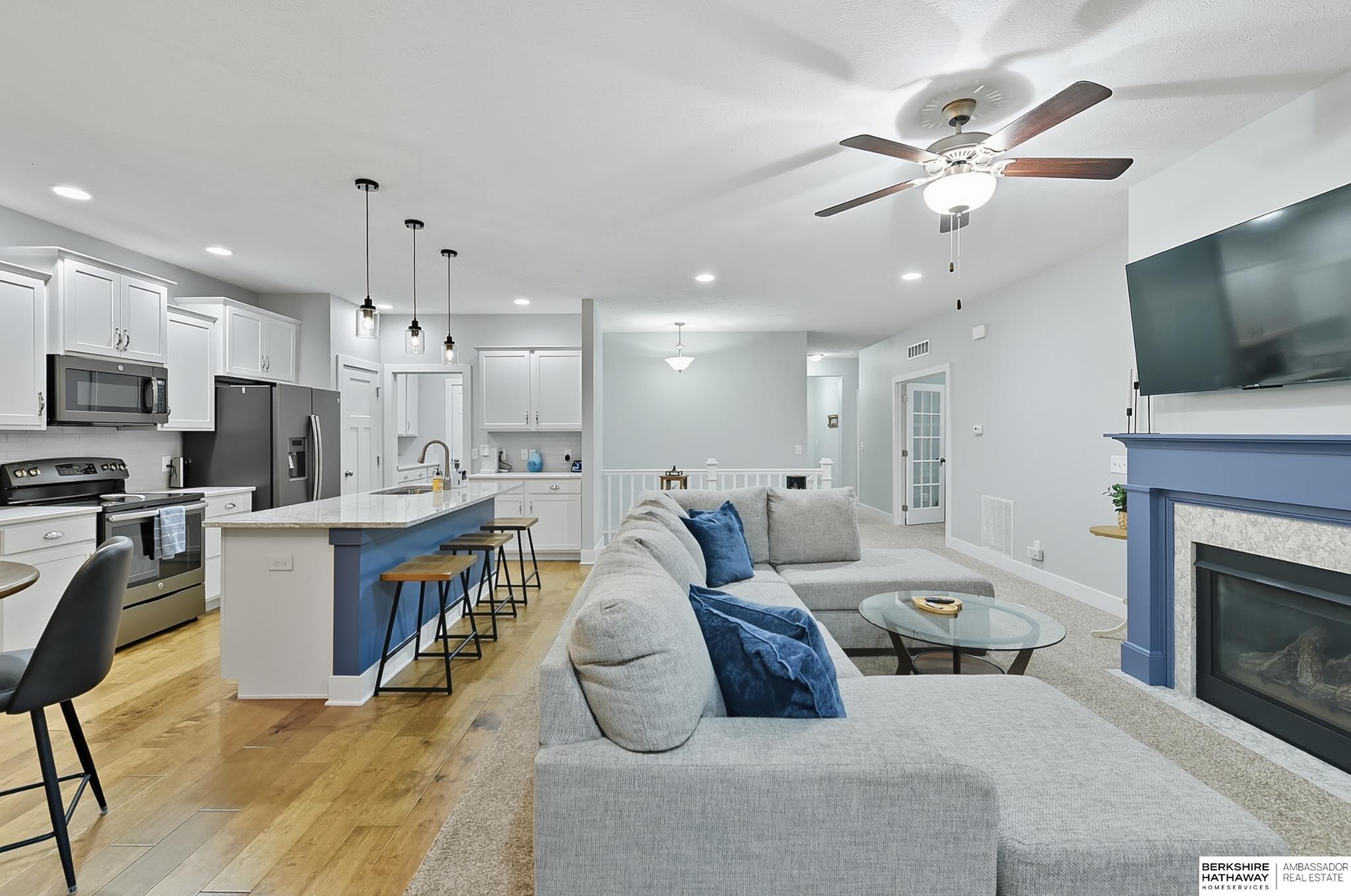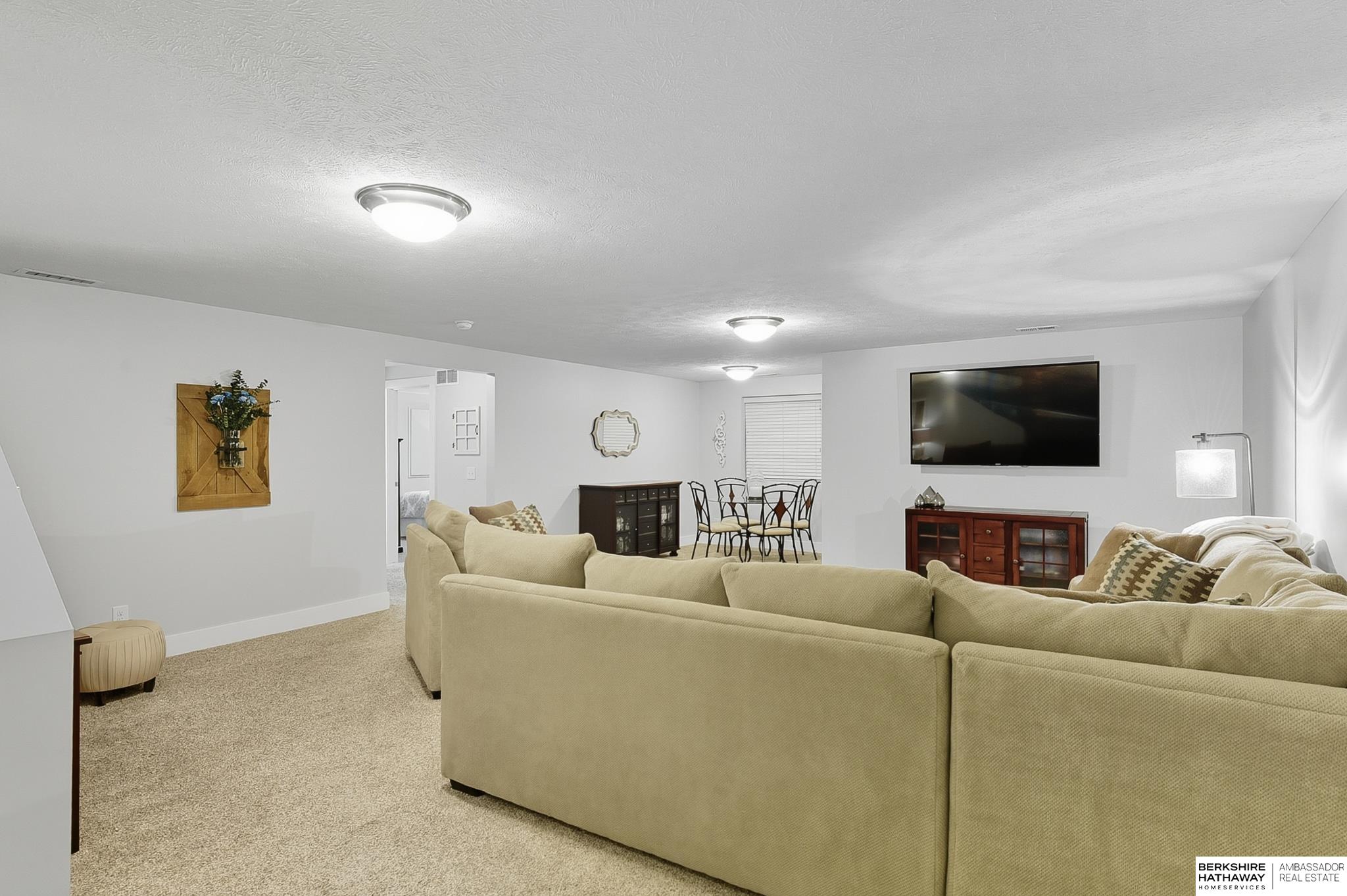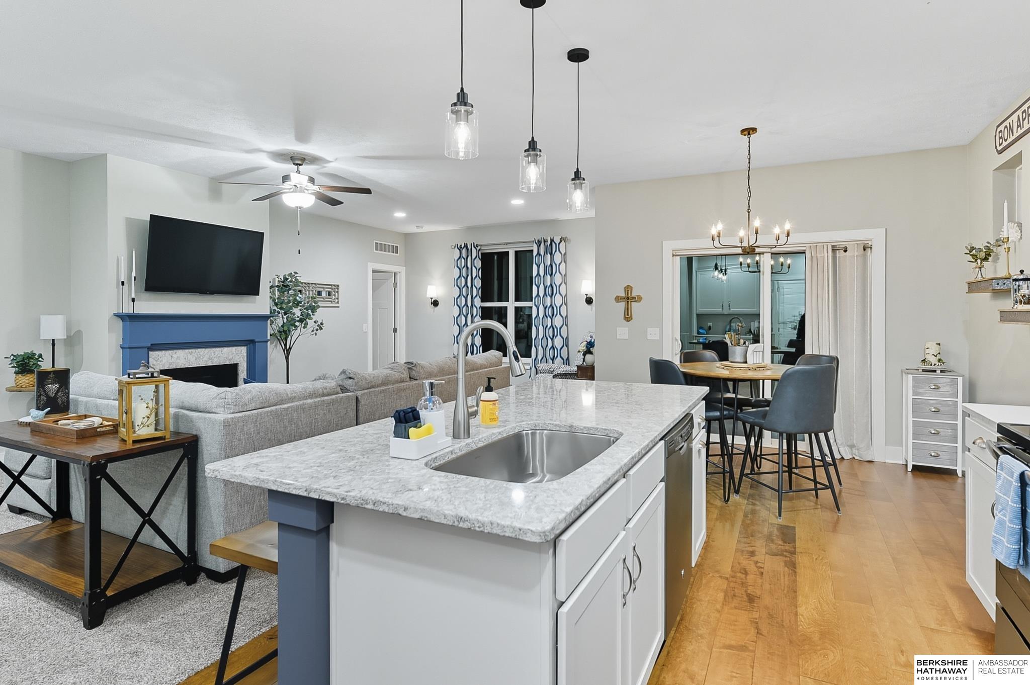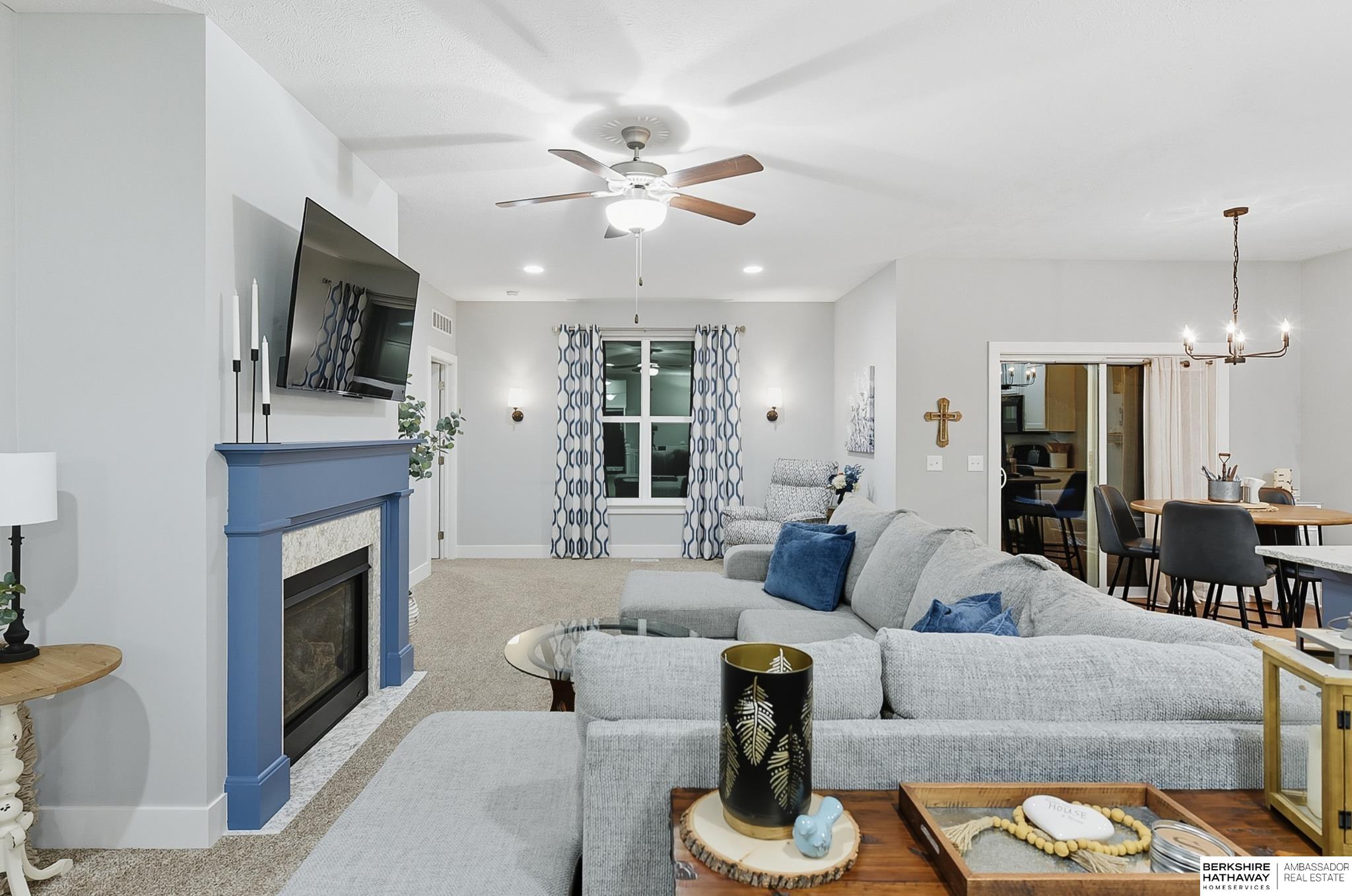 Welcome to 8210 N 173rd Street in Majestic Pointe! This one-owner ranch offers 3 bedrooms, 3 bathrooms, and 1,590 sq. ft. on the main level plus a fully finished basement, providing plenty of living space. The open floor plan features a spacious living room with a cozy fireplace, a bright kitchen with abundant cabinetry, and a dining area that flows to the backyard. The primary suite includes an en-suite bath, while the second bedroom is perfect for guests or a home office. The finished basement adds versatility with space for a rec room, theater, gym, or guest area. Outside, enjoy a custom patio and fire pit (2022), ideal for entertaining. A new roof (2024) adds peace of mind. Located in Majestic Pointe subdivision near Bennington schools, parks, and amenities, this home blends comfort, updates, and convenience in a fantastic community.