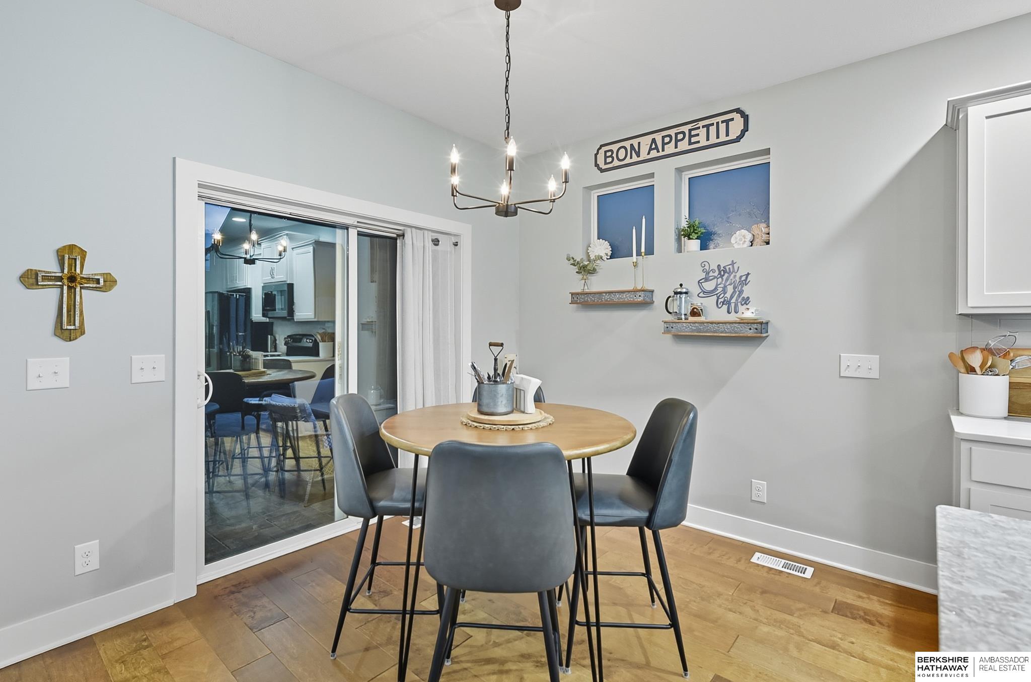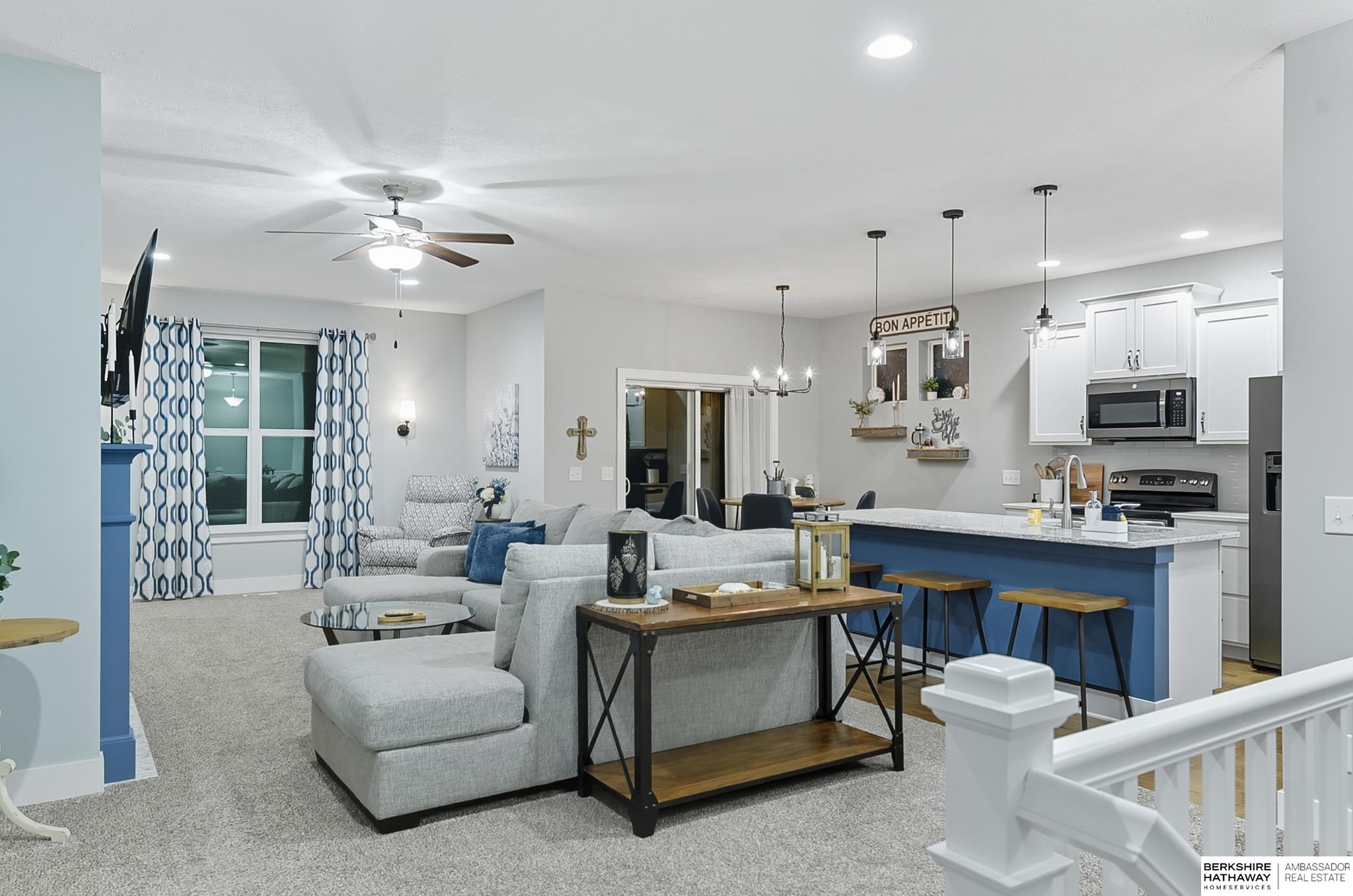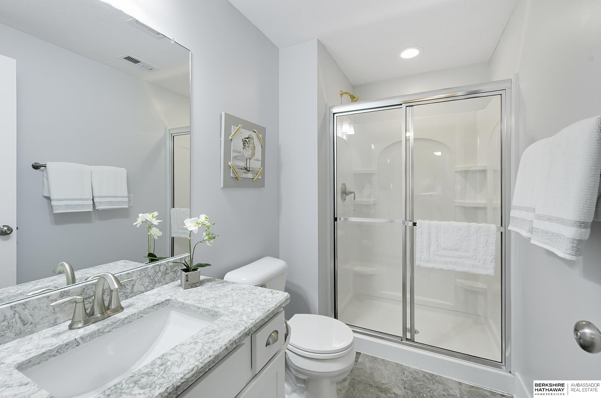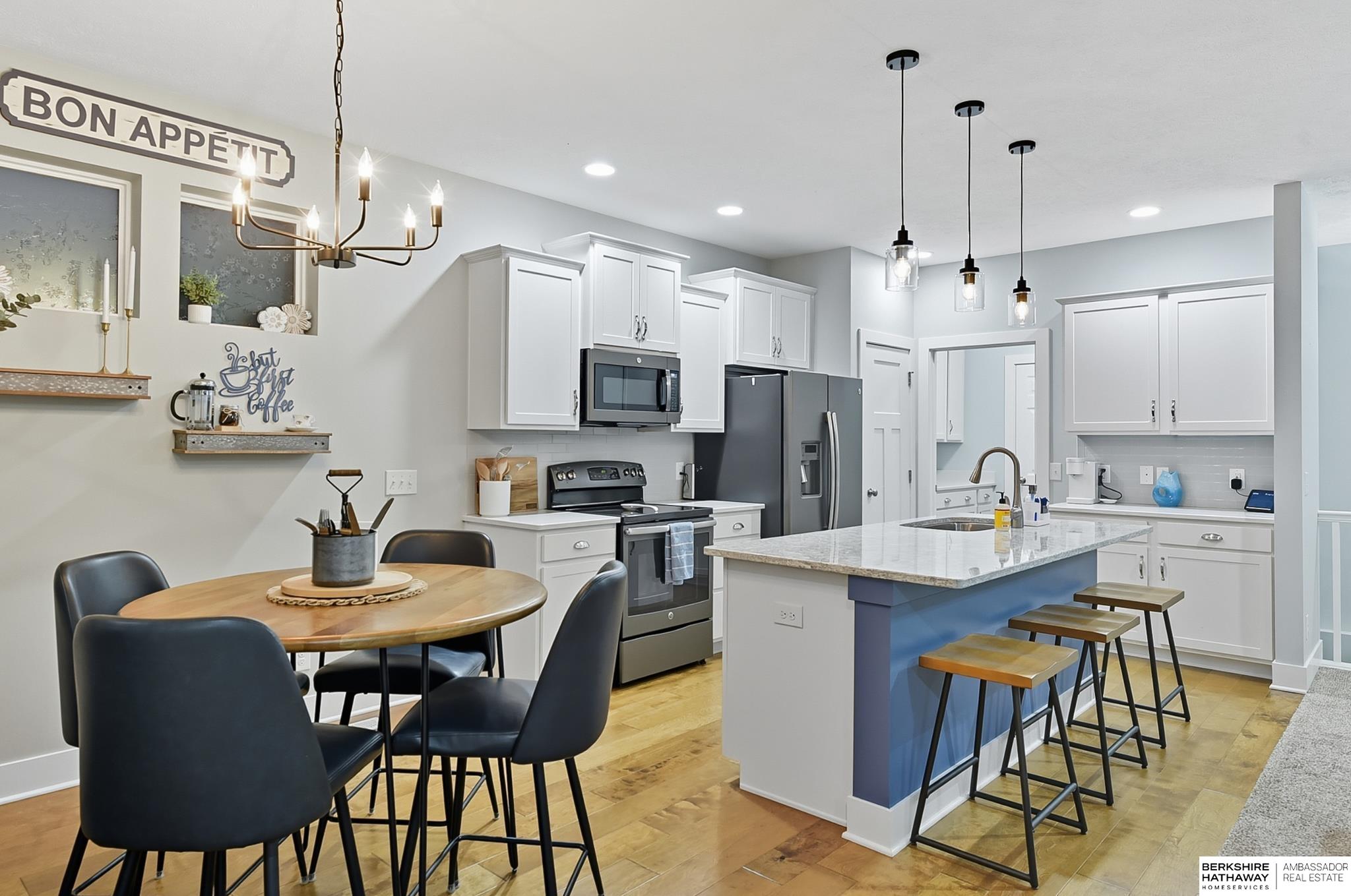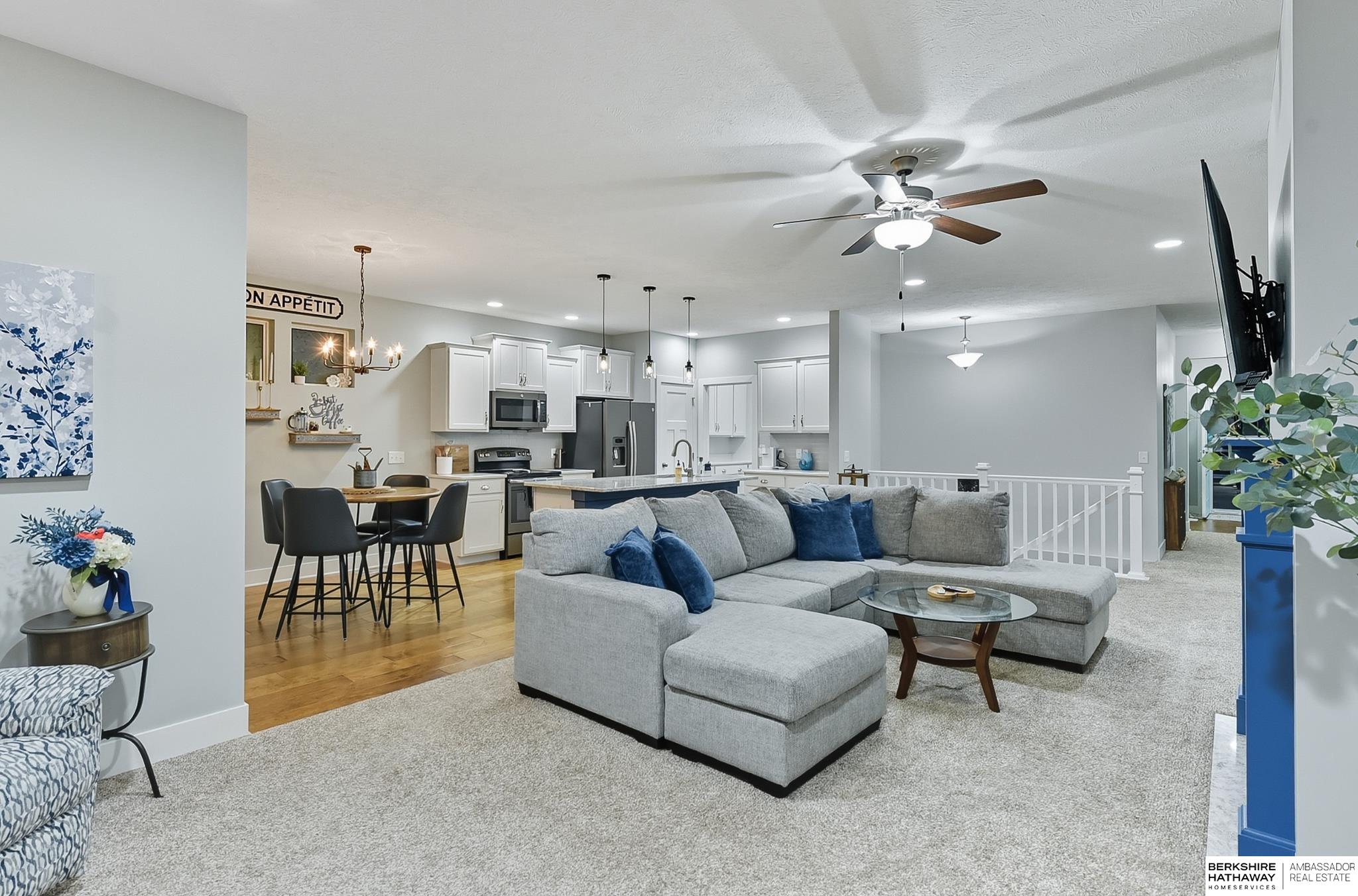 Welcome to 8210 N 173rd Street in Majestic Pointe! This one-owner ranch offers 3 bedrooms, 3 bathrooms, and 1,590 sq. ft. on the main level plus a fully finished basement, providing plenty of living space. The open floor plan features a spacious living room with a cozy fireplace, a bright kitchen with abundant cabinetry, and a dining area that flows to the backyard. The primary suite includes an en-suite bath, while the second bedroom is perfect for guests or a home office. The finished basement adds versatility with space for a rec room, theater, gym, or guest area. Outside, enjoy a custom patio and fire pit (2022), ideal for entertaining. A new roof (2024) adds peace of mind. Located in Majestic Pointe subdivision near Bennington schools, parks, and amenities, this home blends comfort, updates, and convenience in a fantastic community.