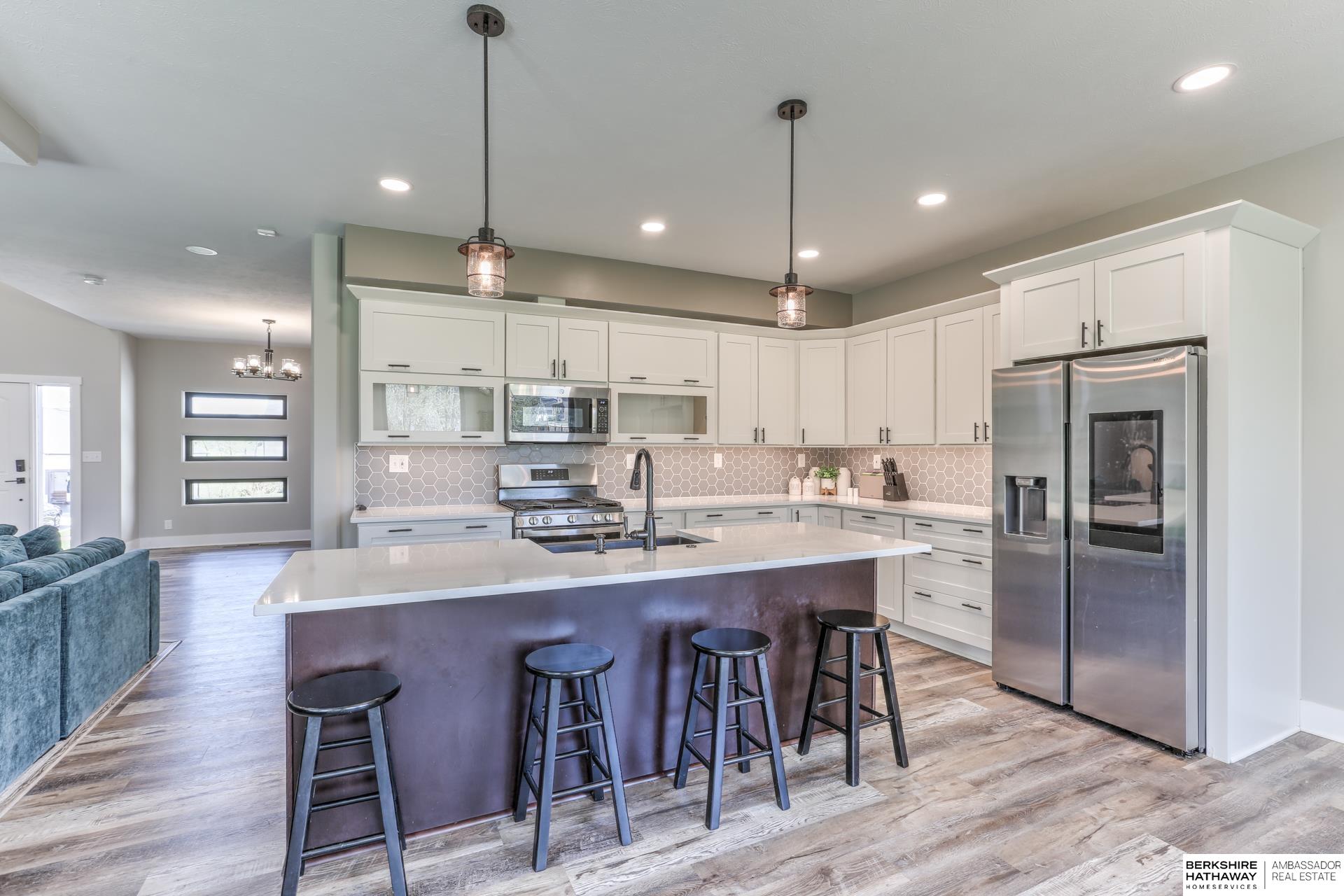 Don’t miss this exceptional 4-bedroom, 3-bathroom luxury home nestled in the heart of Bennington. Thoughtfully designed with both elegance and everyday comfort in mind, this residence showcases a rare 4-car heated garage with a convenient turnaround driveway—ideal for car enthusiasts, hobbyists, or additional storage needs. The chef-inspired kitchen is a true centerpiece, featuring an expansive walk-in pantry that offers abundant space for organization and culinary creativity. A built-in sprinkler system provides effortless lawn care, enhancing the home’s low-maintenance appeal. From the open-concept layout to the high-end finishes and carefully curated details throughout, this home seamlessly blends style and functionality—creating a sophisticated retreat perfectly suited for modern living. This one won’t last long! AMA.