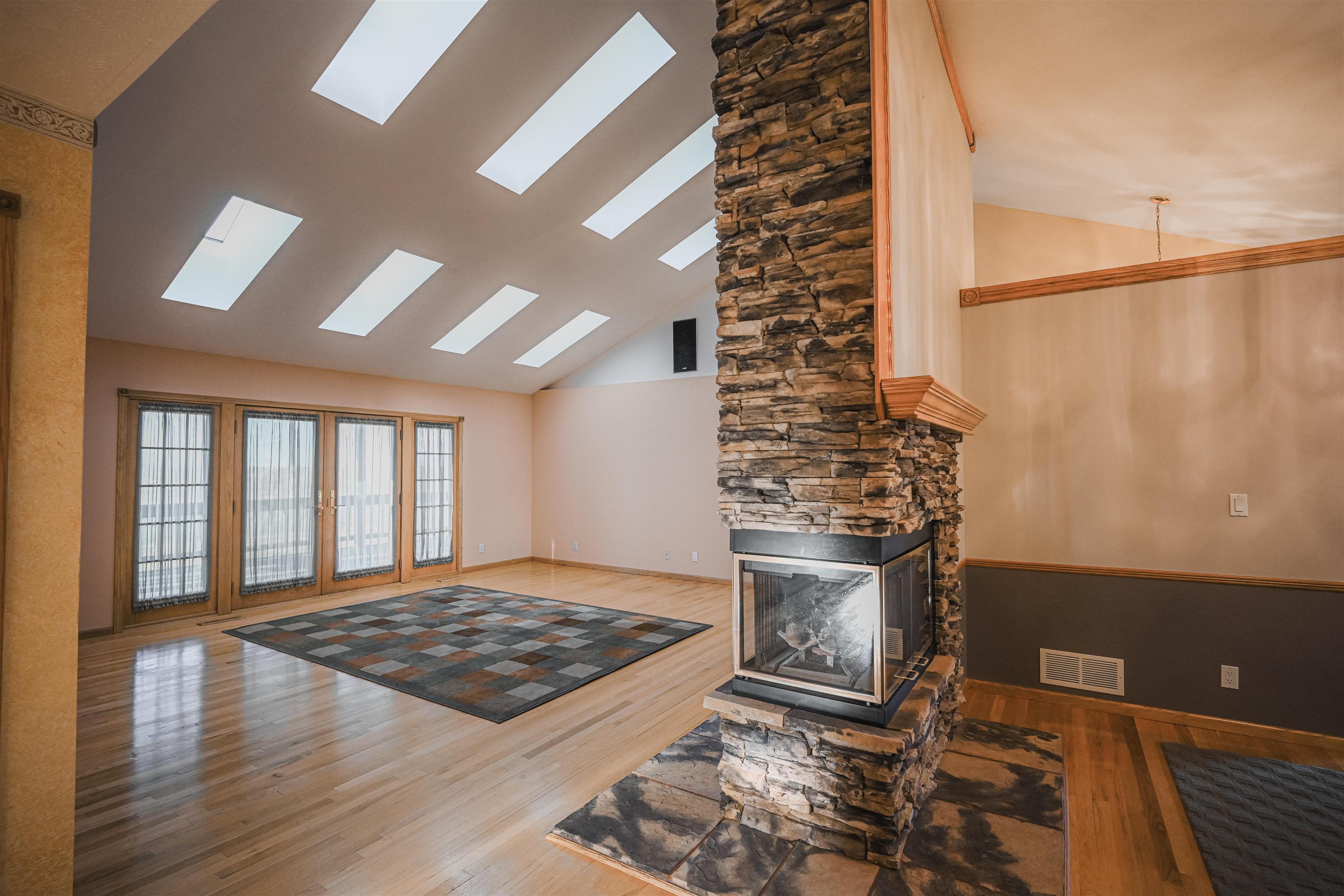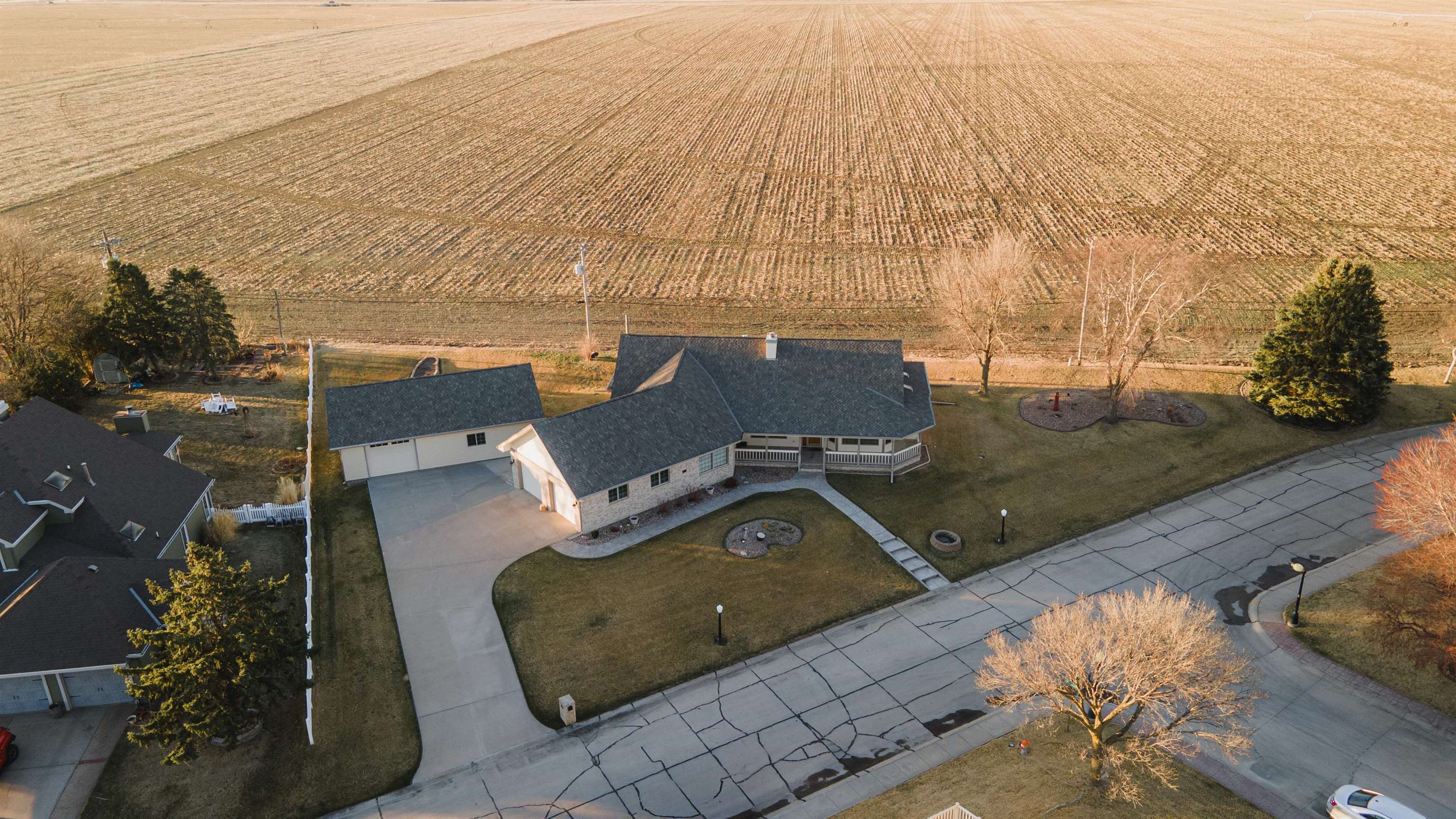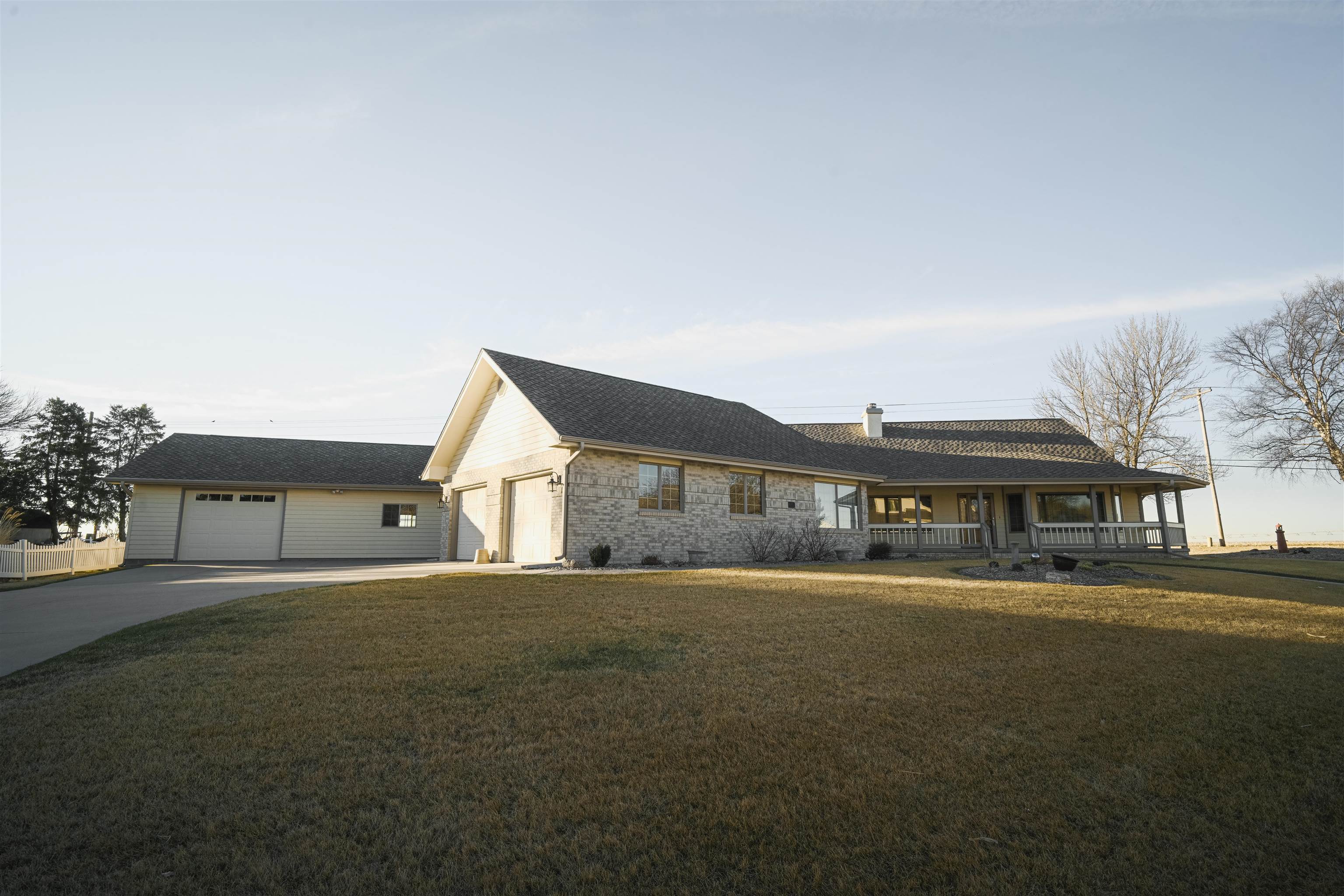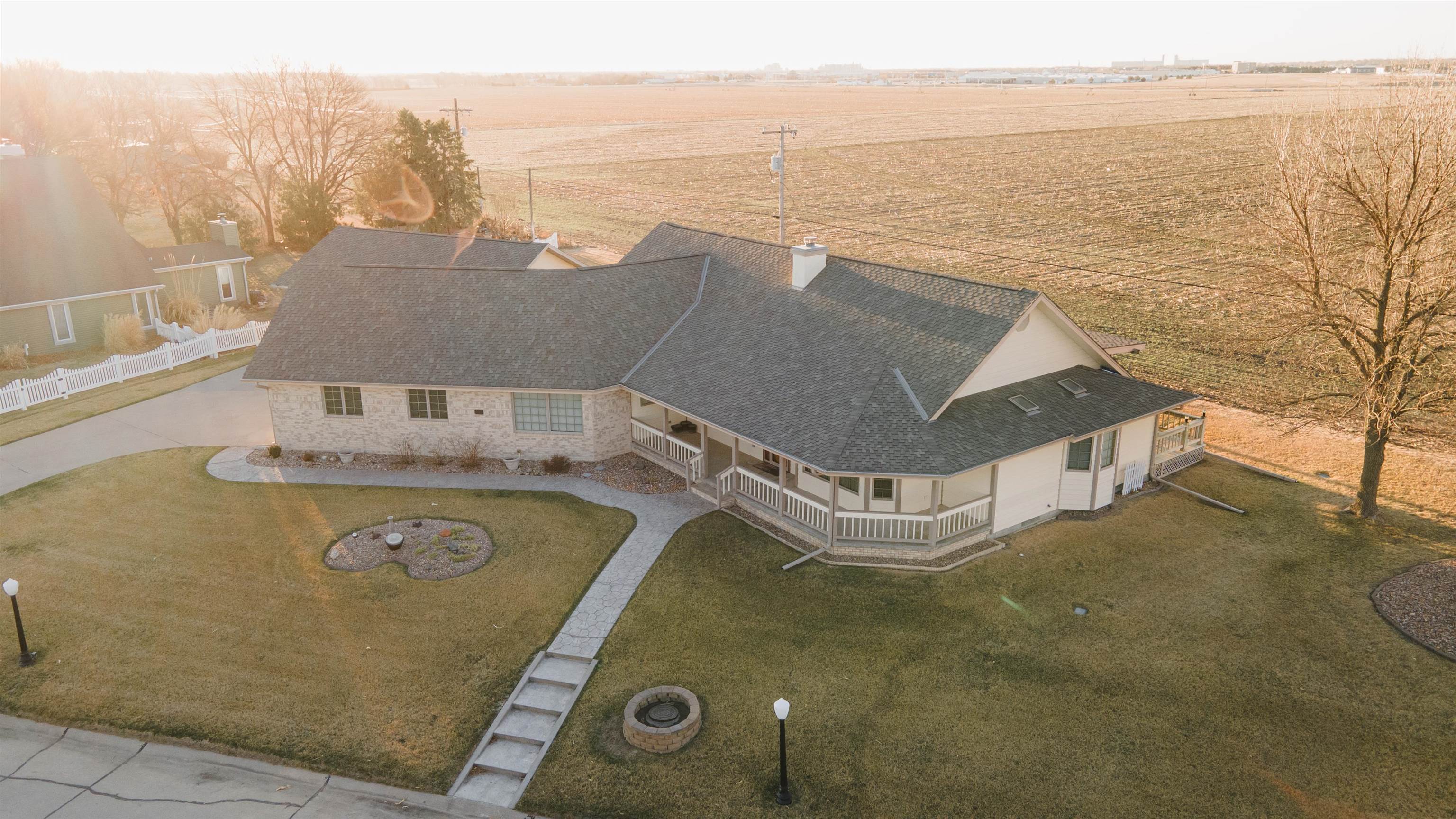Welcome to this stunning custom-designed home offering over 5,000 square feet of beautifully finished living space. The main level boasts more than 2500 square feet featuring 3 spacious bedrooms, plus dedicated office space perfect for working from home. The inviting living room centers around a cozy fireplace creating a warm and elegant gathering space. The main floor primary suite offers comfort and privacy with a generous walk-in closet and private ensuite bath. This home is designed for everyday living and entertaining. The kitchen is truly the heart of the home complete with an abundance of cabinetry, walk-in pantry, and inviting eat-in area. A formal dining room provides the perfect setting for hosting holiday meals and special occasions. This home offers so much convenience with main floor laundry, and enclosed back porch overlooking peaceful farm ground - the perfect spot to enjoy morning coffee or relax in the evenings. The fully finished basement adds another 2500+ square feet of living space offering endless possibilities. Car enthusiasts or hobbyists will appreciate the attached 2 car garage plus an additional 1040 square foot outbuilding featuring a one-car garage and workshop - a dream setup for anyone looking to work on hobbies or needing extra storage needs. Situated on an oversized lot with beautifully landscaped grounds. This exceptional property blends space, functionality, and elegance in a serene setting! Call today for a showing!
