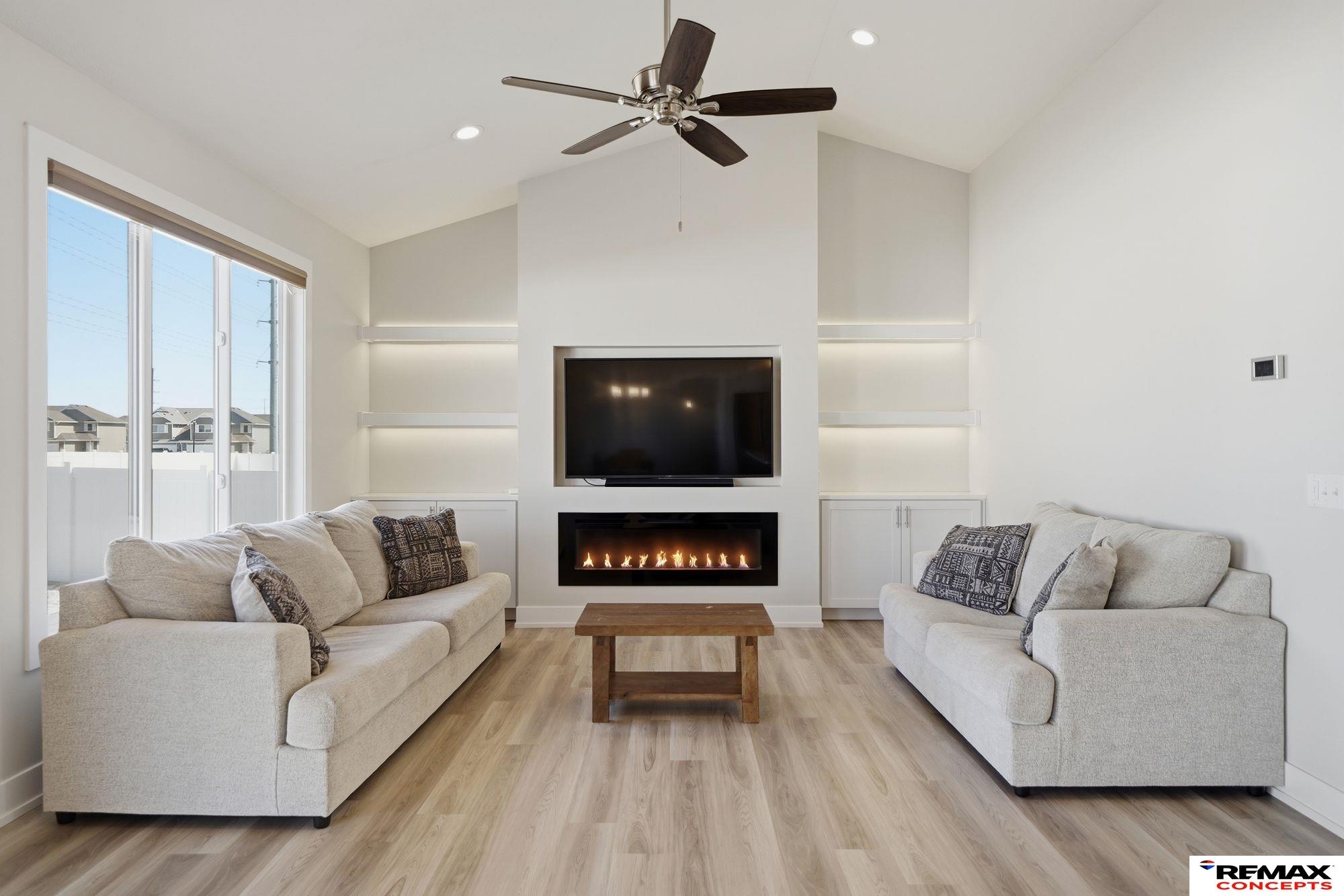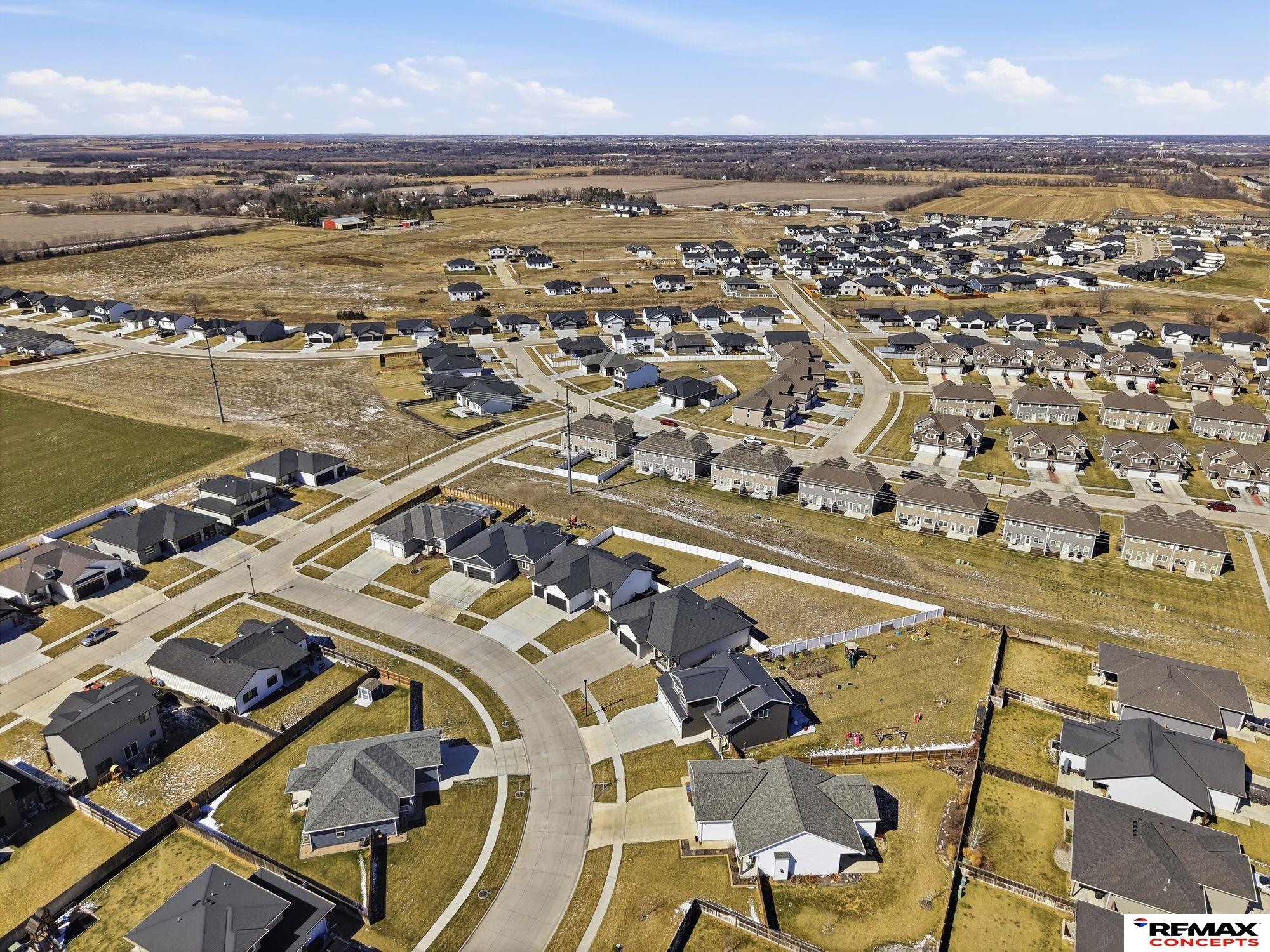 Built in 2020 and meticulously maintained, this one-owner ranch offers the space, style, and comfort today’s buyers are looking for. Vaulted ceilings and an open layout create a bright, expansive feel. The kitchen features a walk-in pantry and a large island perfect for gathering and everyday living. The main living is anchored by a cozy fireplace with custom built-in shelving and quartz countertops throughout. The primary suite offers dual sinks and a beautifully tiled walk-in shower, while all 4 bedrooms include walk-in closets. The finished basement expands your living space with a massive family room and wet bar ideal for entertaining or relaxing. Enjoy a more open backyard setting with added privacy & no direct rear neighbors. Covered patio, fully fenced yard, and 3-stall garage with extra storage. Located just minutes from south Lincoln, this home offers modern comfort with features already in place ready to be enjoyed from day one.