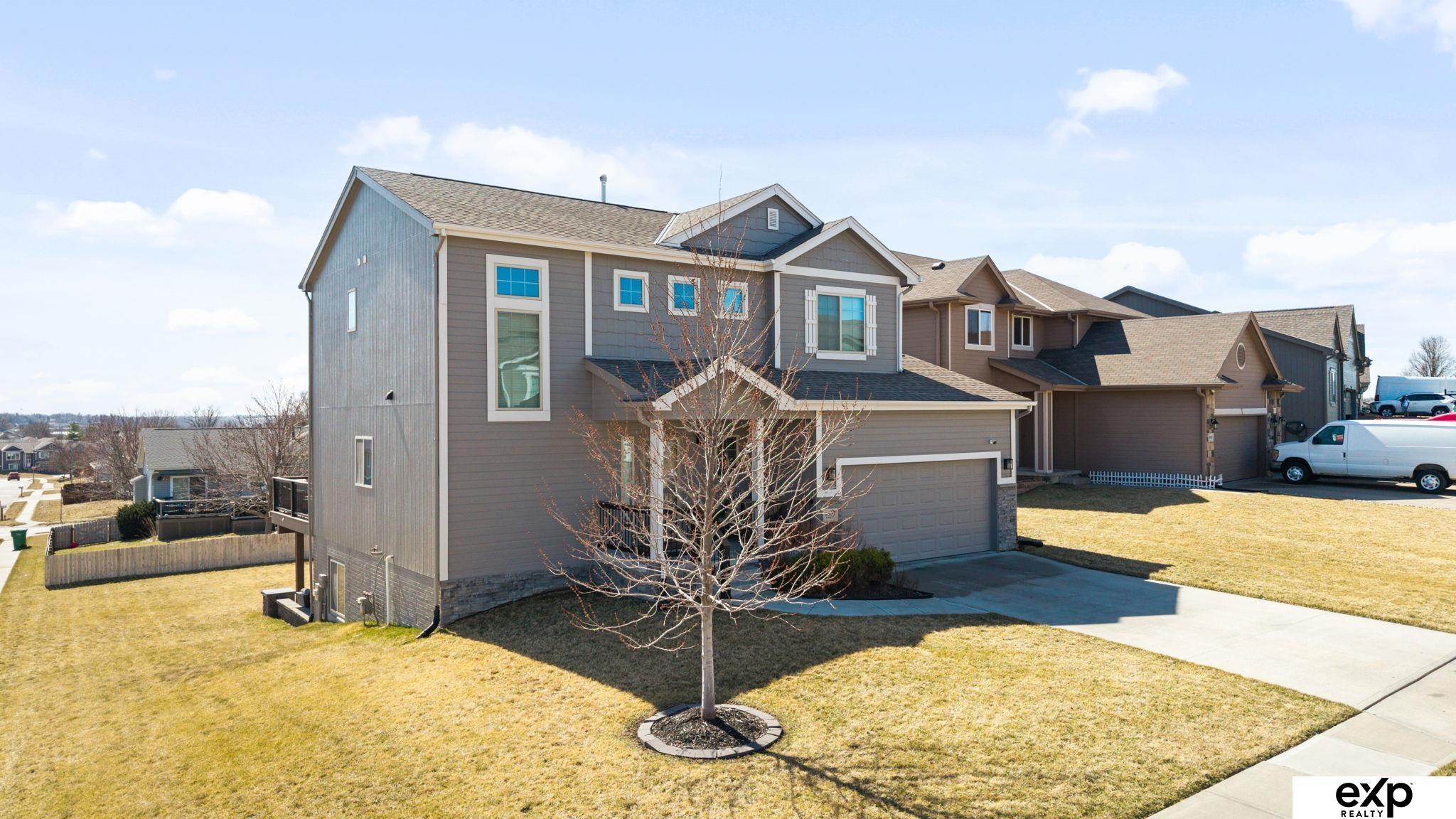 Open House Sat 3/21 1-2 & Sunday 3/22 1-2pm. Nearly 60K in upgrades since new build! Open and inviting 2-story in a convenient northwest Omaha location, offering approximately 1,836 sq ft above grade with room to grow in the lower level. Step into a bright main floor with stoned accents, open concept living space and a modern, updated kitchen featuring an oversized quartz island, gas stove top, stoned fireplace, warm wood tones, & plenty of storage—perfect for everyday living and entertaining. Upstairs you’ll find a loft, generous bedroom spaces and additional living area, while the unfinished walkout basement with two egress windows and rough-in plumbing is ready for your future bedrooms, bath, and rec room. Outside, enjoy the one-owner pride of ownership w/ a huge composite deck, expanded patio, and large flat yard ideal for play or pets. Peace of mind comes with an HVAC system kept on a regular maintenance plan, so you can move in and start enjoying your new home right away.