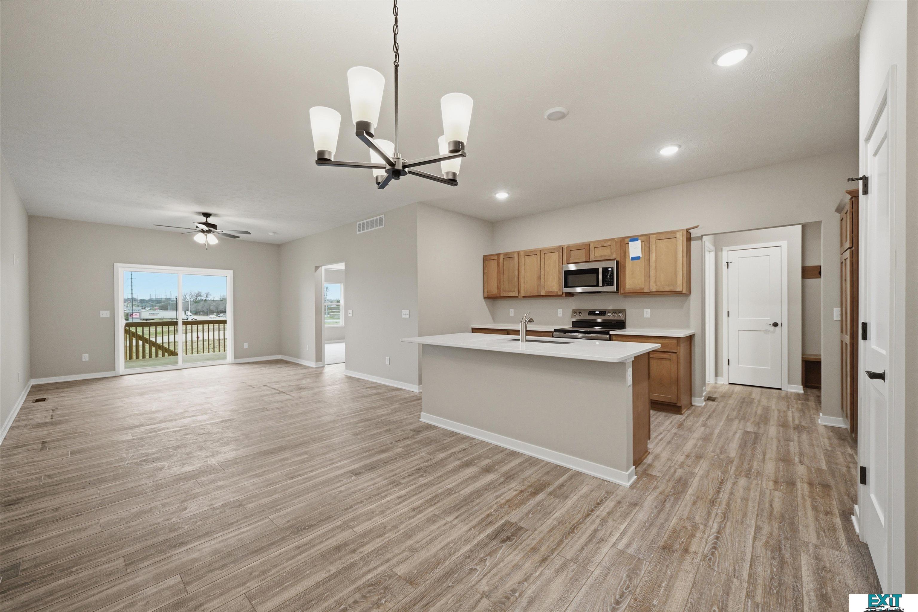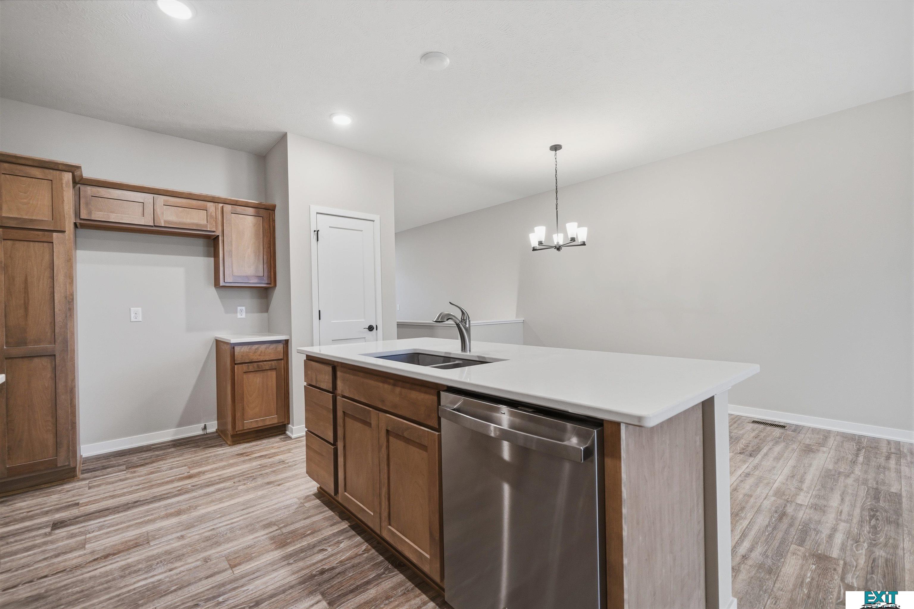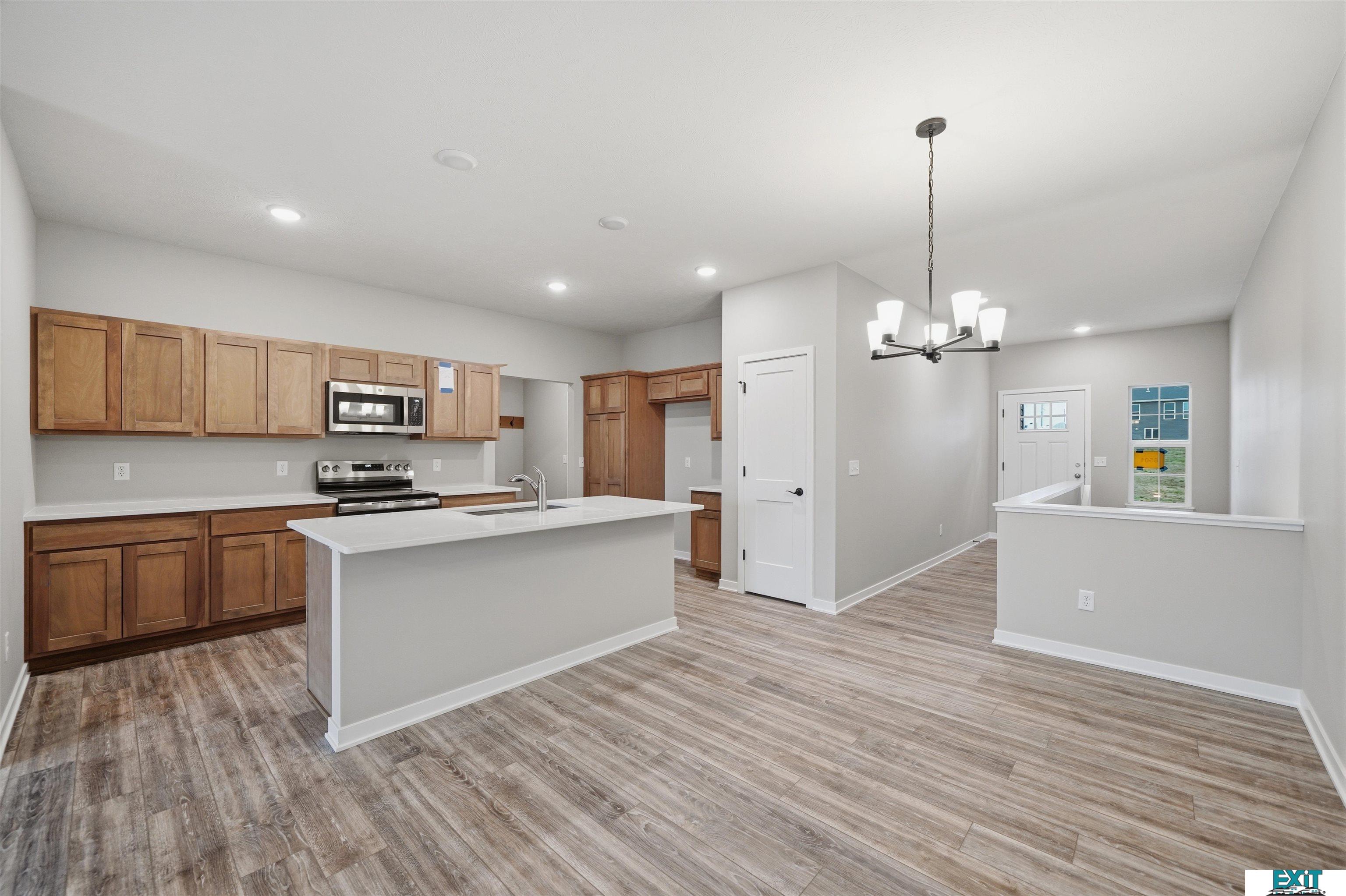 Welcome Home to one of Prairie Home's Alderwood floorplan with a 3rd car garage! Enjoy this open ranch floorplan, accessing almost everything you need on the main floor, including laundry. Some features include a mudroom with bench and hooks and laundry off of the garage. Entertain in this beautiful kitchen, featuring a large kitchen island, pantry and quartz countertops. Upgraded LVP flooring in living room, bathroom, laundry room, kitchen, dining, and foyer.