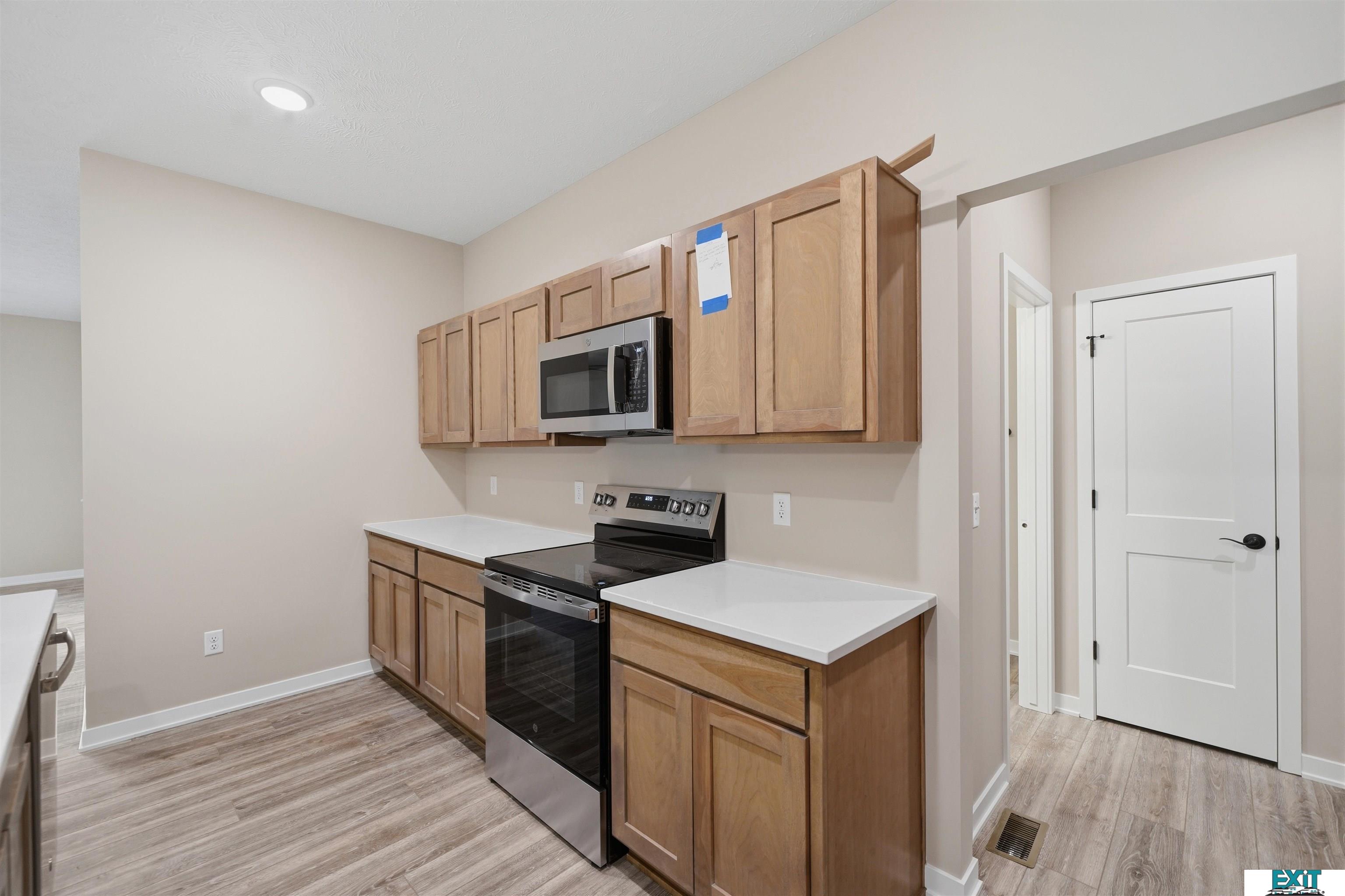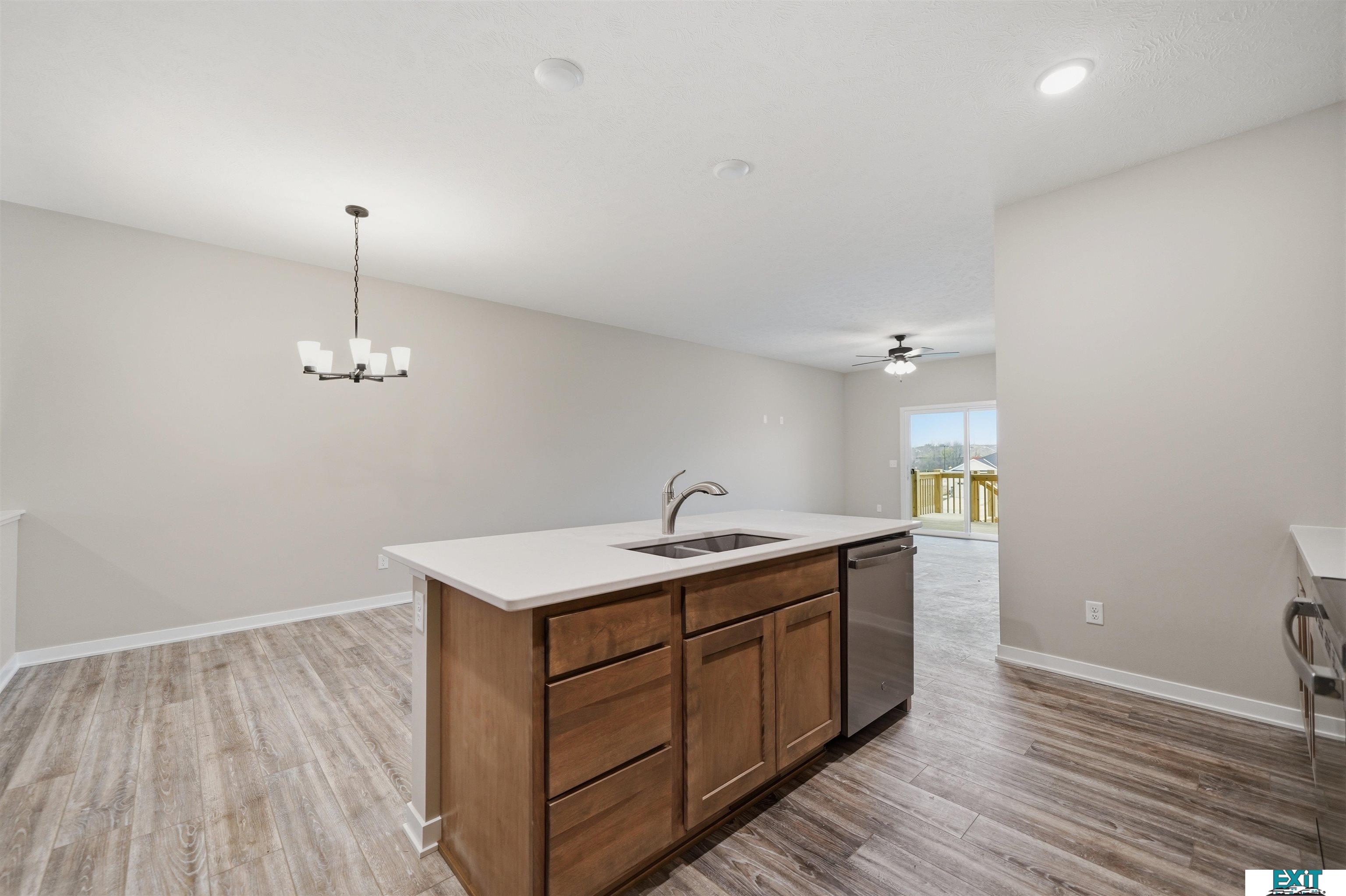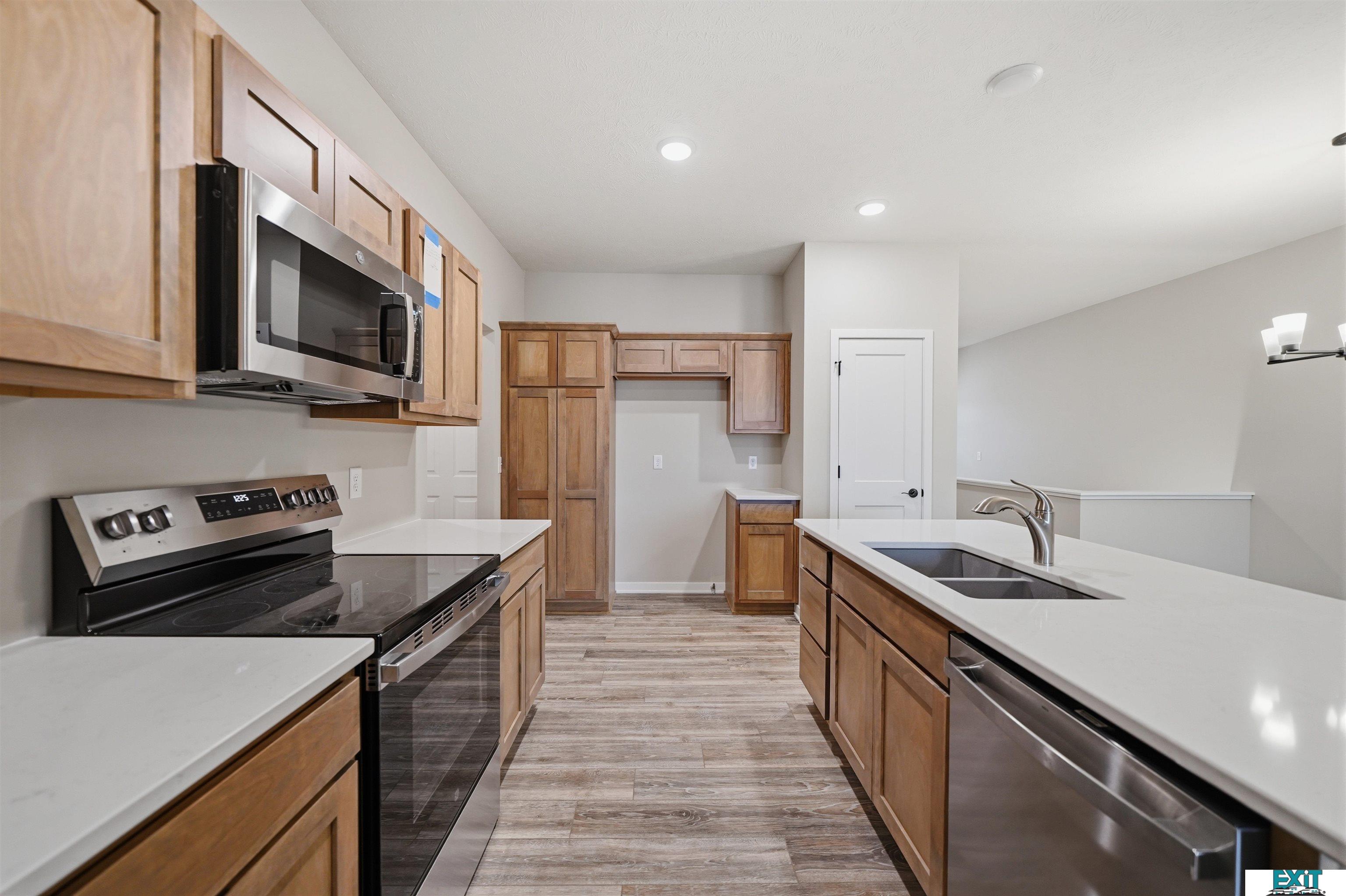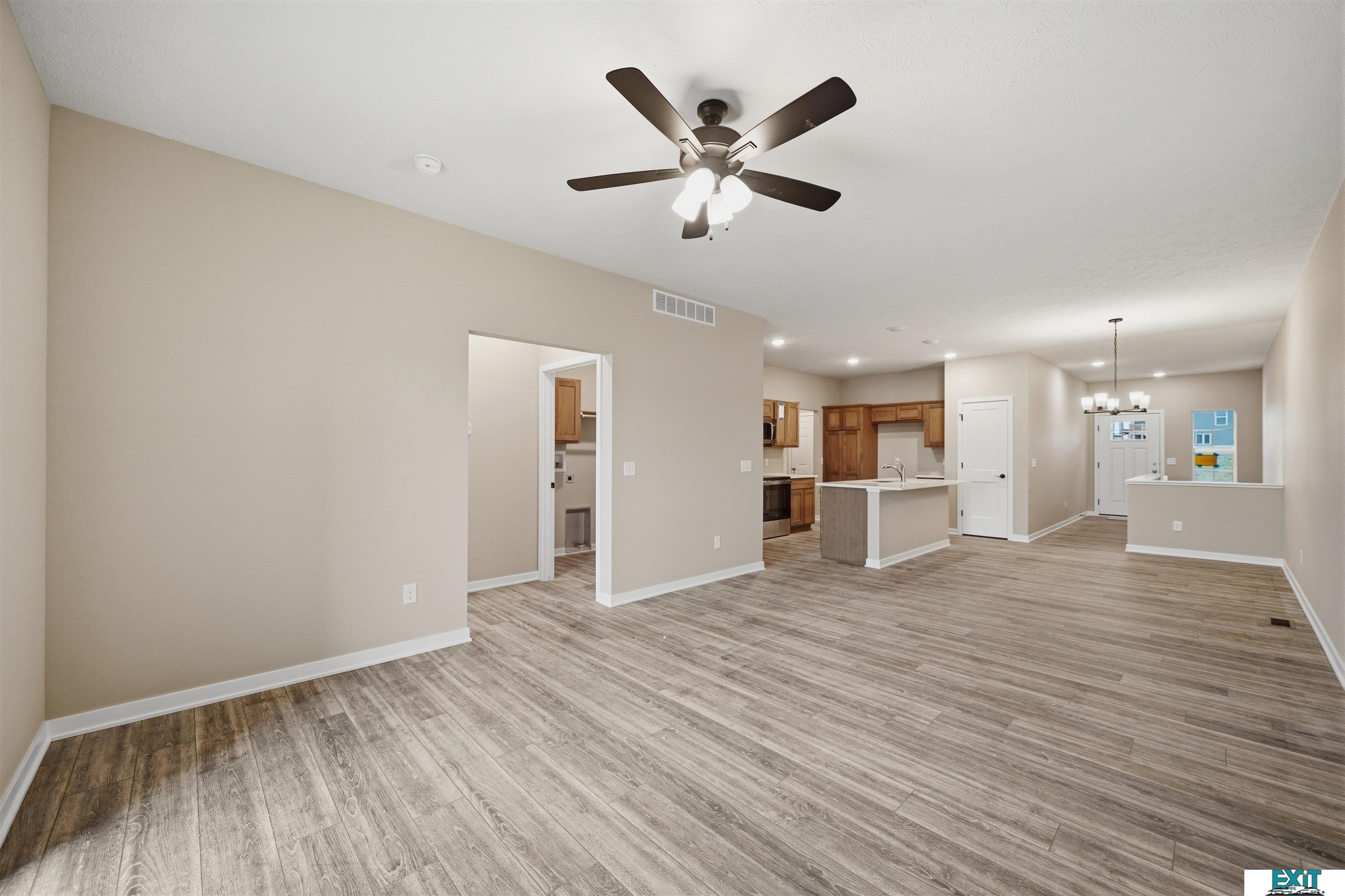 Welcome Home to one of Prairie Home's Alderwood floorplan with a 3rd car garage! Enjoy this open ranch floorplan, accessing almost everything you need on the main floor, including laundry. Some features include a mudroom with bench and hooks and laundry off of the garage. Entertain in this beautiful kitchen, featuring a large kitchen island, pantry and quartz countertops. Upgraded LVP flooring in living room, bathroom, laundry room, kitchen, dining, and foyer.