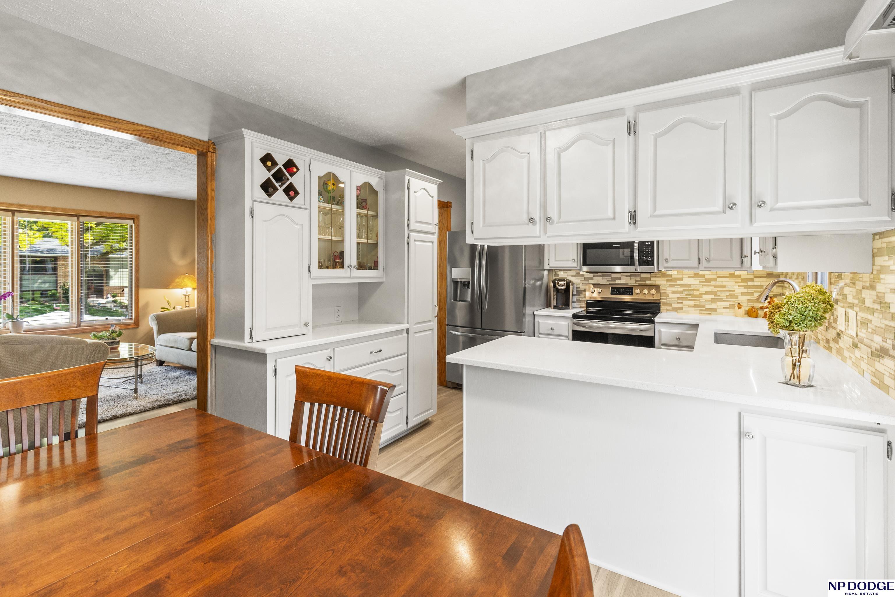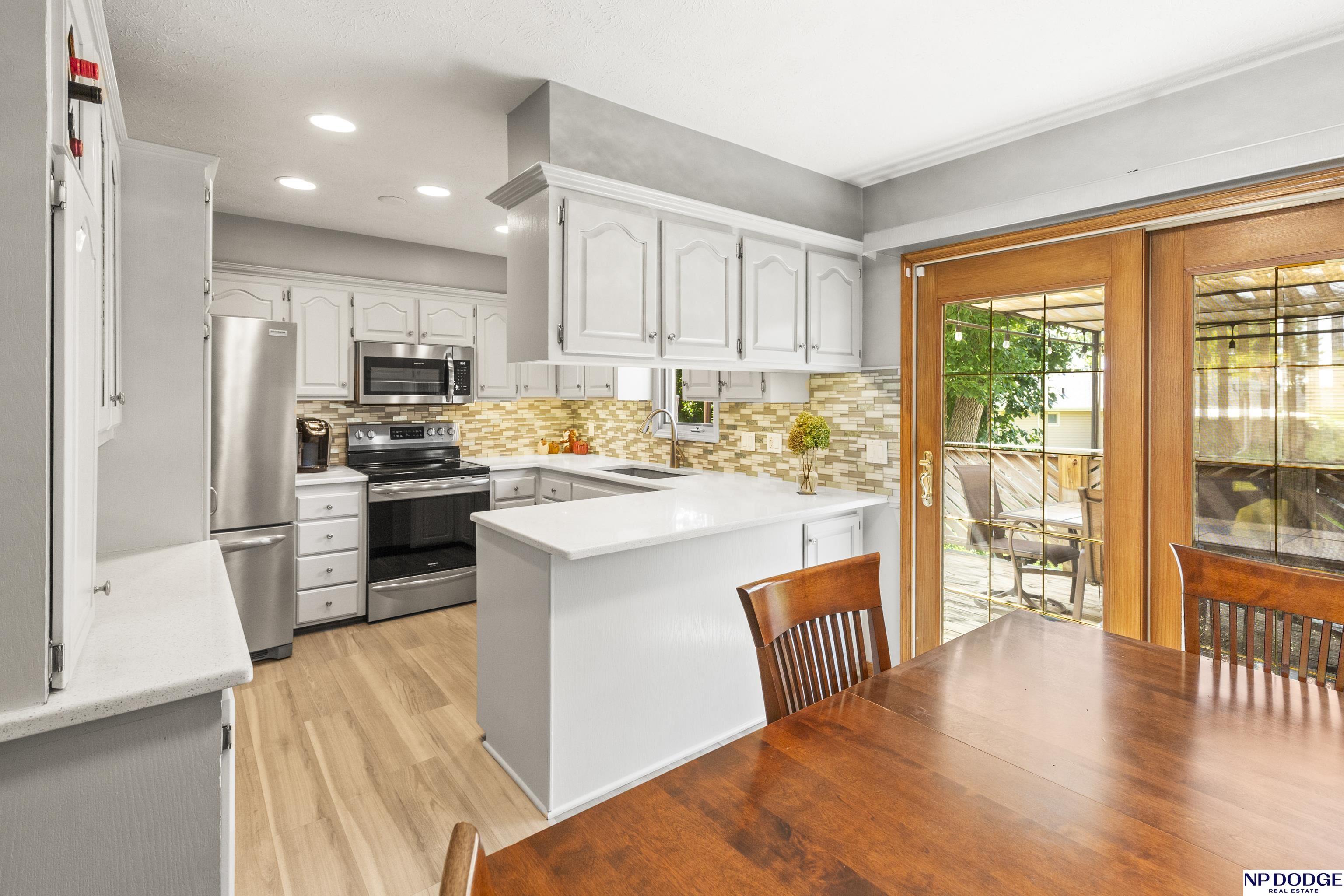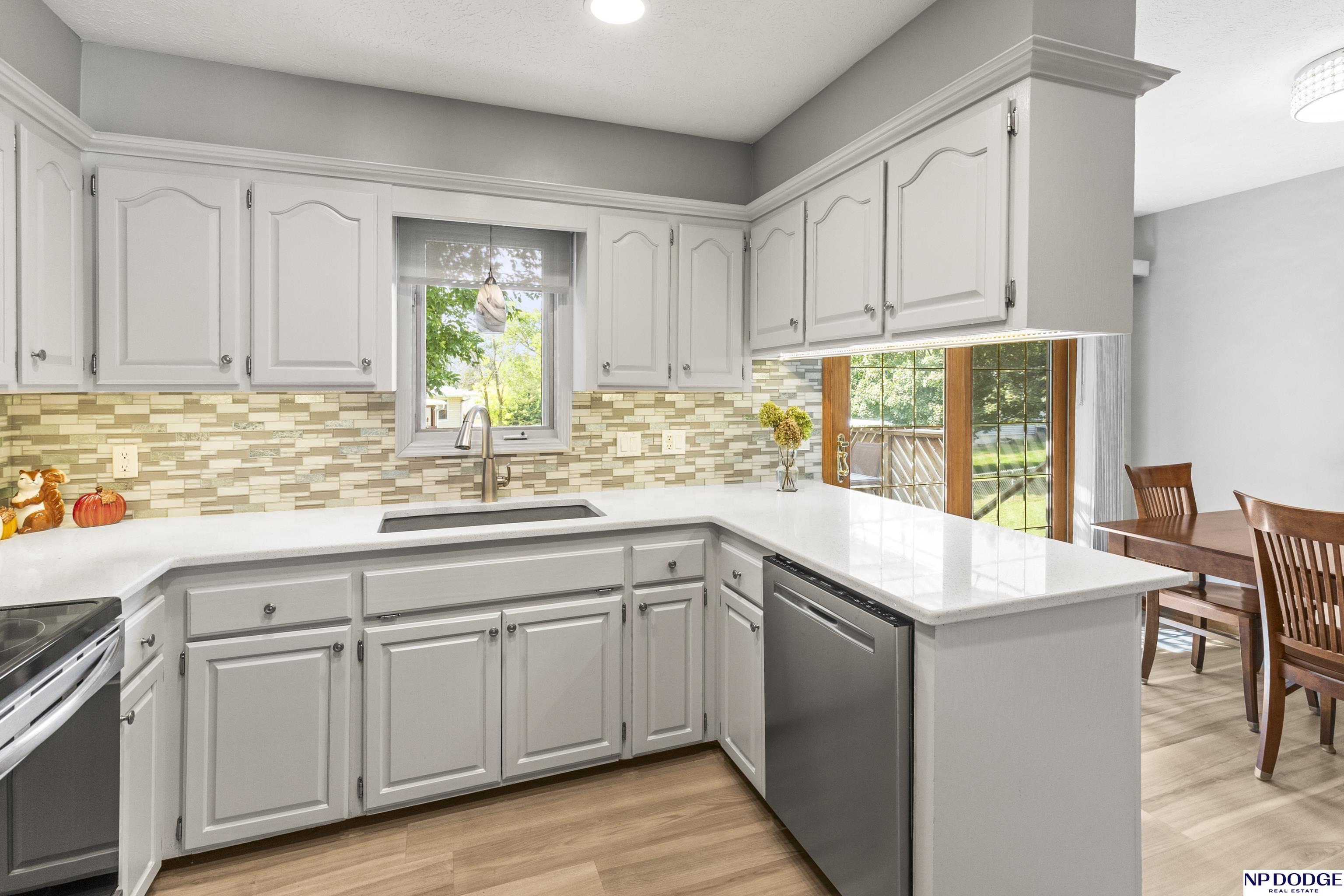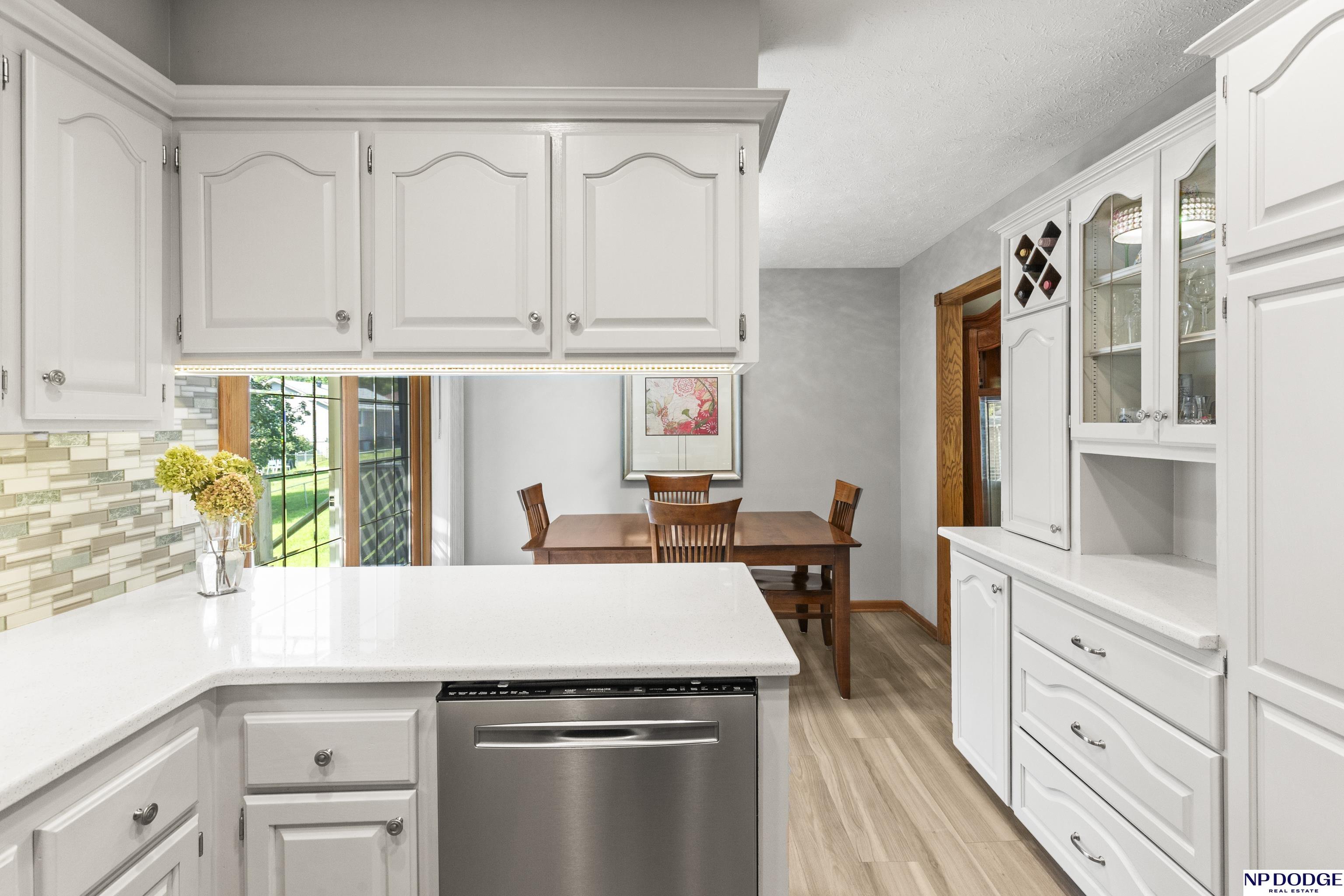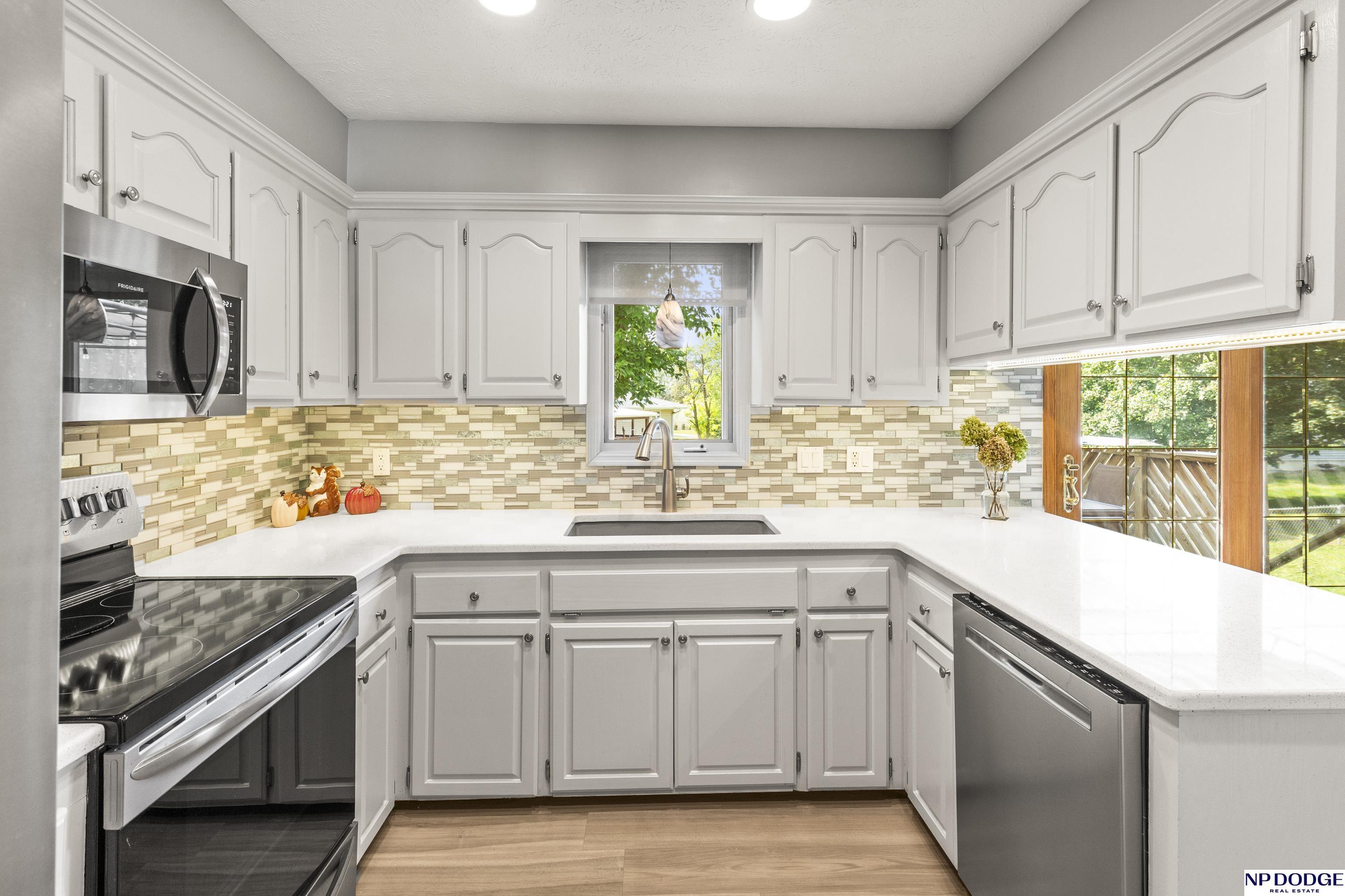 Fantastic Updated 3 BR 2.5 BA Home with a 2 car garage. This home boasts a beautifully updated eat-in kitchen with quartz counters, tiled backsplash, SS range, dishwasher & microwave & abundant white cabinetry. Newer LVP Flooring in the Kitchen, Living Room & main floor baths. Inviting LR with a bow window that lets in lots of natural light. This home had an addition which created a spacious primary suite with a huge walk-in closet. It also has a 3/4 Primary Bath. Main Floor also includes 2 additional bedrooms & full main bath with a shower. The nicely finished lower level is perfect for entertaining with a cozy family room complete with a gas fireplace, bar area & built-in cabinets & shelving. There is a half bath in the laundry area & additional space for an office & more storage. Relax on the wooden deck overlooking a fenced back yard & a 12 x 12 Storage Shed. Additional updates include new roof, gutters & downspouts in 2024. Newer driveway. AMA