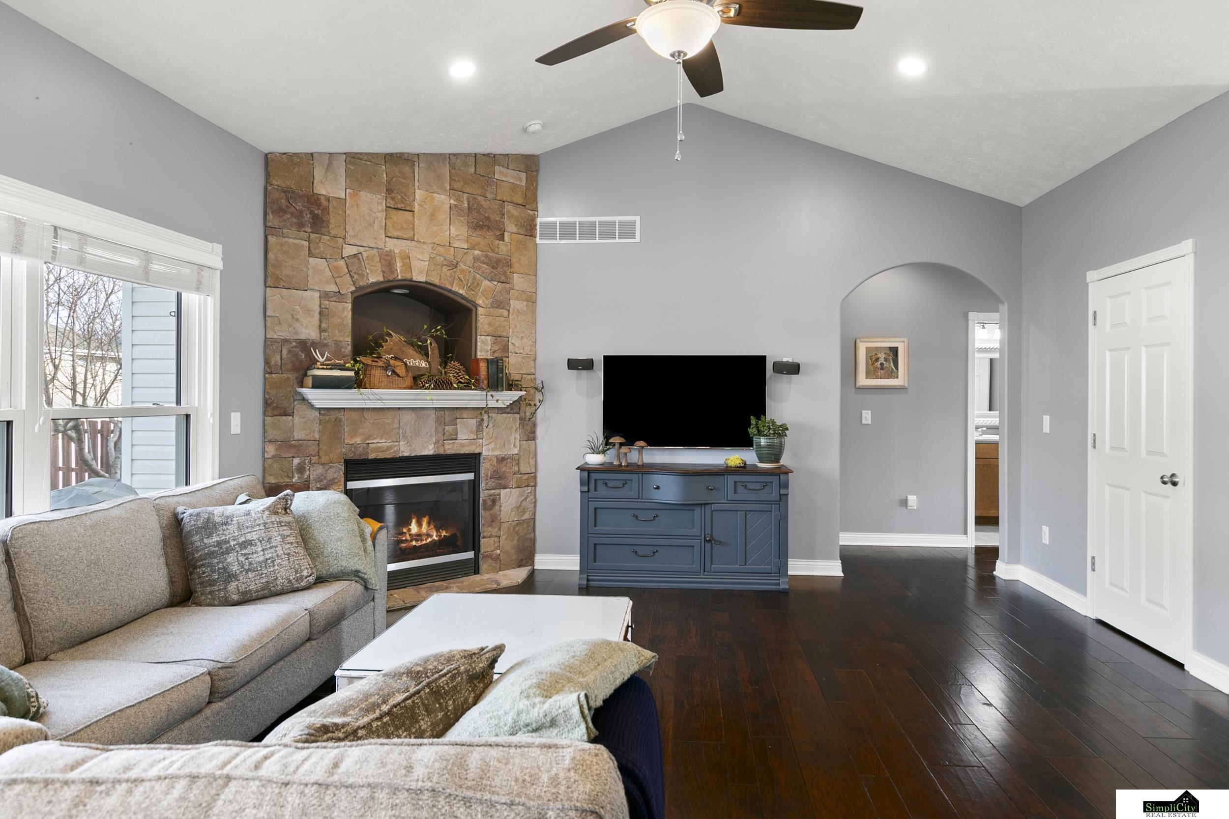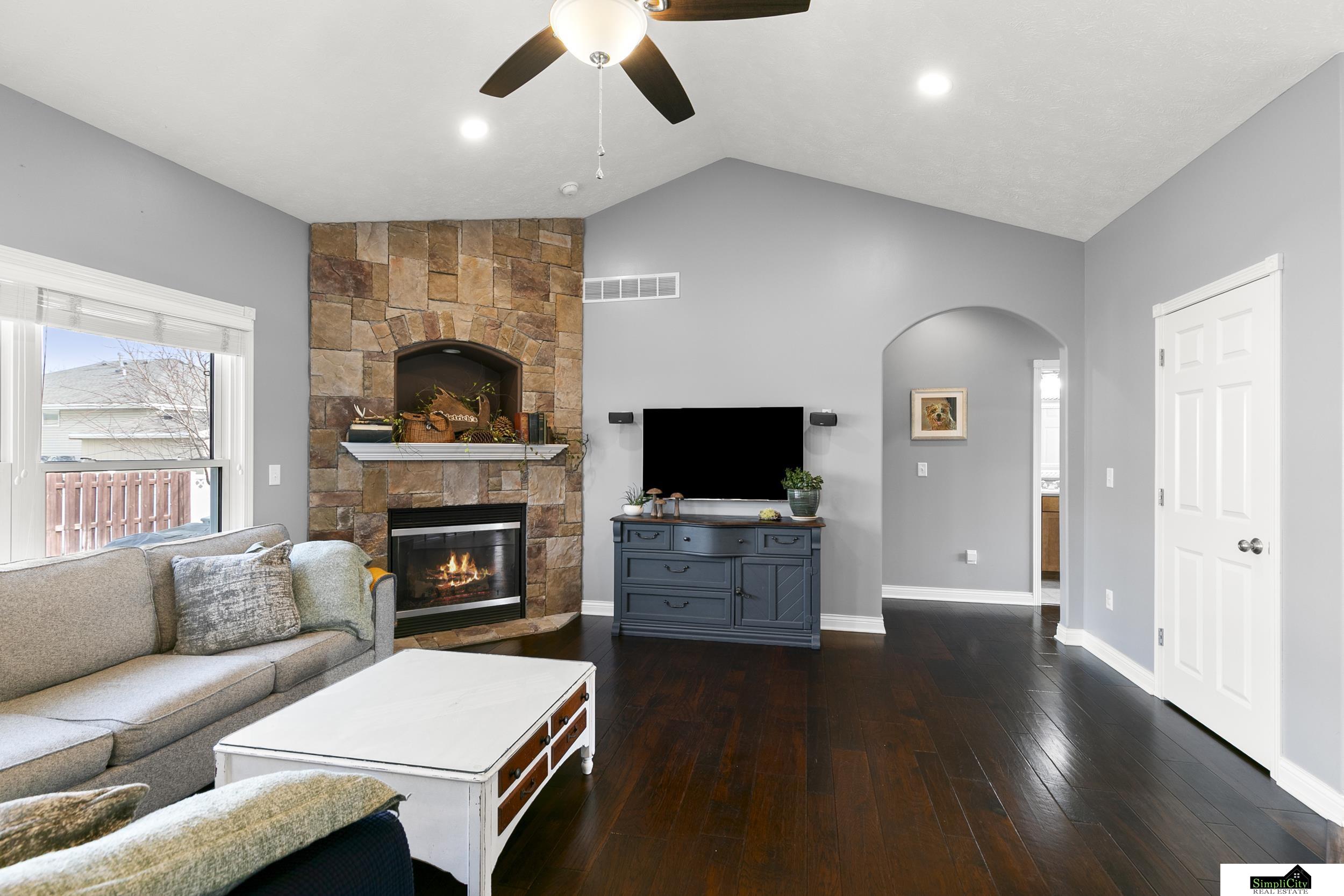Welcome home to this beautiful four-bedroom ranch! The living room invites you right in with its vaulted ceiling and gas fireplace, featuring gorgeous stone work and a built-in! The kitchen has lovely cabinetry, matching appliances, a custom wood range, AND a bonus pantry space with the main-level laundry room! You'll find three bedrooms on this level as well, including the primary suite with a walk-in closet! Downstairs has a large rec room with a dry bar for relaxing, a 3/4 bath, a bonus room, and plenty of storage! Get ready to enjoy the spring weather out on the patio in the fully fenced-in backyard! You can even enjoy the producing peach tree when the time comes! Also, don't skip over all the recent upgrades this home has undergone! New windows completed in '22, HVAC in '22 w/5 yr transferable warranty, water heater in '21, and impact-resistant shingles! Call to see it all for yourself today!