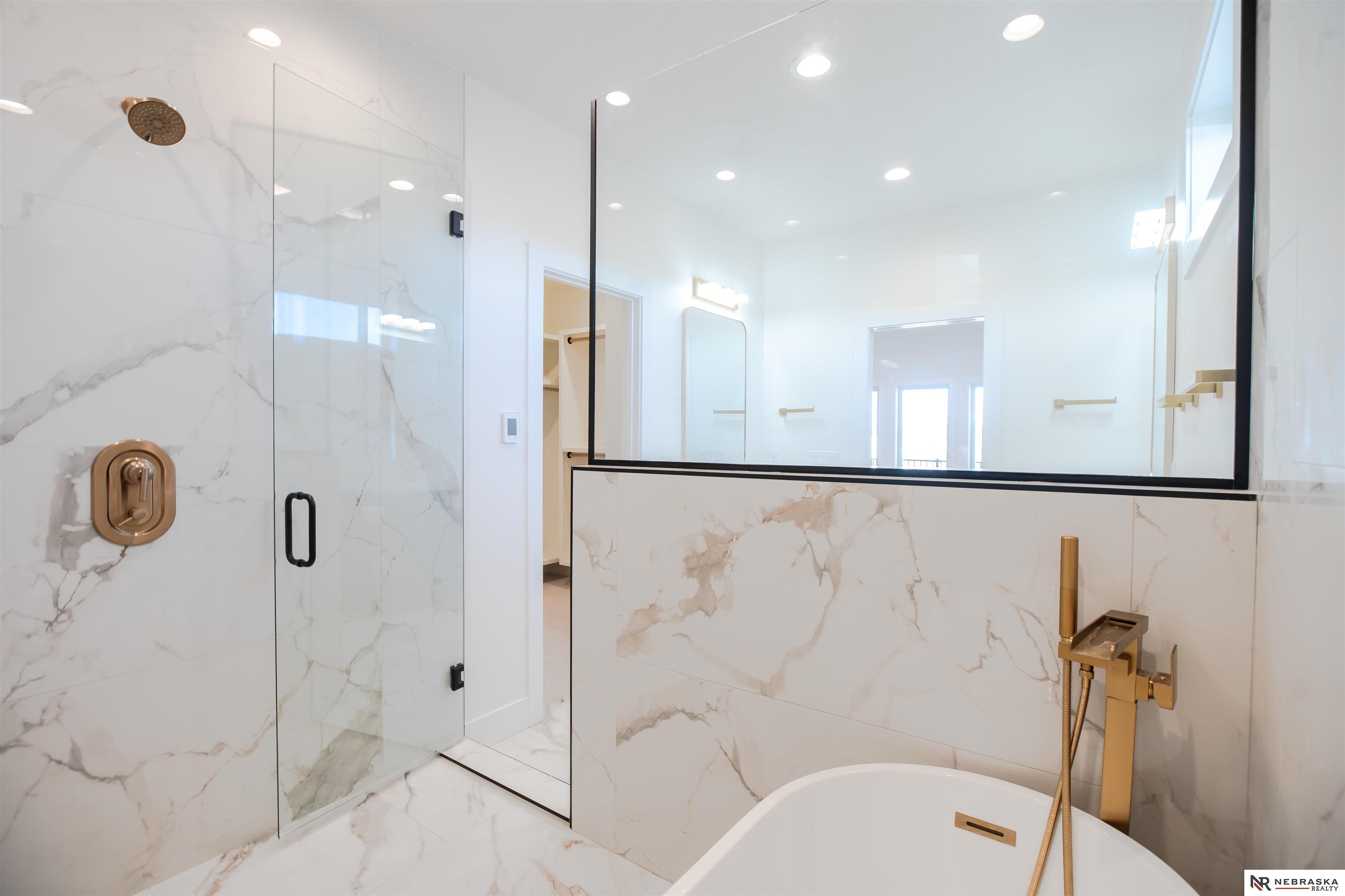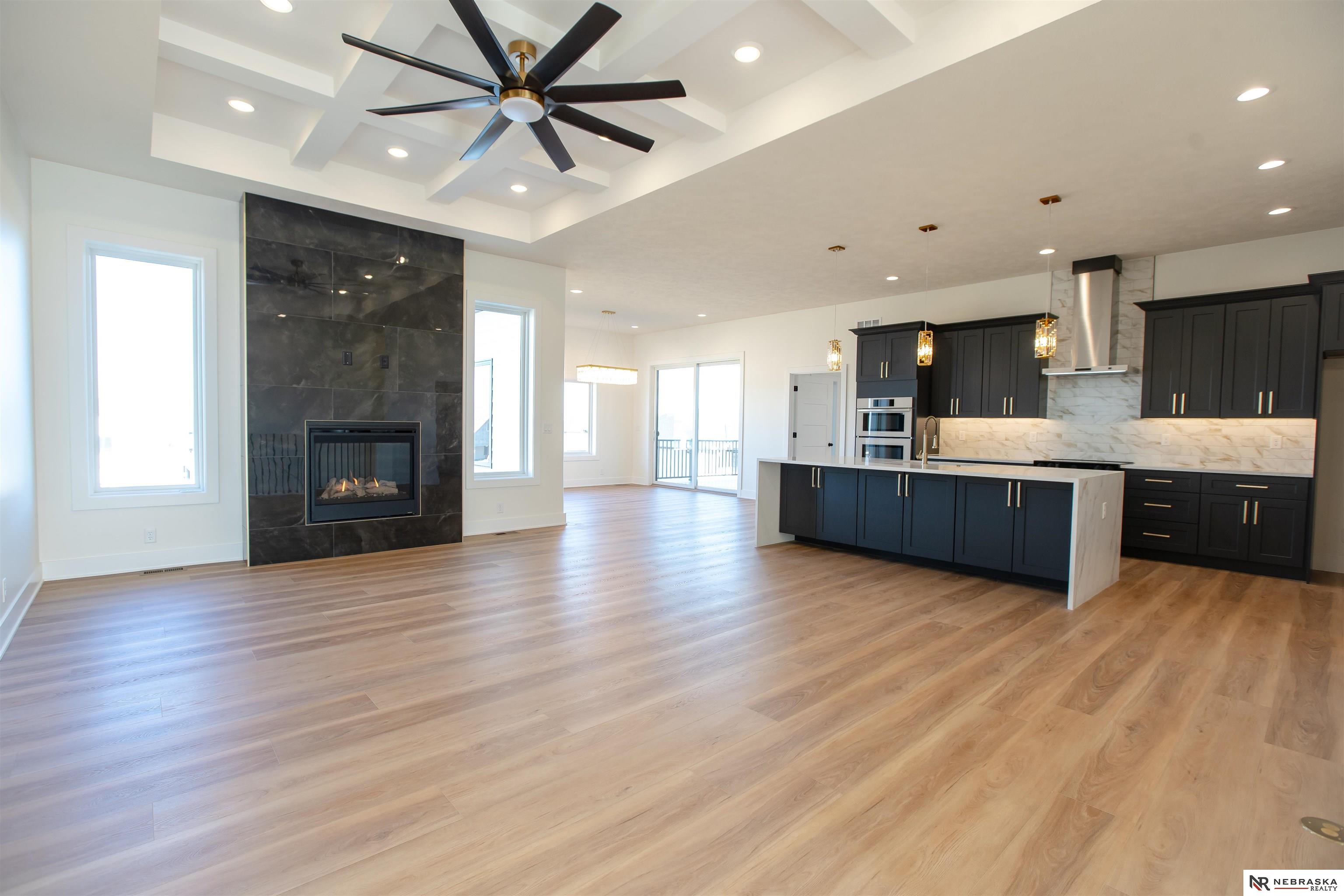 Welcome to this stunning 3,663 sq. ft. custom home with nearly 2,000 sq. ft. on the main level! This open-concept plan offers 3 spacious main-floor bedrooms, including a luxurious primary suite with an expanded walk-in closet and a spa-inspired bath featuring an oversized walk-in shower, freestanding soaking tub, dual vanities, and heated tile flooring. The upgraded kitchen boasts a huge center island with quartz countertops, a waterfall edge, and custom cabinets with tons of storage. The walk-in pantry contains lots of extra cabinetry and countertops to double your workspace. Enjoy an enlarged dining area leading to a deck through an oversized sliding glass door flooding the space with natural light. The great room features extra-large windows flanking the fireplace. Downstairs includes a large galley-style wet bar, office, and generous storage. Enjoy endless amounts of hot water with your tankless gas water heater. Every detail is designed for comfort, function, and style!