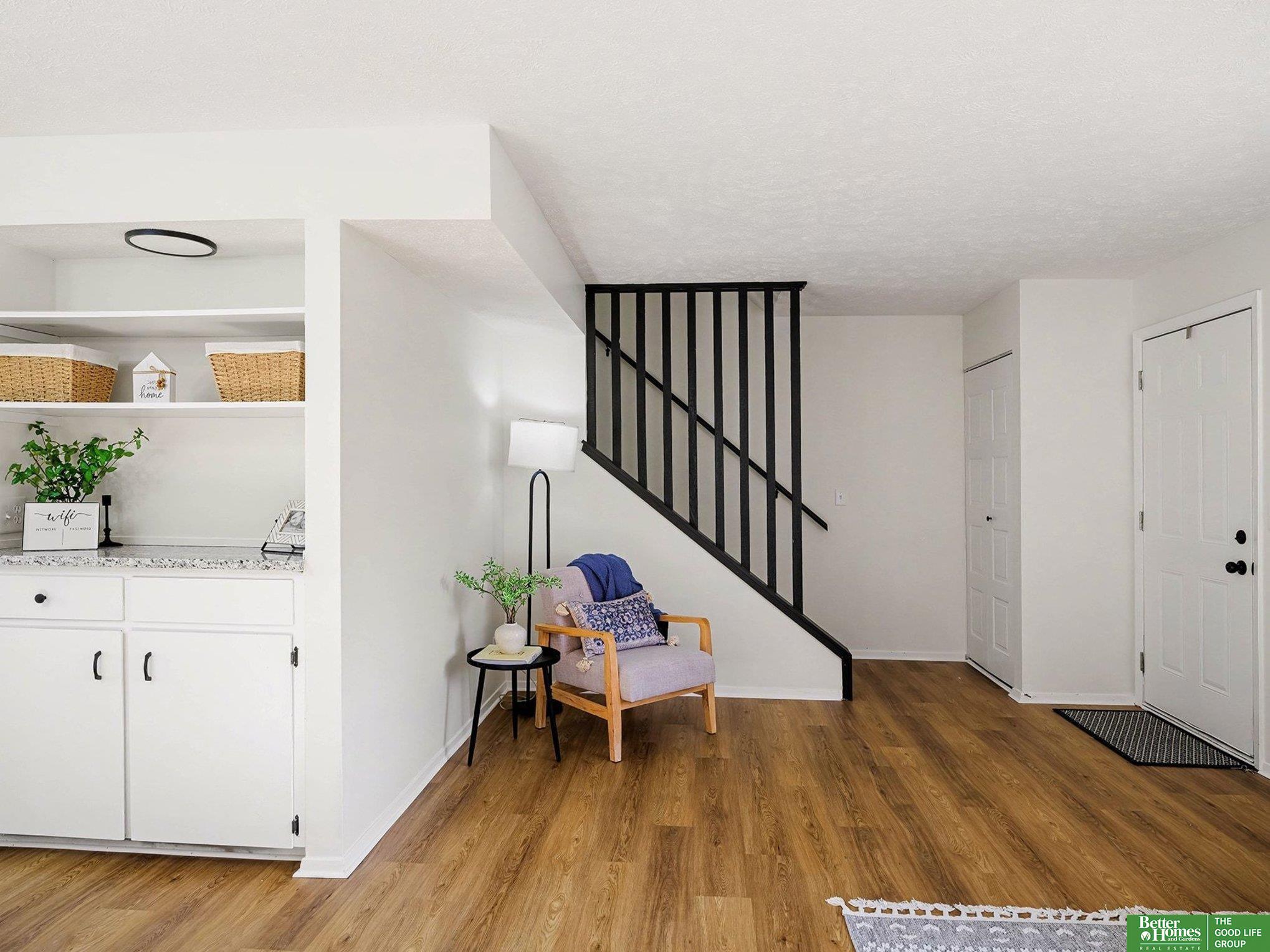 The Cutest 2-story condo in La vista fully move in ready with a 1 car garage! Enjoy low-maintenance living with an HOA that covers lawn care, snow removal, water, trash, exterior maintenance, and exterior insurance. This home features brand-new carpet in all 3 bedrooms upstairs, as well as new light fixtures in all bedrooms and bathrooms. Enjoy the master ensuite bathroom which features a shower, vanity and large close space! The kitchen features brand new oven, new dishwasher, new backsplash and all stainless steel appliances. The fully finished walkout basement offers a charming brick fireplace, new carpet, storage room, and additional recreation space and direct access outdoors with a basketball court close by! A perfect blend of comfort, style, and convenience.