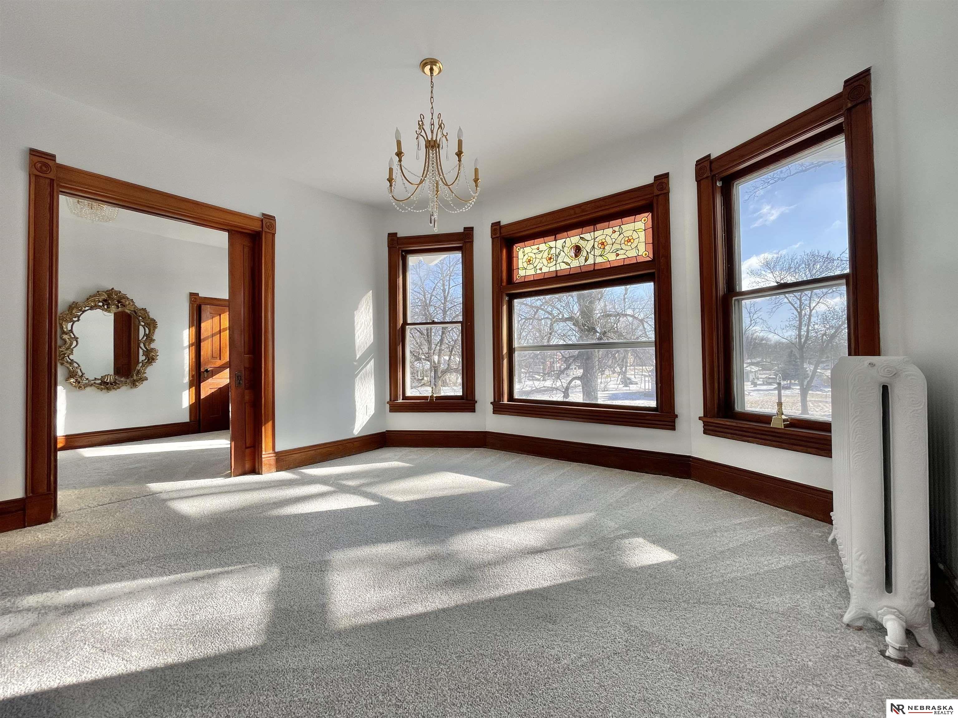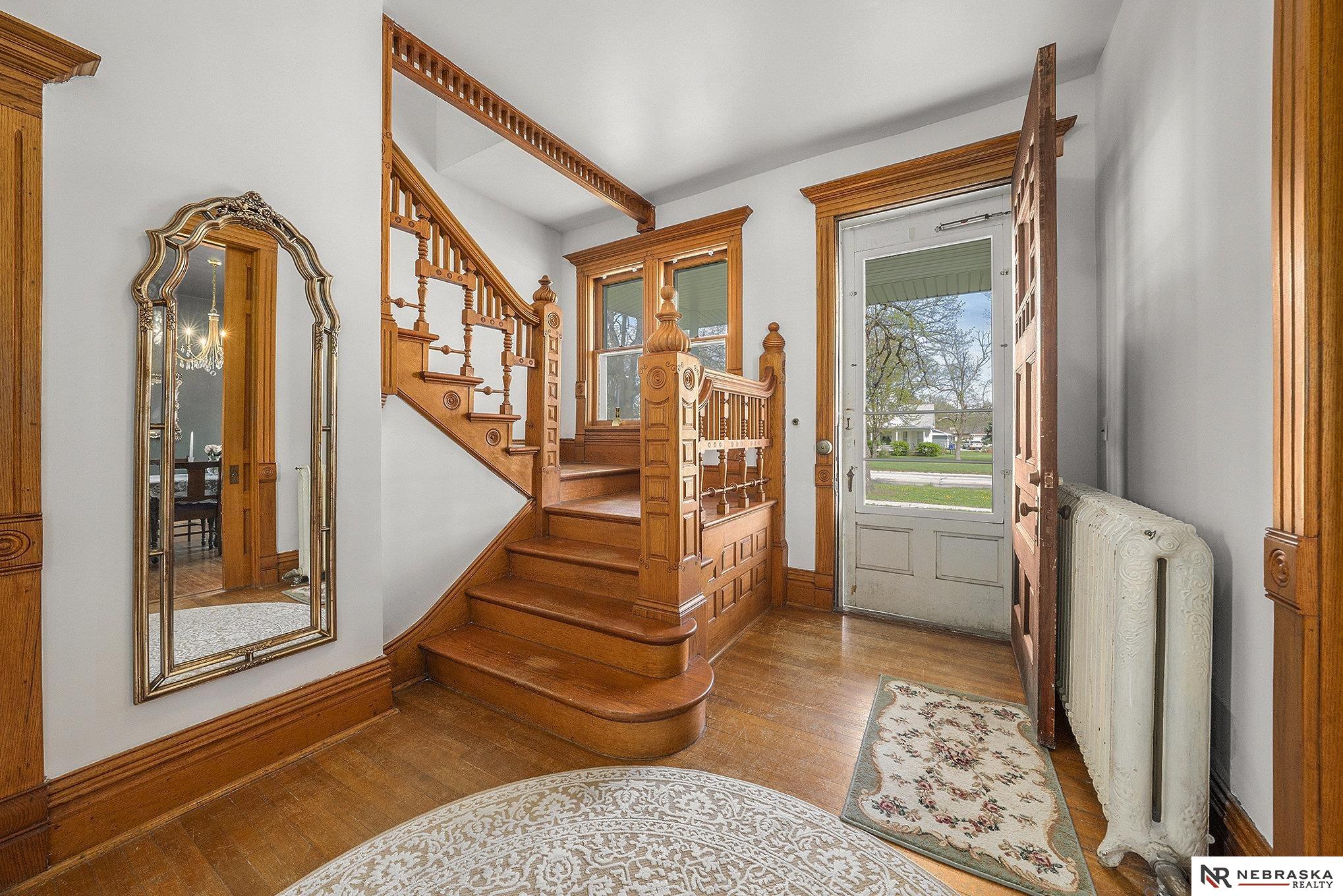 . A grand home in the beautiful town of David City, NE. The year of 1878 was bright when prairie sod was broken and foundations were laid for this historic home. Inside, this grand home features beautiful oak woodwork, original interior trim and details, pocket doors, a stunning fireplace, and a fully renovated chefs kitchen. Morning coffee is best spent at the kitchen bar with the birds chirping from the open window. This home has 5 bedrooms and 2 glorious baths! Situated on an oversized lot with mature trees and graceful porches, the original exterior details on this folk Victorian are impressive This home has been featured in a Dale Nichols painting, a famous American artist from David City, NE. The property has opportunities as a bed and breakfast, small business, or as your beautiful home. Don't miss this one for it's charm and beautiful renovations.