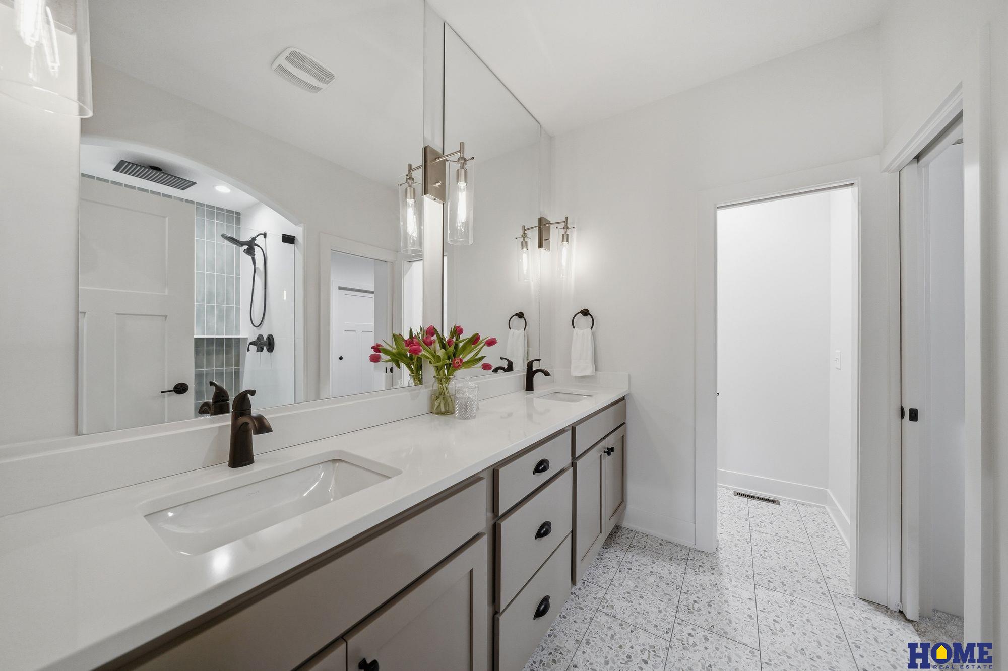 Better than new, this stunning 2023 custom ranch by Gatlin Homes delivers craftsmanship and designer flair a brand-new build simply cannot match. Upgraded designer light fixtures, cordless sheer shades, architectural shingles and a ¼ acre of prof landscaped grounds set this home apart from the moment you arrive. Stone and Hardie board exterior, curved archways, quartz countertops, wainscoting fireplace surround, and inspired accent walls complete the picture. The gourmet kitchen impresses with a vented hood, a 9x7 walk-in pantry, and a Frigidaire twin full-sized refrigerator and freezer. Main floor laundry offers direct closet access, a folding surface, and built-in cabinetry. Rarely found at any price, both main floor bedrooms boast their own ensuite — 4 bathrooms total, with the primary featuring a dual-head tile shower and dual vanity. Two basement bedrooms round out this exceptional home. An 18x12 covered patio overlooks the lush yard, and the MoPac Trail is two blocks away.