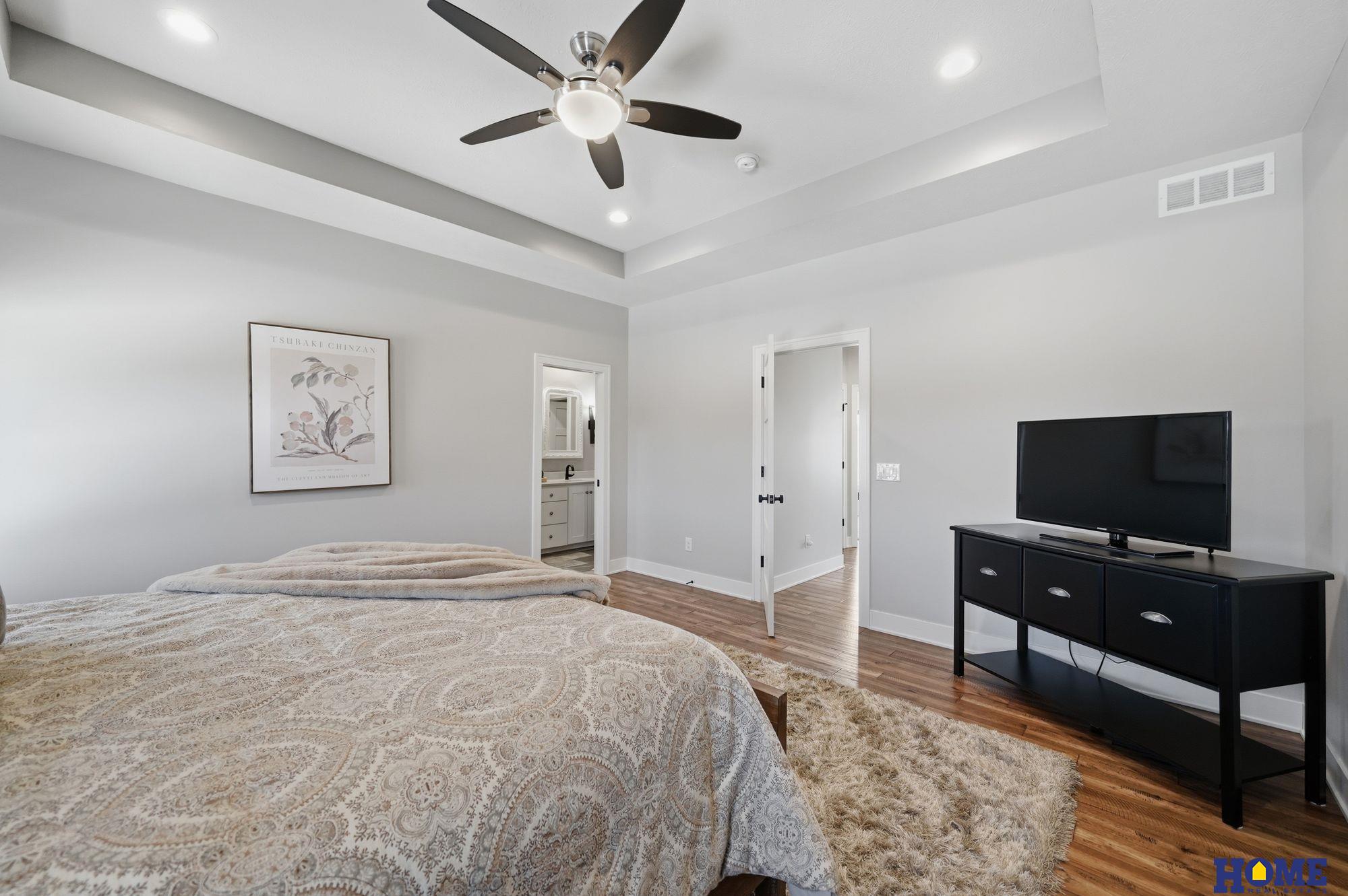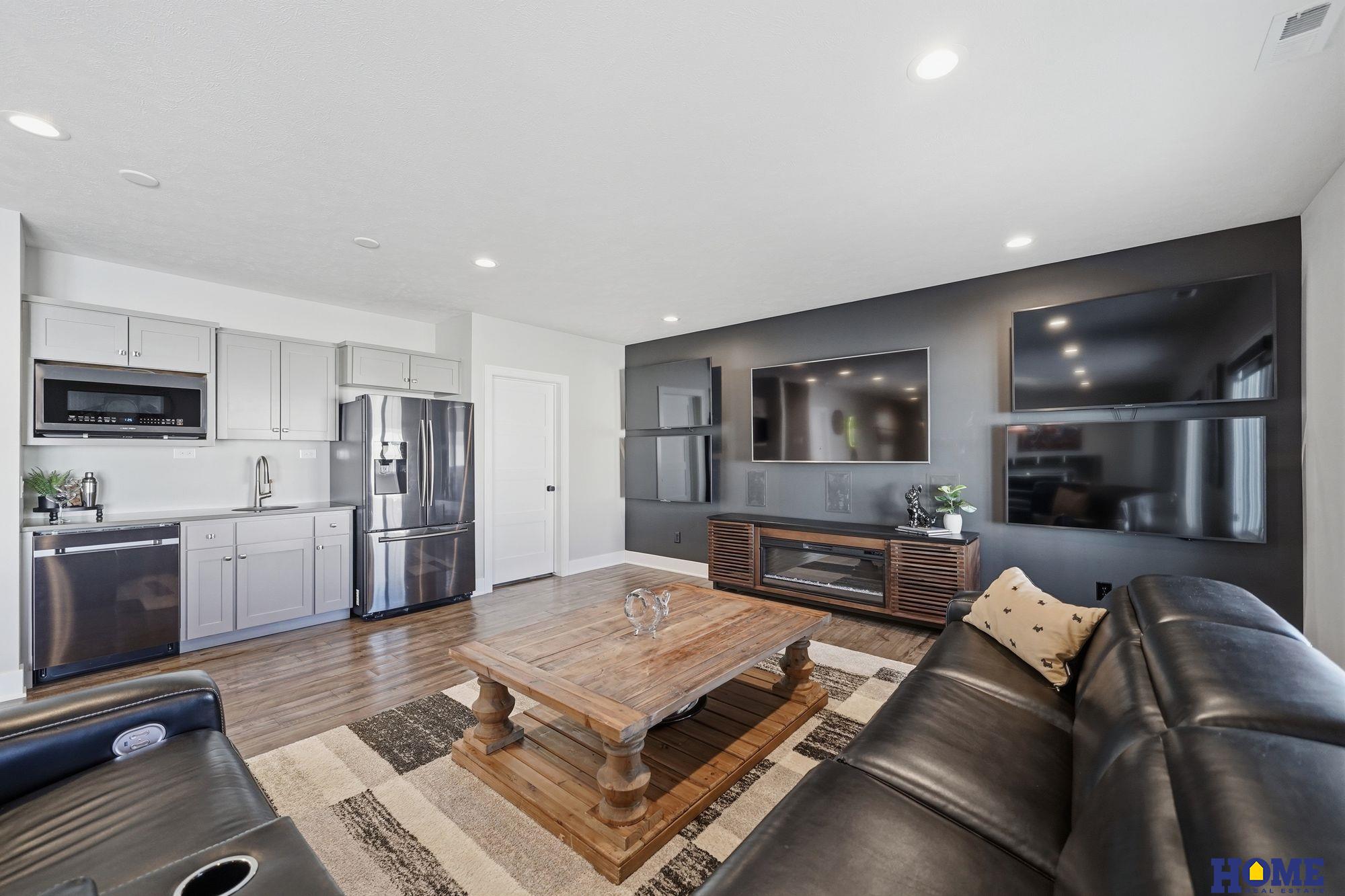 Six year old walkout ranch has all the bells and whistles plus extras. Beautiful neutral decor, stone fireplace, quartz countertops, wood floors and custom blinds. A huge deck 26x12 that is half covered and half open, and a fully fenced yard. It feels and looks like new construction and is priced better. 3 bedrooms on first level and a large 4th in the walkout level. Great familyroom is a sports watchers dream with 5 tvs and dedicated area for pool table. Great lower level bar with dishwasher, double stainless fridge, microwave and great cabintry. Beautiful large yard. It doesn't get better than this! 3 stall garage has hot and cold water, floor drain and heater.