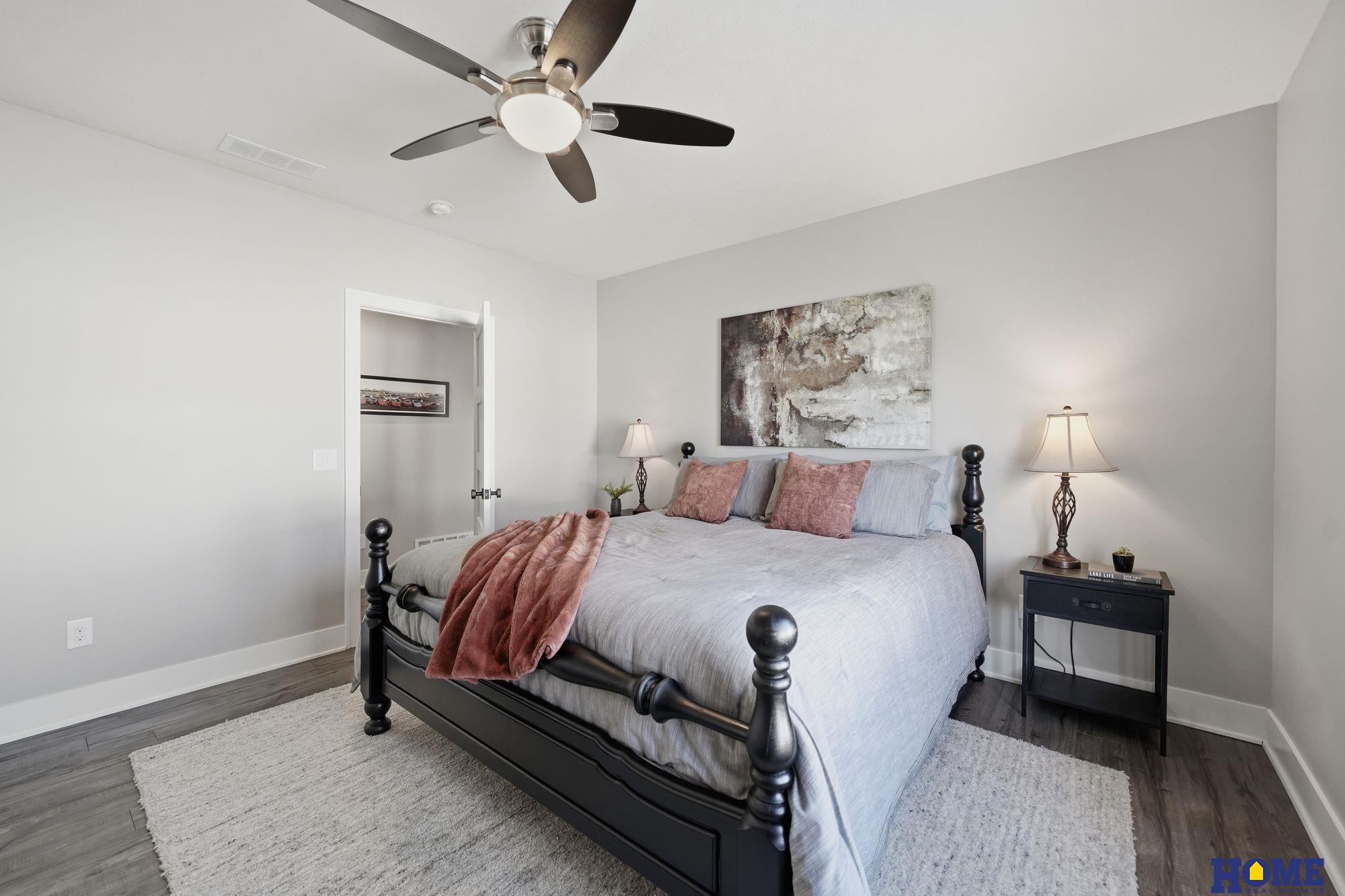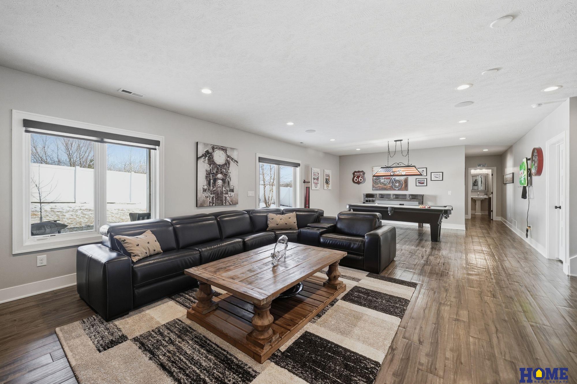 Six year old walkout ranch has all the bells and whistles plus extras. Beautiful neutral decor, stone fireplace, quartz countertops, wood floors and custom blinds. A huge deck 26x12 that is half covered and half open, and a fully fenced yard. It feels and looks like new construction and is priced better. 3 bedrooms on first level and a large 4th in the walkout level. Great familyroom is a sports watchers dream with 5 tvs and dedicated area for pool table. Great lower level bar with dishwasher, double stainless fridge, microwave and great cabintry. Beautiful large yard. It doesn't get better than this! 3 stall garage has hot and cold water, floor drain and heater.