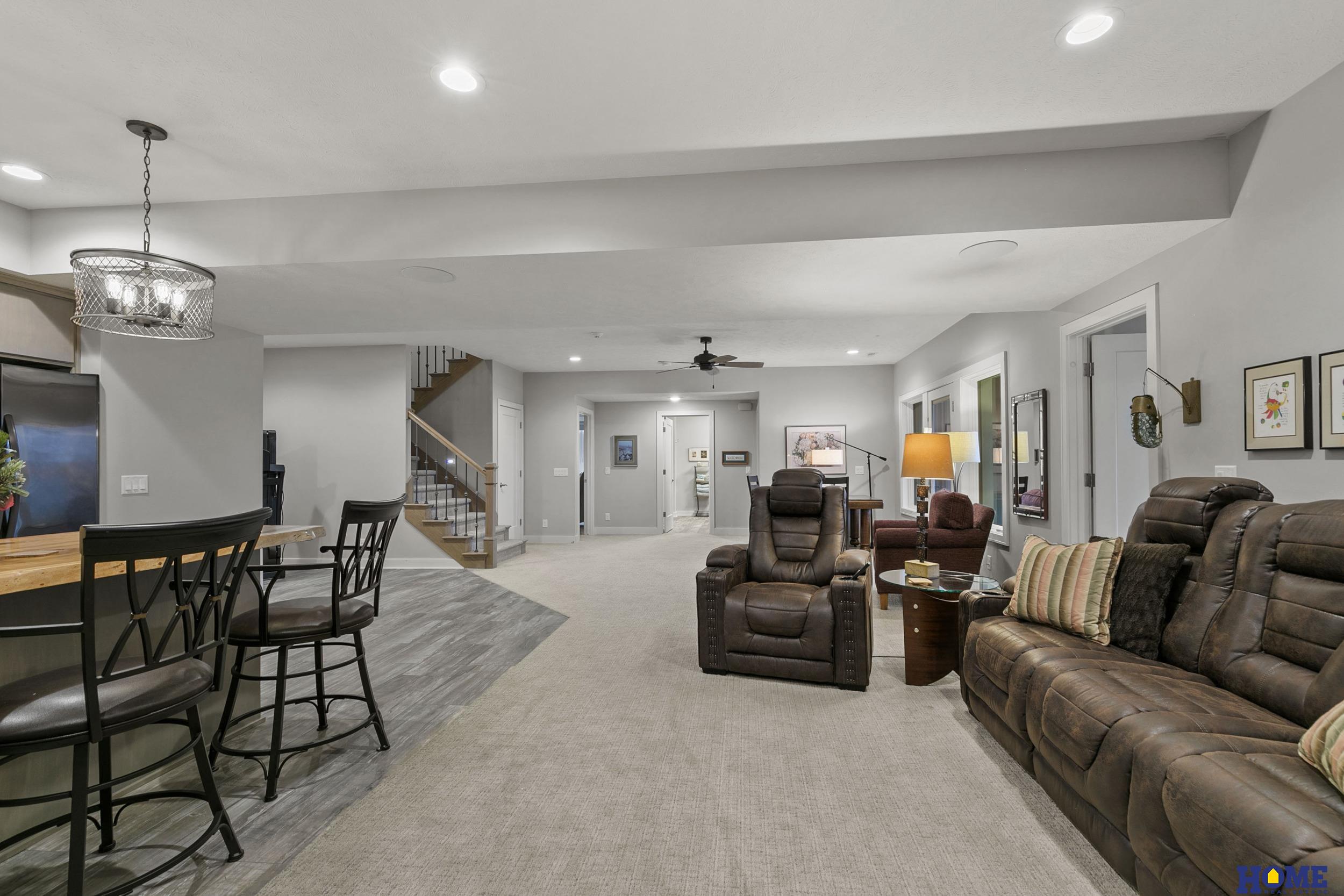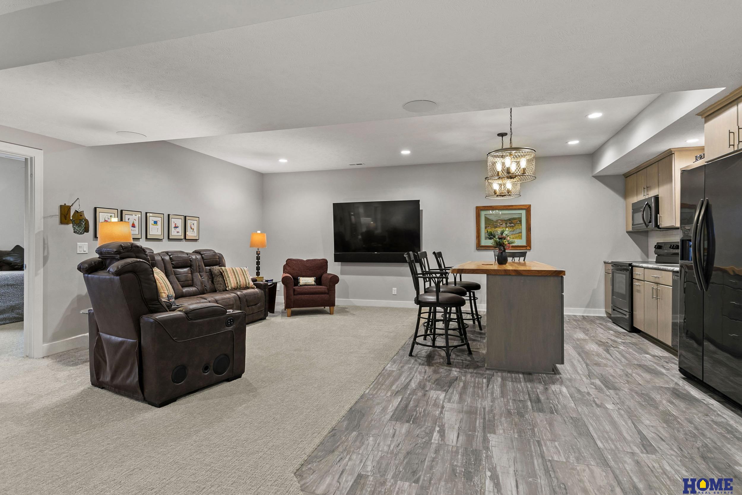 Gracious zero-entry Firethorn custom-built walk-out ranch by Heritage Builders. Open layout and hardwood floors create an interior that flows from living room with fireplace and built-ins, to a kitchen featuring a massive island with granite countertops. The dining area is surrounded by windows and has a patio door to the partially covered deck. A nice large pantry, laundry, and a powder bath are off the kitchen. The primary suite is large with walk-in closet, door to deck, bath with double sinks and a shower. The second bedroom is currently used as an office, but has a closet and adjacent full bath with air tub. The walkout basement features a large great room with a second kitchen, shower over tub bath, and 3 legal bedrooms. The garage features an epoxy floor and floor drain. Part of the HOA monthly dues pays for Athey to oil exterior wood every other year. Association also provides lawn care, fertilizing and snow removal. SEI security system.