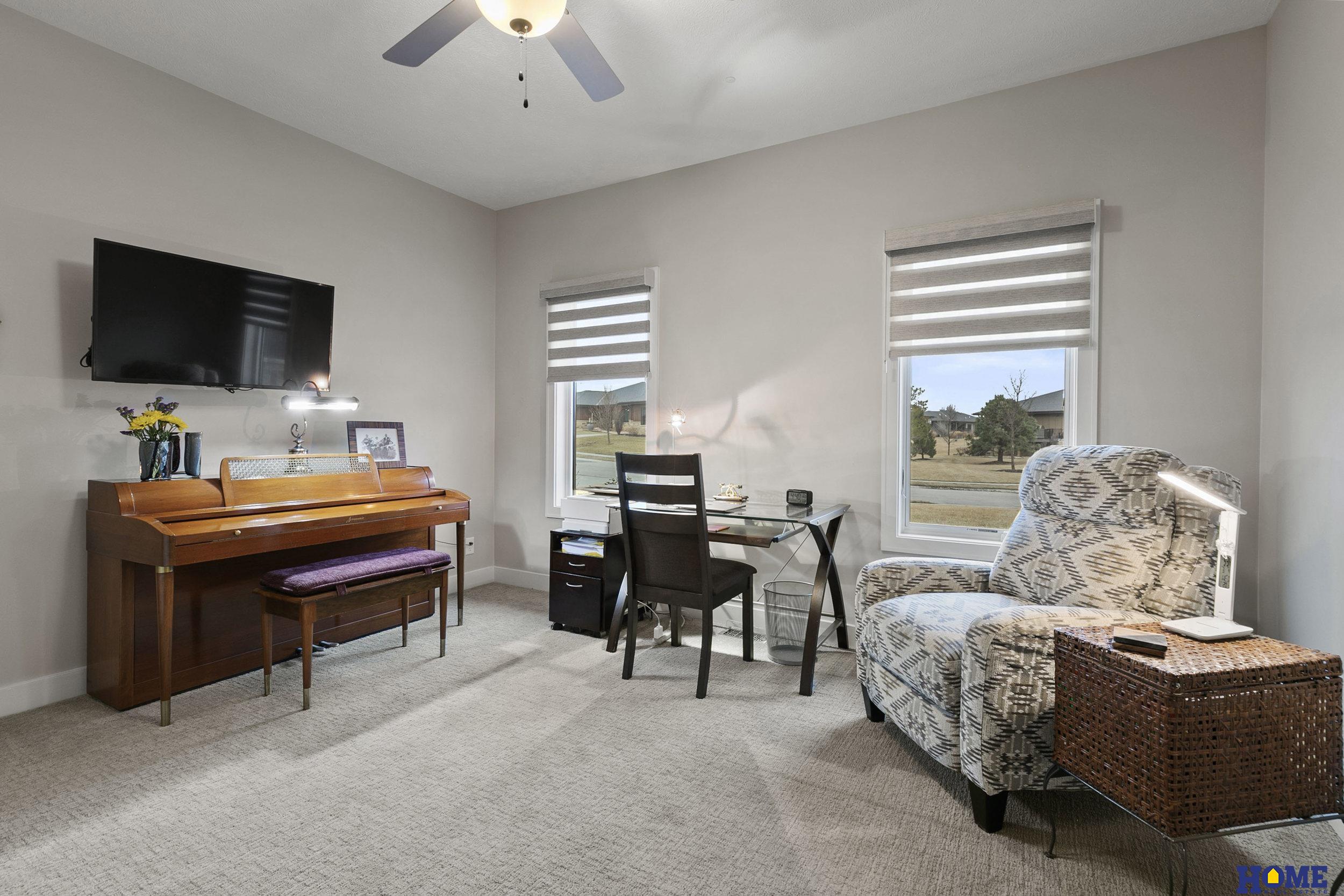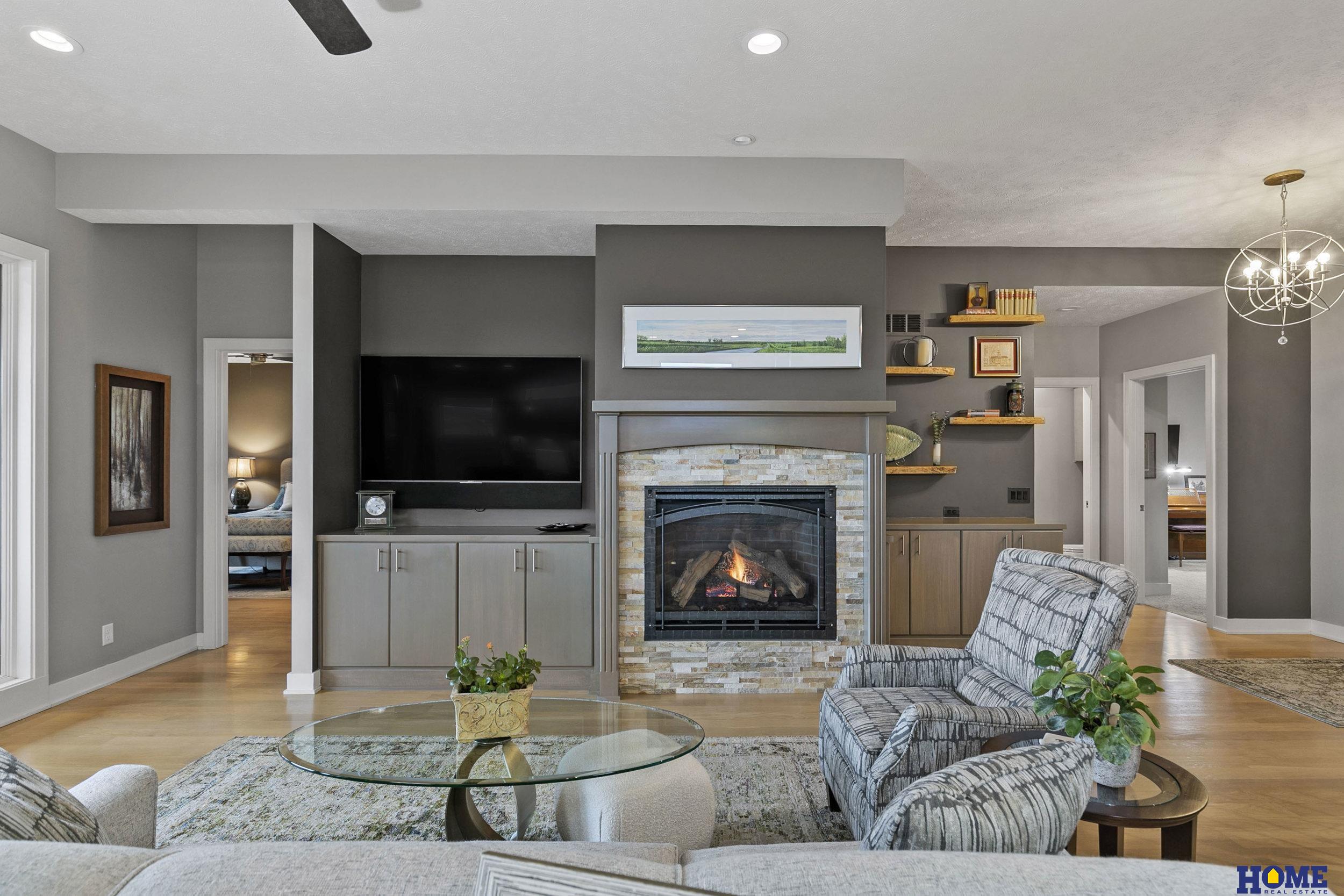 Gracious zero-entry Firethorn custom-built walk-out ranch by Heritage Builders. Open layout and hardwood floors create an interior that flows from living room with fireplace and built-ins, to a kitchen featuring a massive island with granite countertops. The dining area is surrounded by windows and has a patio door to the partially covered deck. A nice large pantry, laundry, and a powder bath are off the kitchen. The primary suite is large with walk-in closet, door to deck, bath with double sinks and a shower. The second bedroom is currently used as an office, but has a closet and adjacent full bath with air tub. The walkout basement features a large great room with a second kitchen, shower over tub bath, and 3 legal bedrooms. The garage features an epoxy floor and floor drain. Part of the HOA monthly dues pays for Athey to oil exterior wood every other year. Association also provides lawn care, fertilizing and snow removal. SEI security system.