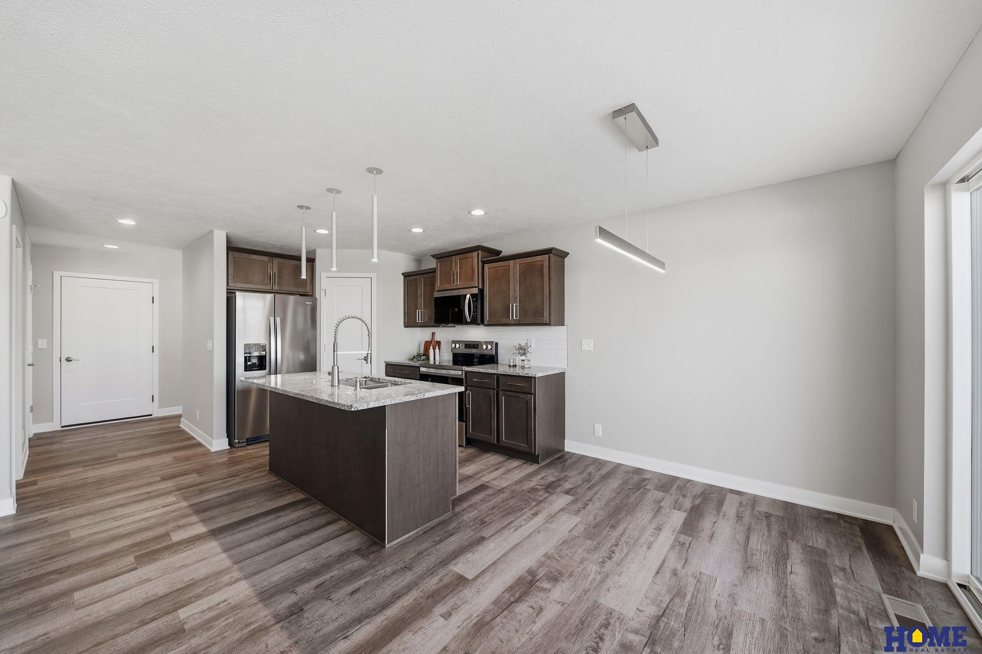 Welcome to the beautiful Peregrine Townhomes by Stonybrook Homes, located in an attractive East Lincoln neighborhood! This stunning 2-story townhome offers an inviting, open-concept living space with a grand 2-story entry & lots of daylight, corner fireplace, large center island, granite countertops, stainless appliances, and attractive cabinetry, plus an awesome walk-in-pantry. Upstairs, the unbelievably spacious primary suite includes double vanity bathroom & a humongous walk-in closet. Two more bedrooms, laundry room, and common bathroom are also on the 2nd level. All appliances are included, even your washer/dryer & refrigerator! Outside, you will love the large 3-car garage and nice- sized yard, plus a patio! Top-quality construction & superior products are included in every Stonybrook Home. You'll enjoy the maintenance-free exterior and an energy-efficient all-electric heat pump. HOA takes of lawn care, snow removal, and trash service! Call today