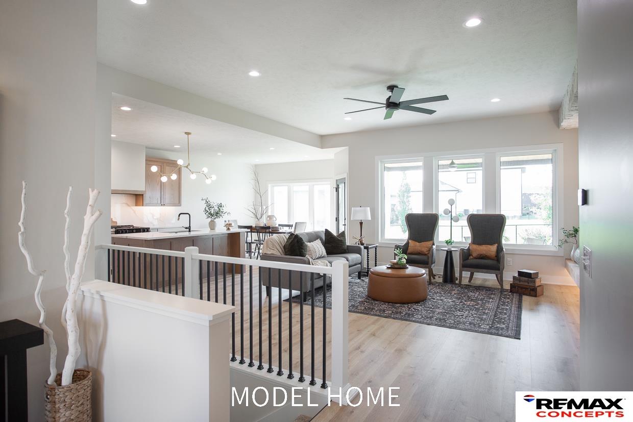 Model Home Not for Sale. Contract Pending Stunning new construction at 8911 Ranch Gate Rd! This beautifully designed home offers 3,323 sq. ft. of high-end finishes with an oversized 3-stall garage. The exterior features concrete board siding and stone, while a designer-curated interior ensures impeccable style. The open-concept kitchen boasts a large walk-in pantry, and the main level hosts 3 bedrooms, 3 bath areas including a powder bath and a luxurious primary suite with a tile walk-in shower, quartz countertops, and a walk-in closet. The finished basement features 2 additional bedrooms, a flex room, wet bar, spacious rec room, and ample storage. Enjoy your morning coffee on the generously sized stamped concrete covered patio.