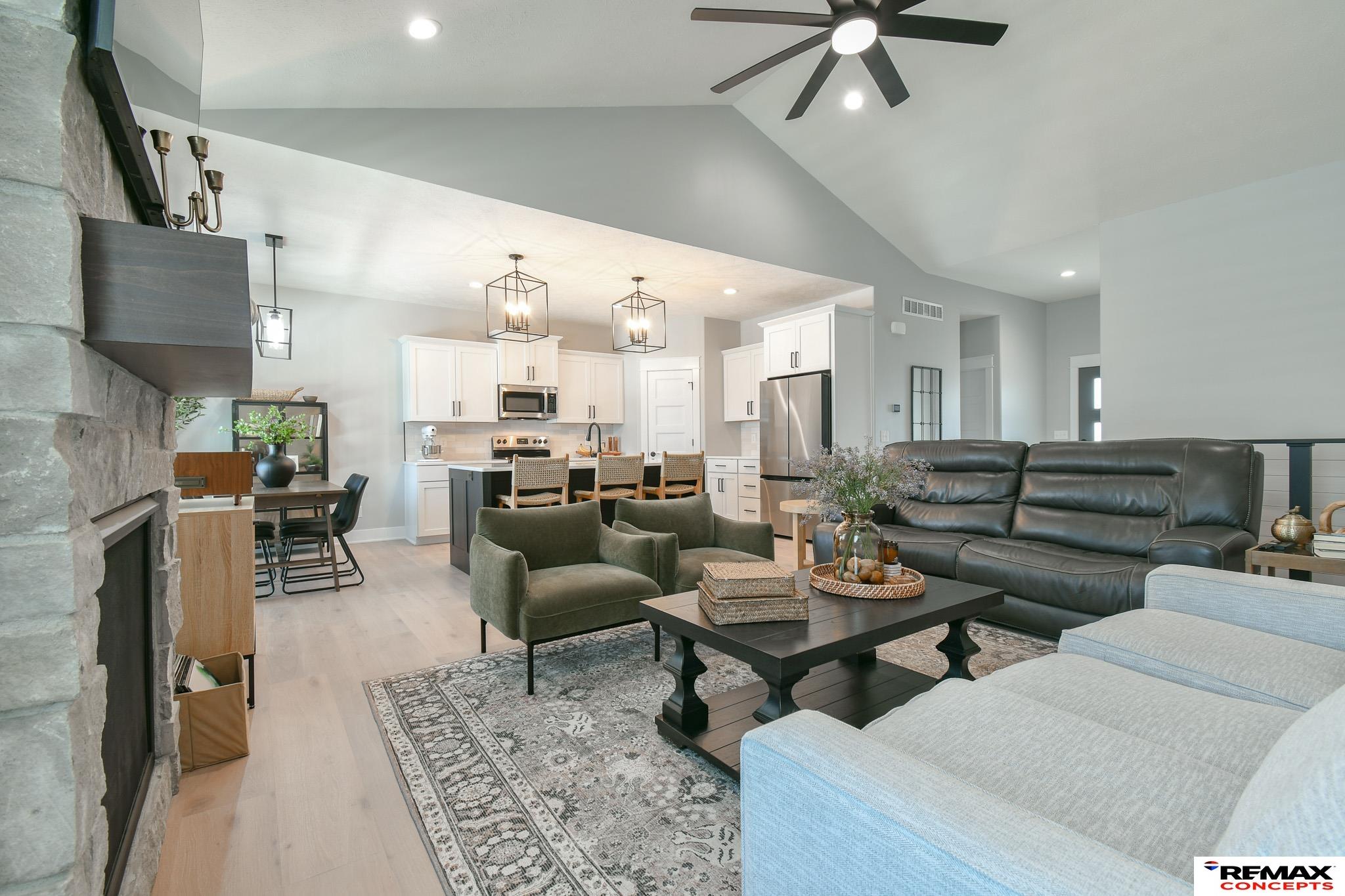 Welcome to 8915 S 75th St, just north of 75th & Yankee Woods Dr! This beautifully finished Peak Design Build townhome stands out from new construction with thoughtful upgrades throughout—custom window coverings, a white vinyl privacy fence, washer/dryer, stylish wallpaper, and designer light fixtures. The open-concept living area offers high ceilings, a cozy gas fireplace, and a stunning kitchen with a large island, granite counters, and crisp white cabinets. The main-floor primary suite feels luxurious with its tray ceiling, decorative wood accent wall, double-vanity ¾ bath, and spacious walk-in closet with built-ins. You’ll also find a second bedroom, full bath, and laundry on the main. The finished basement adds even more space with a family room, two bedrooms, and another bath. Enjoy your covered patio and private yard, plus low-maintenance living with an optional HOA for snow and lawn care. Use Google Maps for best navigation!