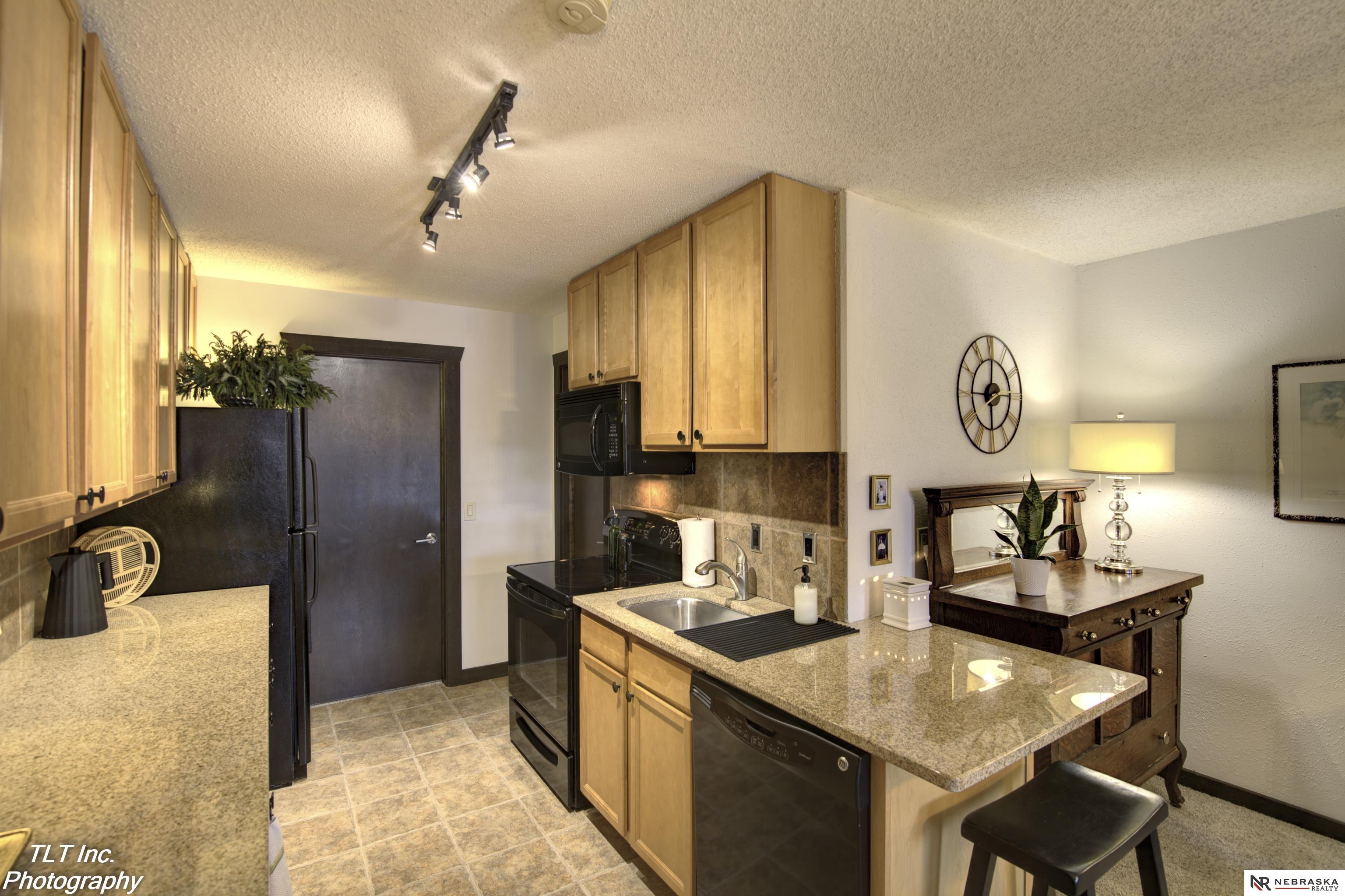 Looking for low-maintenance living? This stylish, efficient, and well-maintained one-bedroom, one-bathroom condo is ready for a new owner. Just steps away is one-car garage with an opener, providing added safety and convenience during cold weather. There is also a separate, conveniently located parking stall. The kitchen features granite countertops and wood cabinets that extend to the ceiling for ample storage. The bedroom includes a closet with a built-in shelving system. Additionally, the unit comes equipped with a washer and a dryer outlet. The HOA covers snow removal, lawn care, and exterior maintenance. With no stairs to the unit or inside and dedicated parking close by, this home is ideal for anyone seeking a comfortable, low-maintenance lifestyle, with a convenient location and the safety of a garage.