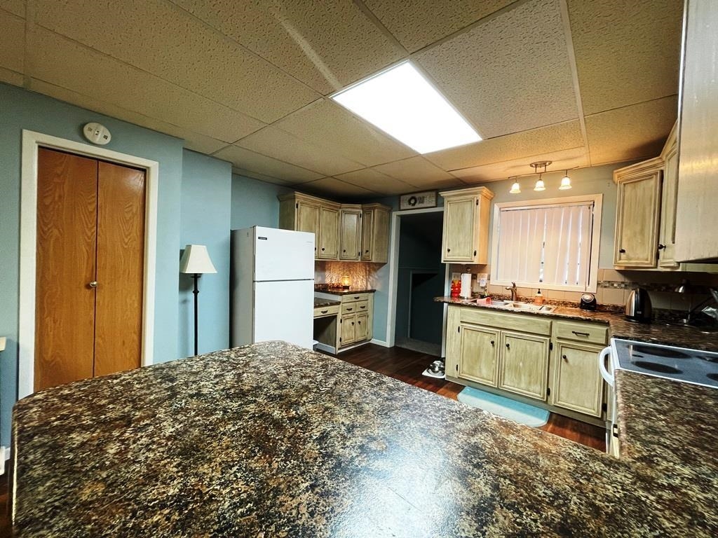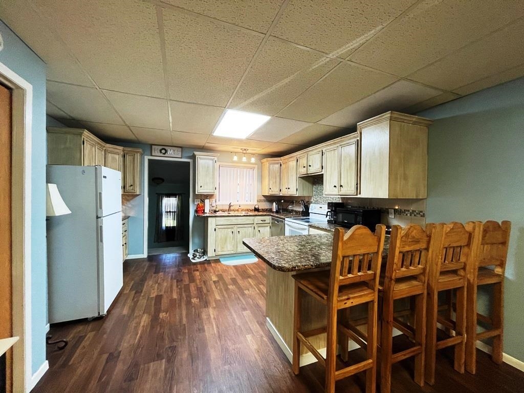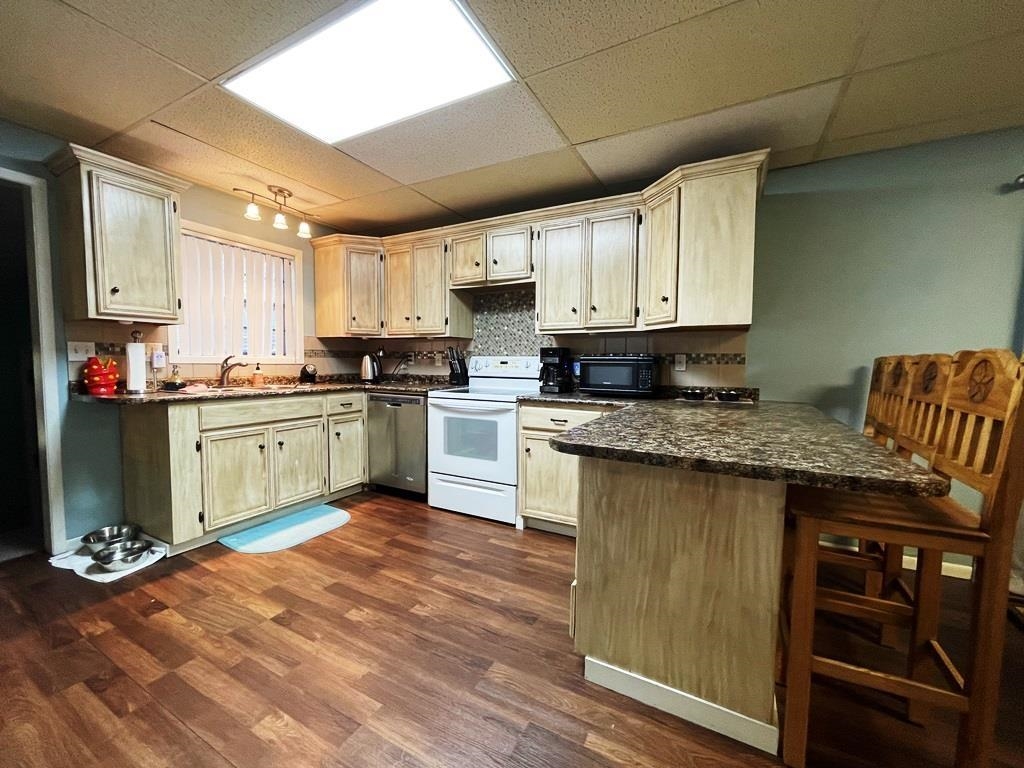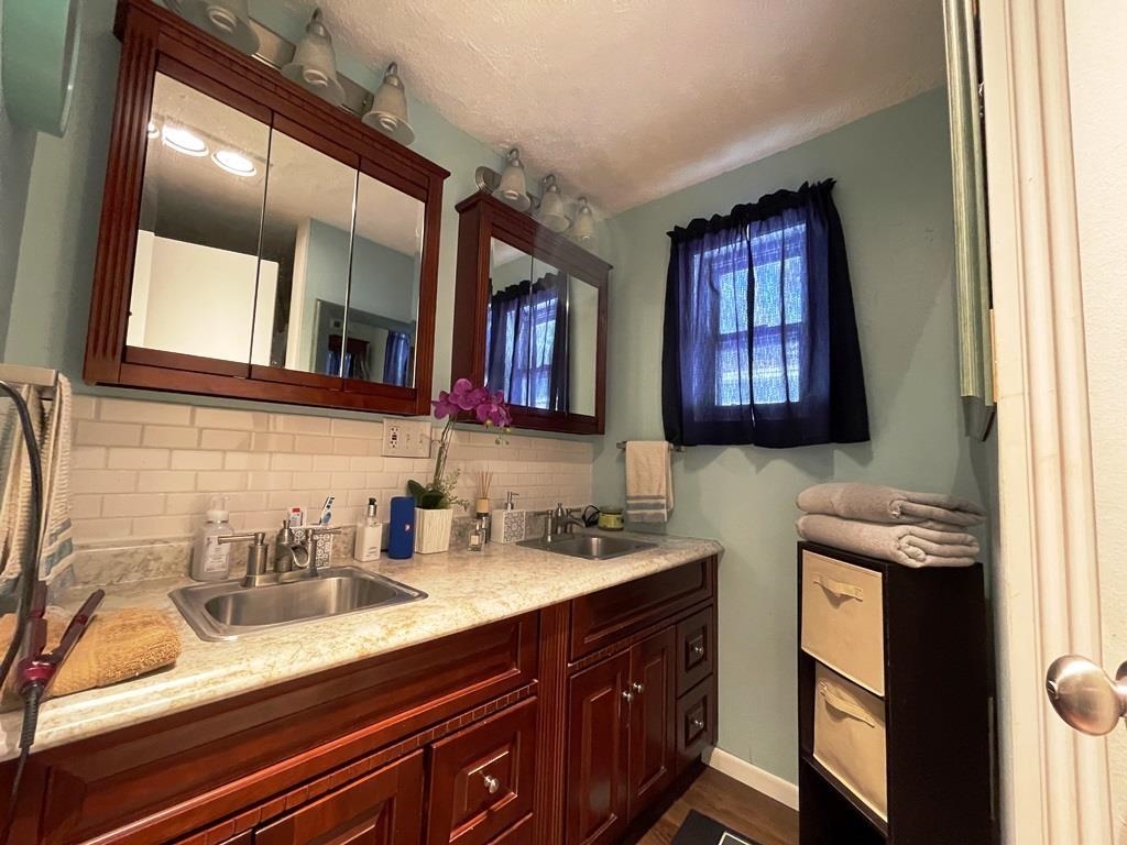 Maximum open space on the main floor by design with the living/dining/kitchen areas. You will be pleased with the abundance of kitchen cabinets and counter space. The main bedroom features a 9 foot walk-in closet. Updates to the main bath include a tiled tub/shower surround, vanity, double sinks and cabinet storage. The workshop was a one car garage that could be converted back with the addition of an overhead garage door installed in the original framing. *Photos displayed are file photos.