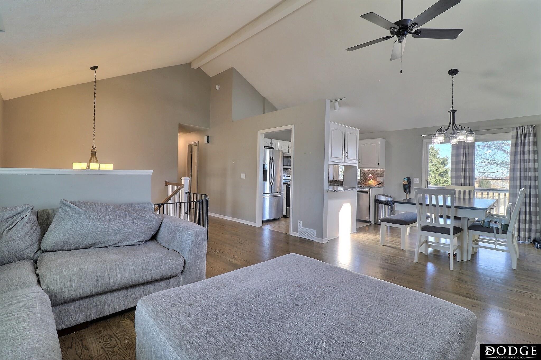Welcome to Deerfield — immediately upon entering this beautifully updated home your eyes will be drawn to the vaulted ceilings that open up the living and dining areas, creating a bright and welcoming space with access to the rear deck. The kitchen has been tastefully updated with granite countertops, stainless steel appliances, and a stylish backsplash that ties the home's updated feel together. Down the hall you’ll find two comfortable bedrooms, a fully updated hall bath (tub shower) with charming design touches, and double doors that lead into the primary suite. The primary bedroom features a recessed/vaulted ceiling, walk-in closet, and an updated ensuite 3/4 bathroom designed for both comfort and convenience. The lower level offers a generous family room, 3/4 bath, and walkout access to a covered patio and a large (over 1/4 of an acre!) fully fenced backyard—perfect for entertaining, pets, or quiet evenings outdoors +Lake access/fishing. A new roof & gutters installed in 2025. AMA