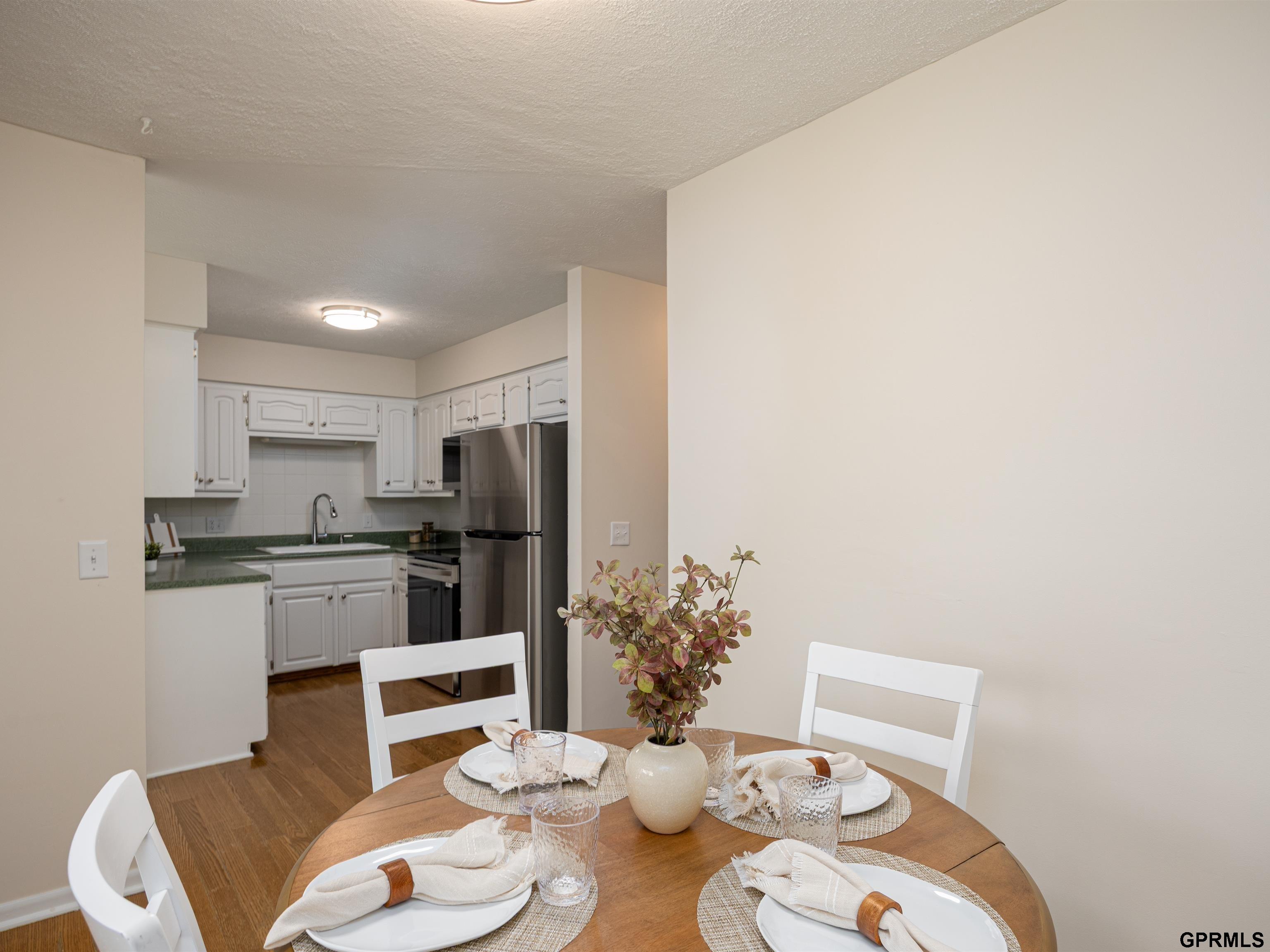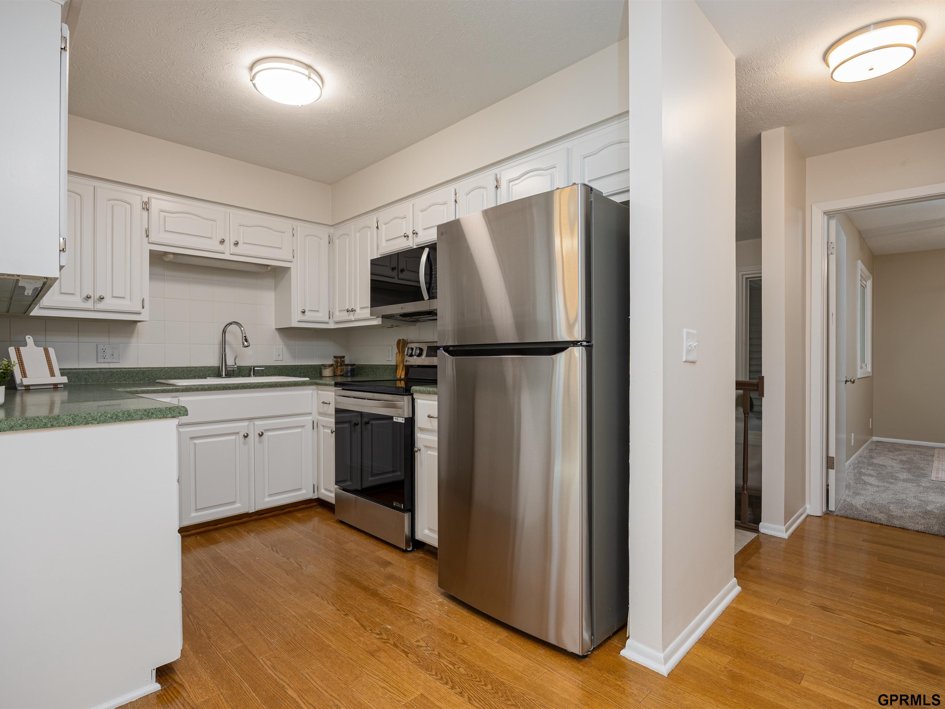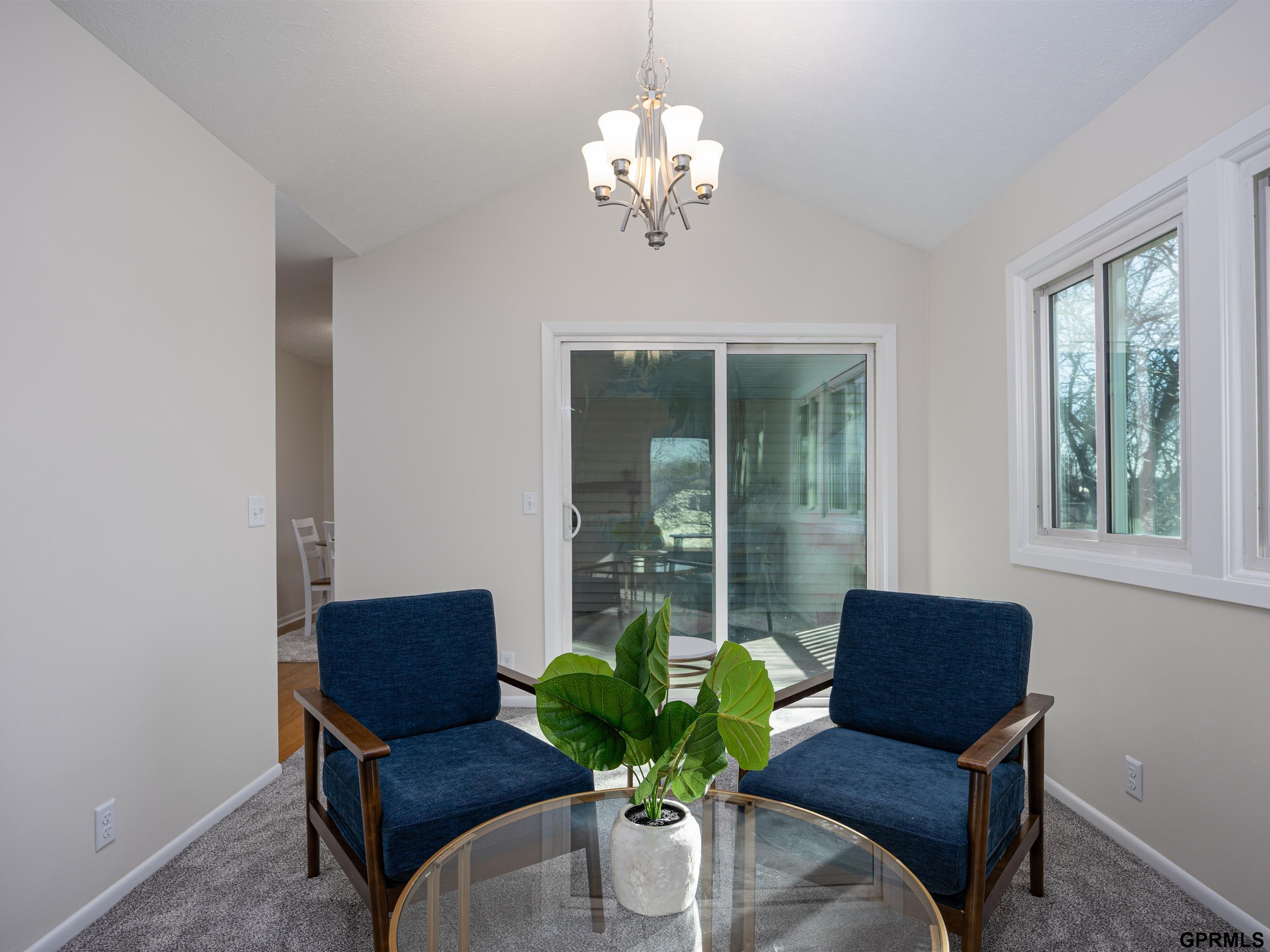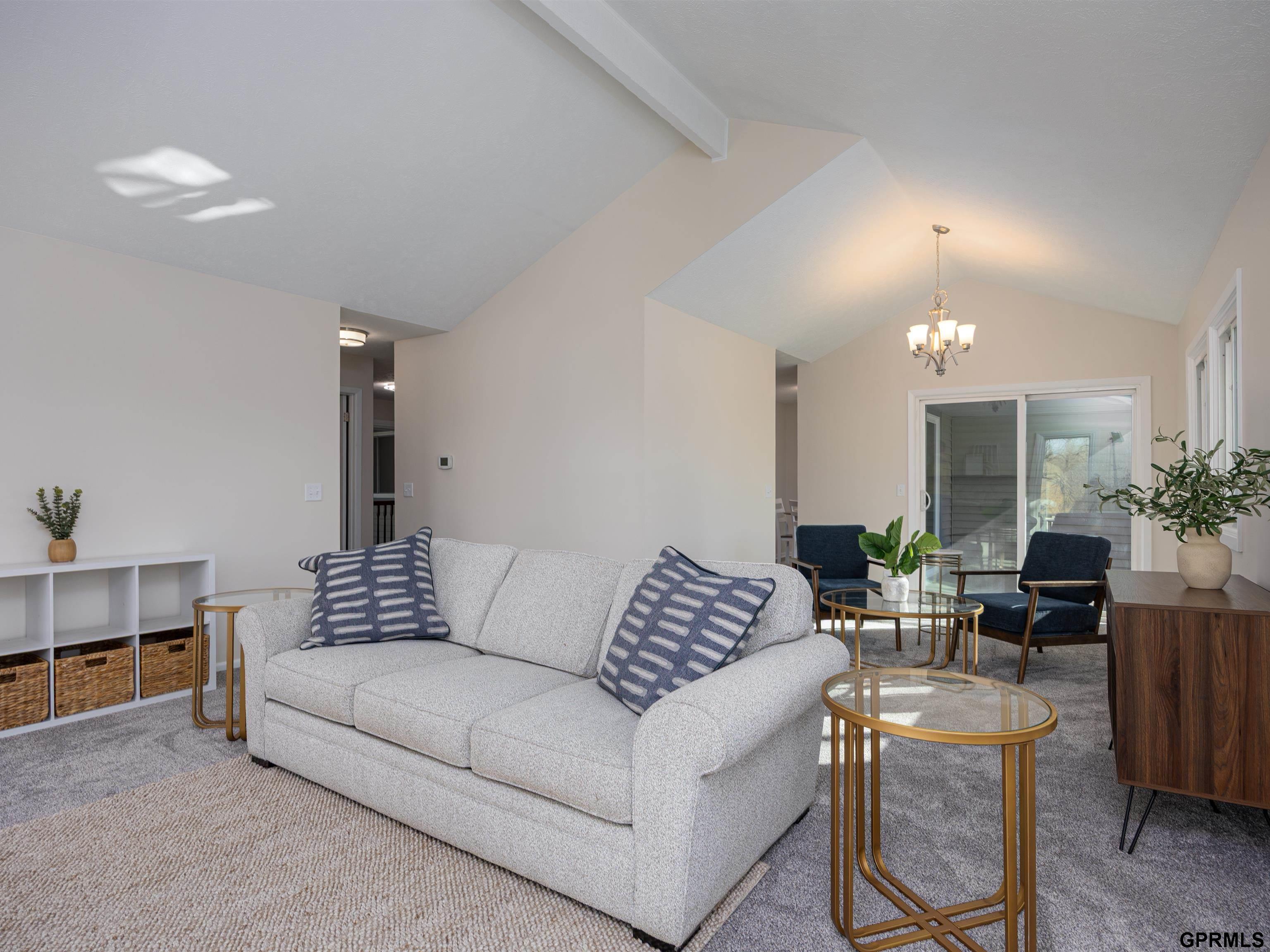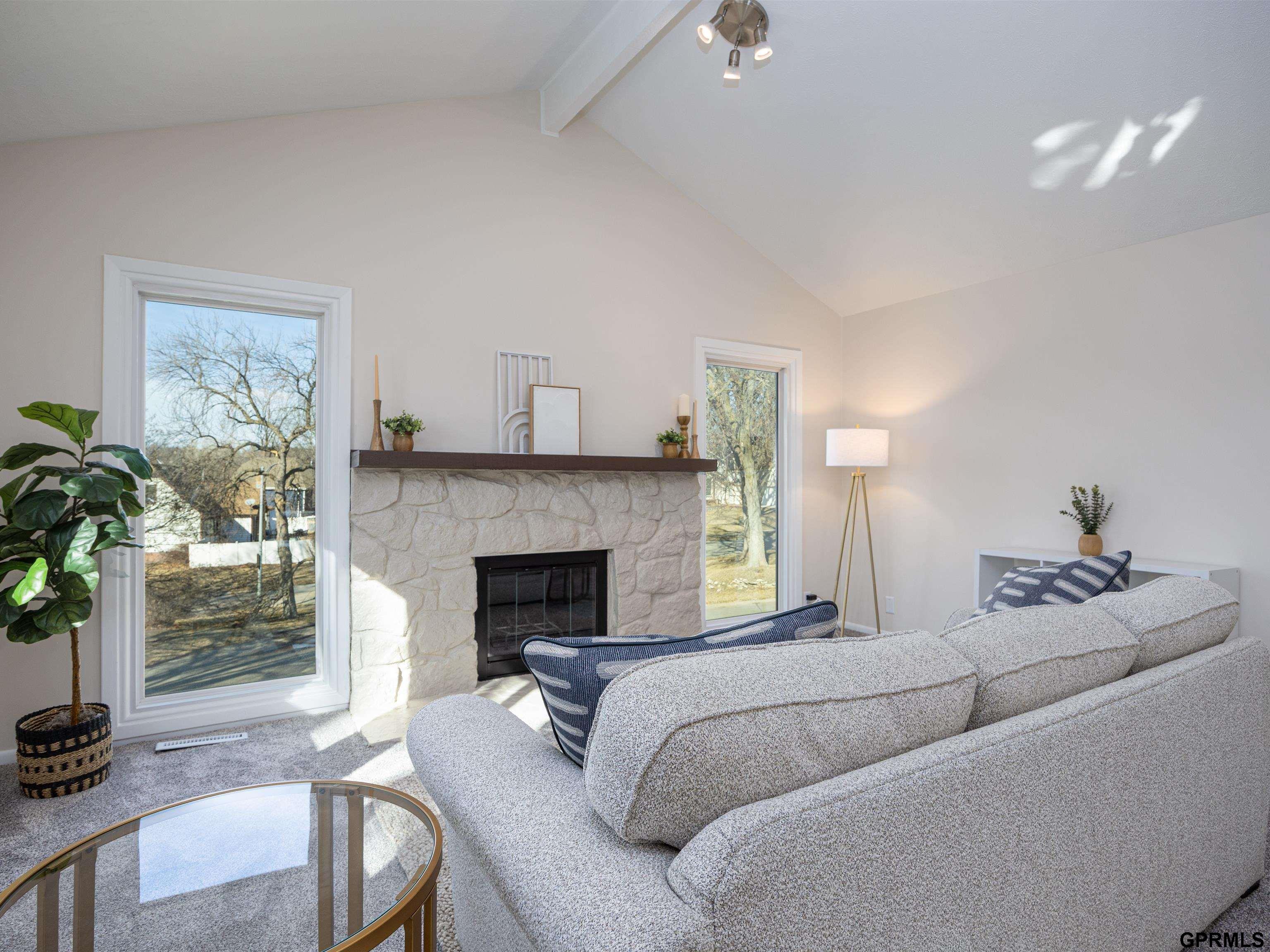 Enjoy maintenance-free living in this super clean 2-bedroom, 2-bath end-unit townhome, perfectly situated on a peaceful, treed lot close to Millard schools and shopping. The main level features a tiled entry, vaulted ceilings, new carpet and paint throughout, and a bright white kitchen with an adjoining dining area (new SS appliances as well!) The living room is warm and inviting with a beautiful stone fireplace, while the primary suite includes its own private bath. Step outside to relax on the covered deck or patio and enjoy the serene setting. The finished walkout lower level offers additional living space with a large rec room, a non-conforming bedroom, a half bath, and generous storage. All appliances stay, including refrigerator and washer/dryer.