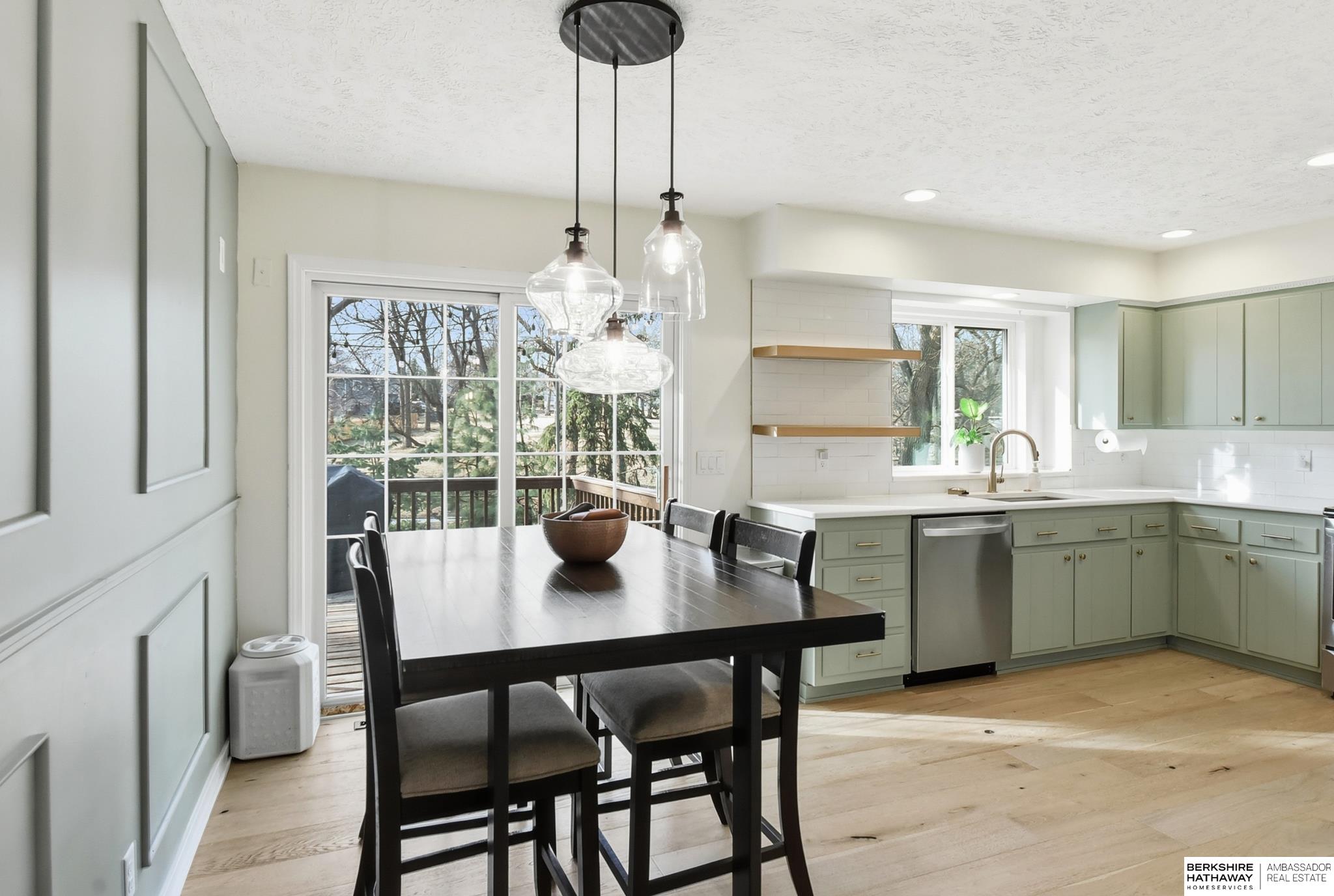 Contract Pending - Available for backup offers. Beautifully updated in the Elkhorn School District, situated on over a quarter of an acre with a private backyard backing to a peaceful common area. Move-in ready home features new flooring, custom living room built-ins, and a fully renovated kitchen with quartz countertops, SS appliances, and updated fixtures. All 3 bedrooms are on the main level, along with a spacious bath with double sinks. The primary suite offers a walk-in closet and private 3/4 bath. The walkout basement includes a large second living area with a cozy wood burning fireplace and flexible space that's perfect for a home office. Generous laundry room with utility sink and extra storage! Enjoy outdoor living with a fantastic deck, expansive patio, fire-pit area, and great storage shed. Oversized garage with a door to the backyard. Check out this gem today!