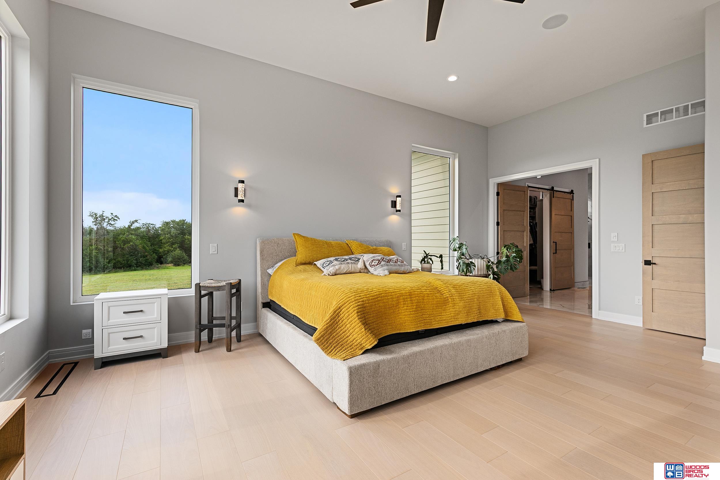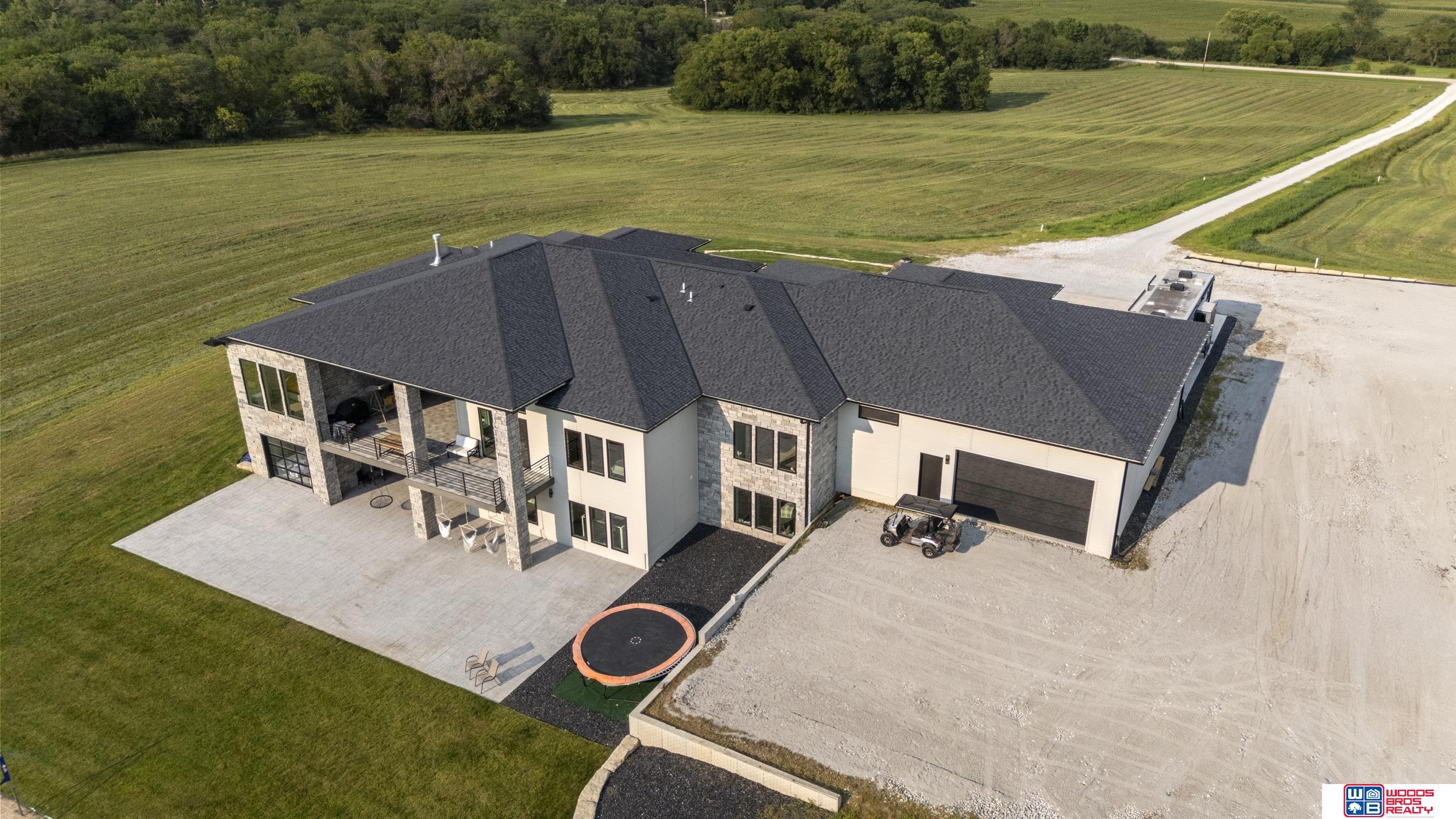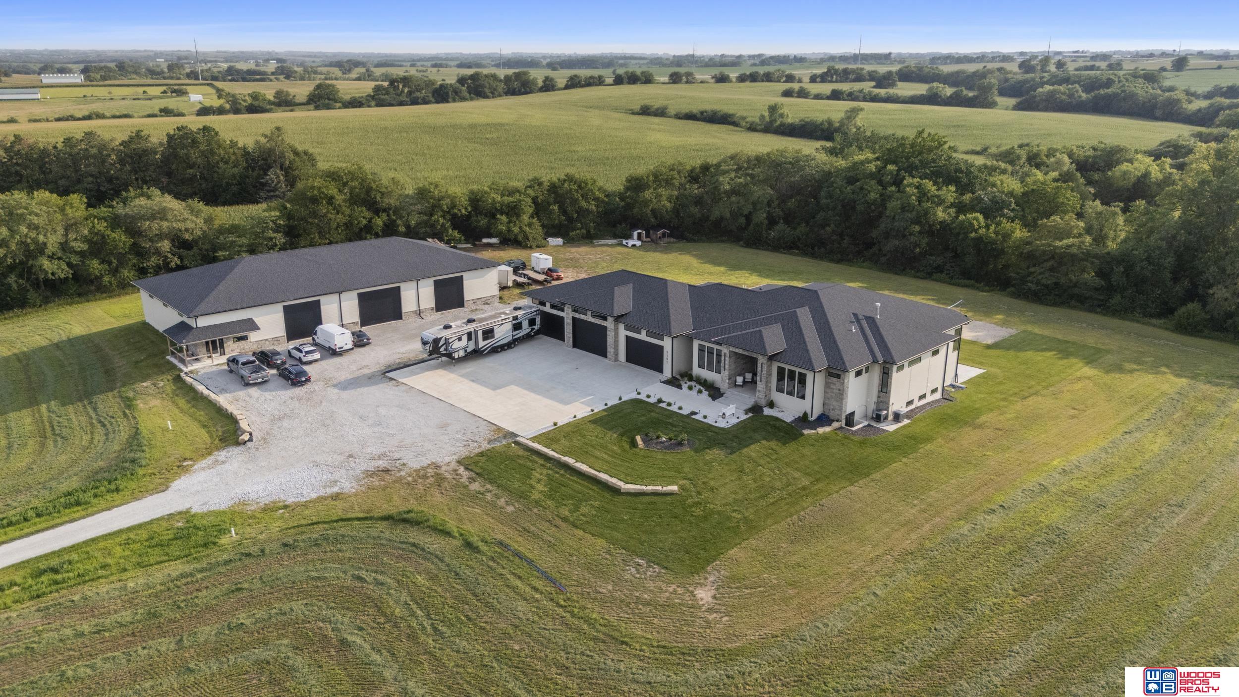 Exceptional new ranch on a private 20-acre walkout lot less than a mile from Hwy 2. With over 8,200 sq. ft. of finished living space, this estate offers 9 bedrooms, 9 baths, an office, and a rare 10-stall garage. Main level showcases soaring 15’ coffered ceilings, open kitchen/dining/living design, custom cabinetry, quartz countertops, walk-in pantry, stainless appliances, and mudroom with lockers. The luxurious primary suite is a retreat with dual walk-in closets, heated tile floors, double vanity, soaker tub, walk-in shower, and private laundry. Finished walkout basement adds 4 bedrooms, 3 baths, tall ceilings, enormous rec room with wet bar, storm shelter, heated floors, office, and additional laundry. Outdoor living impresses with a covered porch, 27x22 deck, and patio overlooking wooded views. Property also includes a 60x120 heated shop with 14’ doors for RVs, semis, or equipment. A rare blend of space, luxury, privacy, and convenience just minutes from Hwy 2.