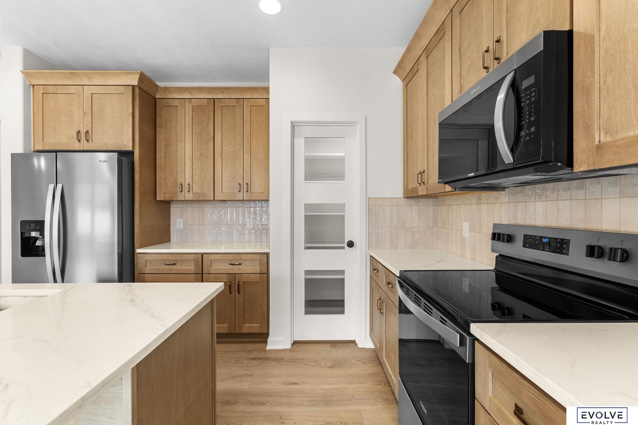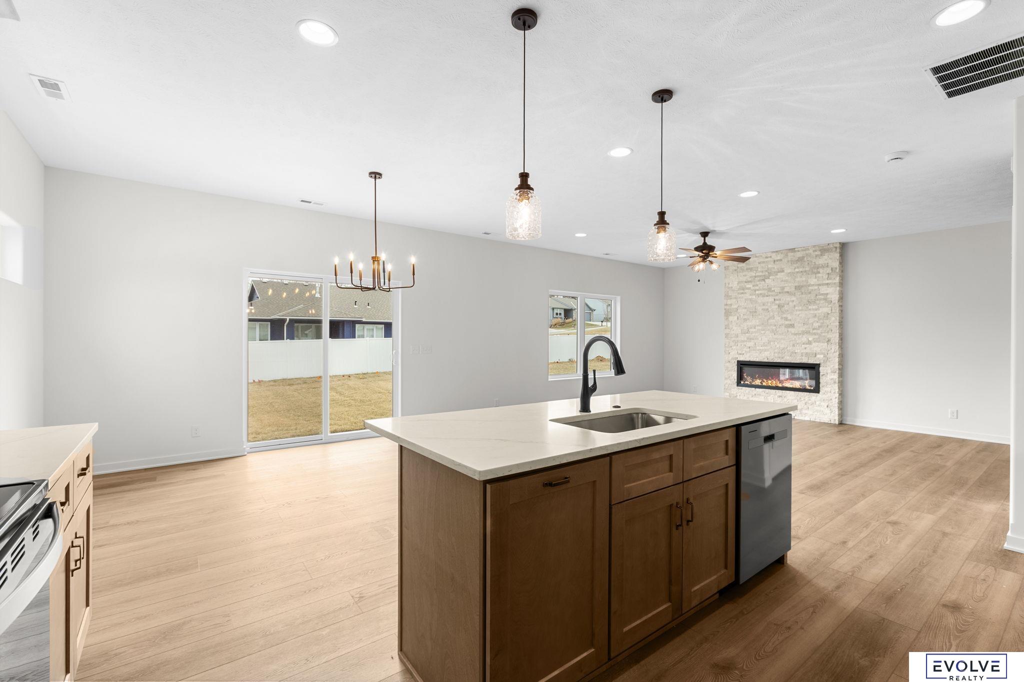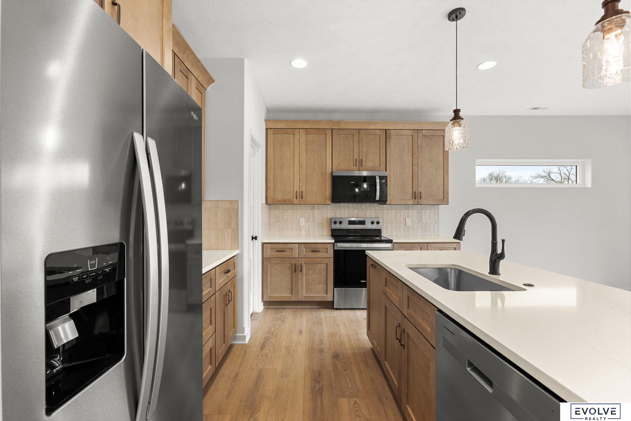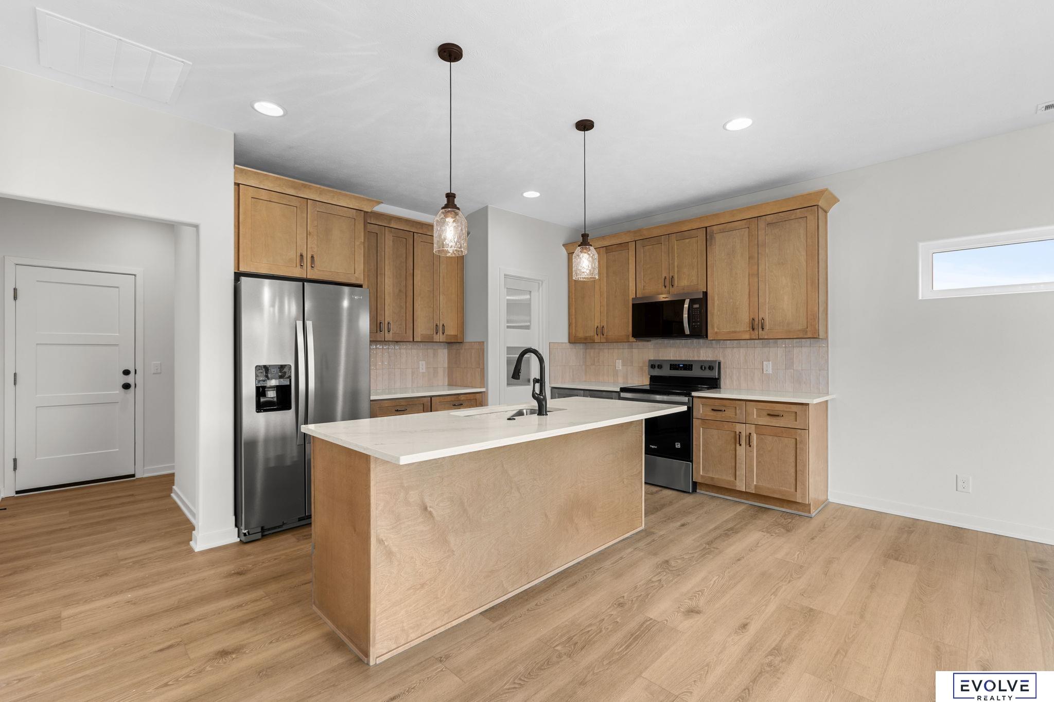 A stunning new build in Papillion showcasing thoughtful design and exceptional craftsmanship. This home features a spacious walk-in pantry, wide-plank LVP flooring throughout the main level, and tiled shower surrounds for a touch of luxury. The kitchen is a showpiece with quartz countertops, soft-close, dovetail cabinetry, and premium finishes that shine in every room. This home is built with a 2x6 frame with Smart LP siding and stone for efficiency. Built to impress and ready to welcome you home.