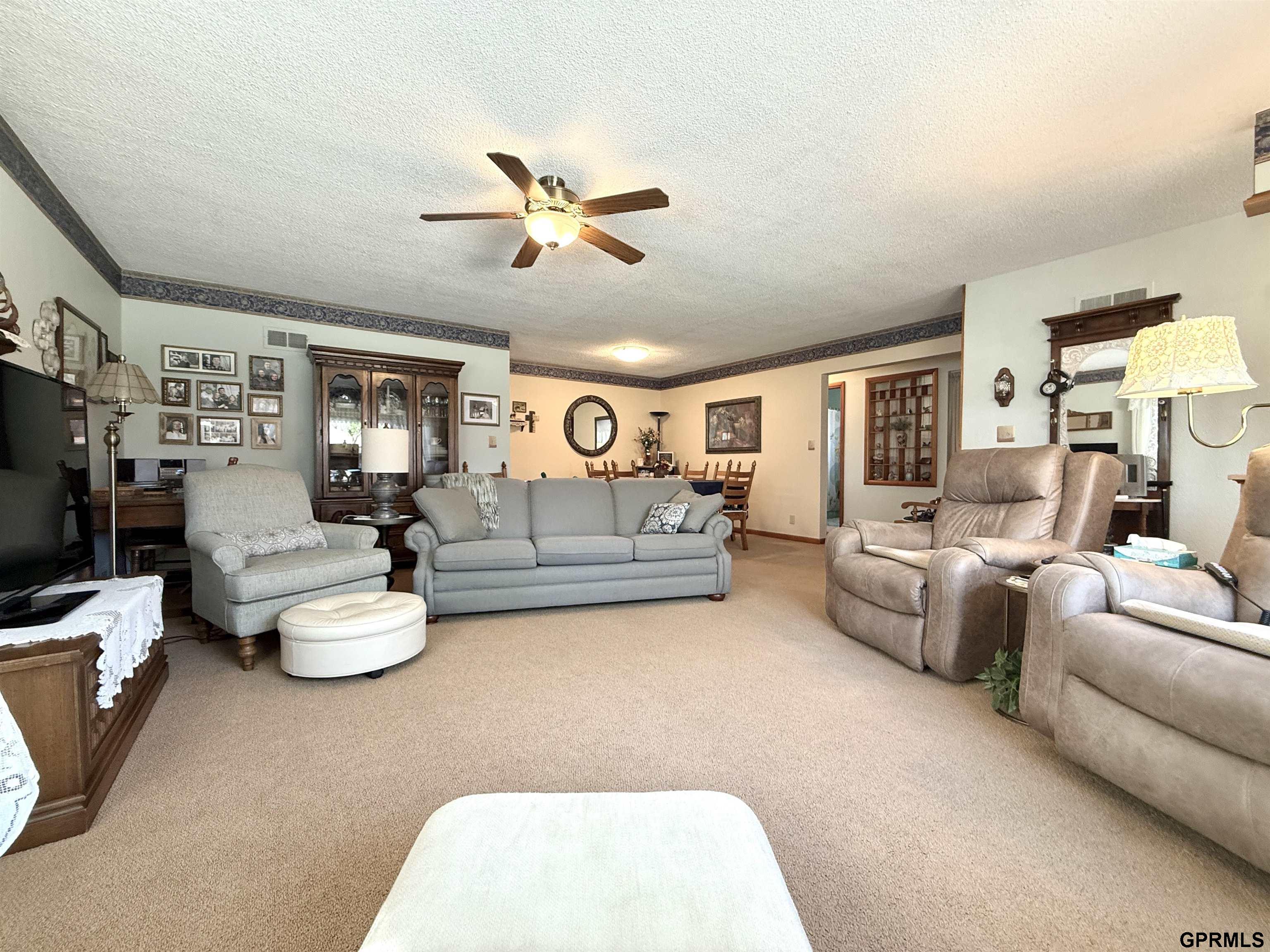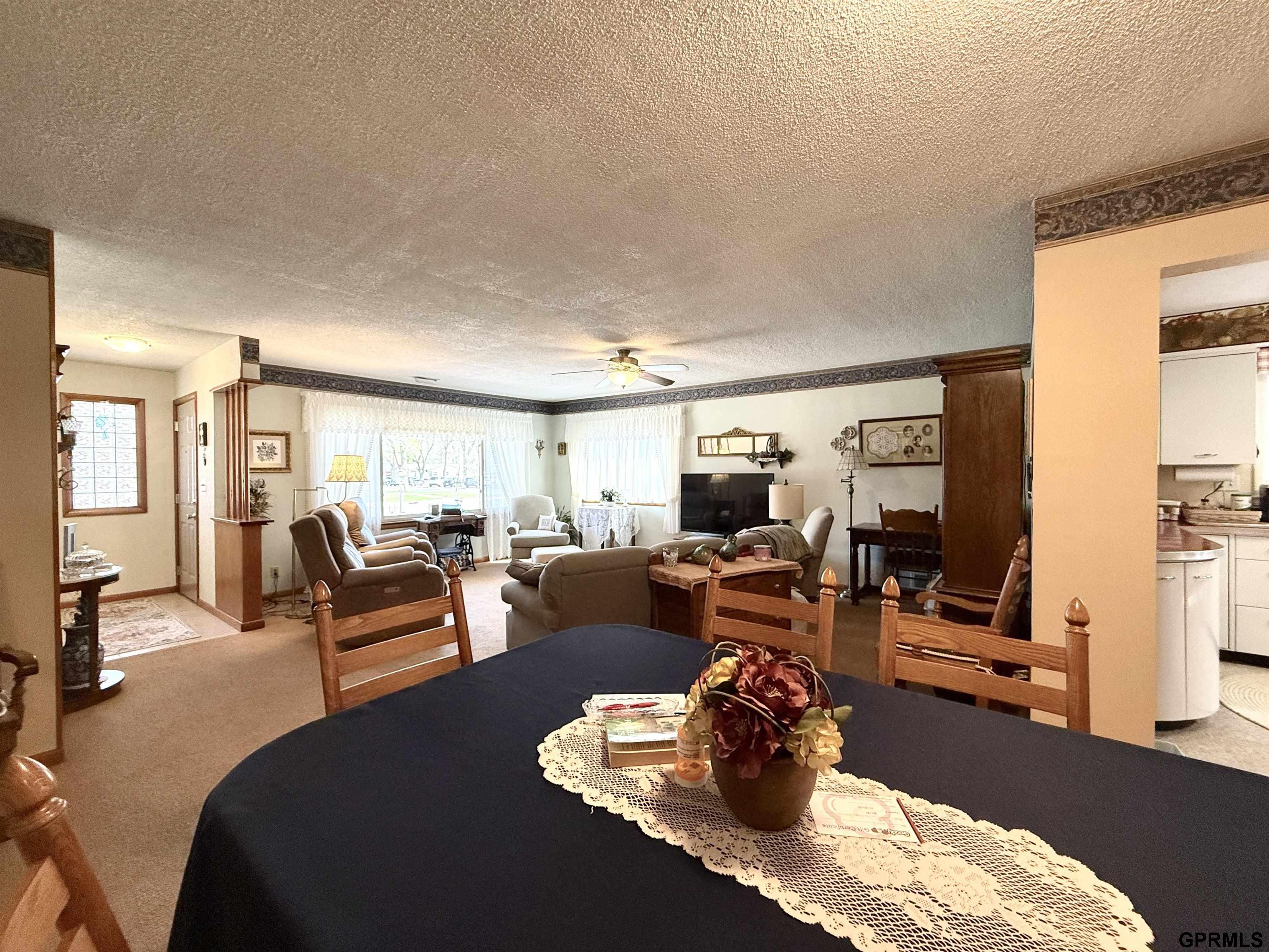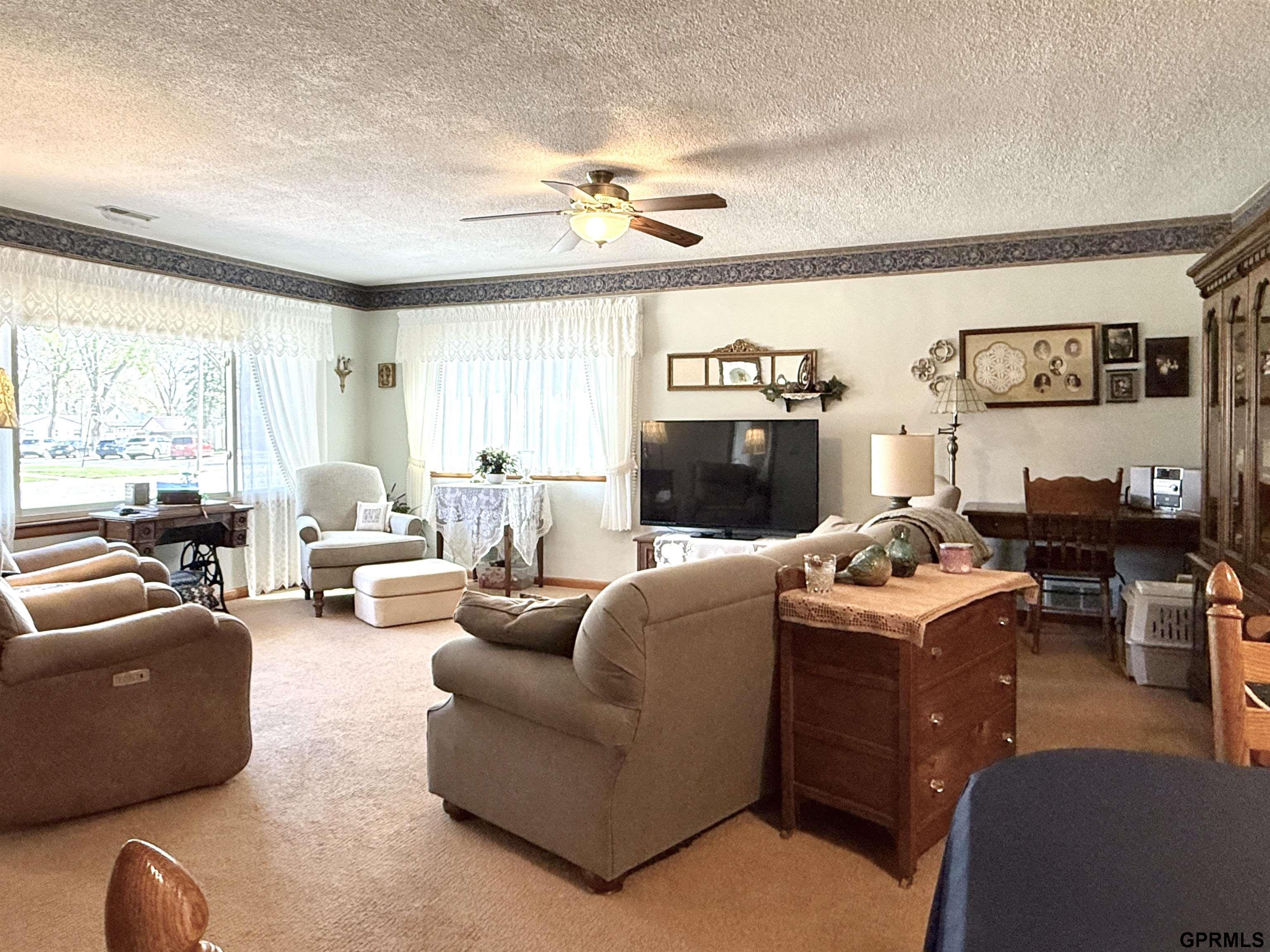 A MIGHTY one-level well-maintained home with BIG spaces! Pulling up to the house you notice the cultured stone exterior with upgraded (but easy to care for) landscaping. Sit a moment on the patio or walk inside to the spacious foyer. The living spaces, this is what you will love. The living and formal dining room have space for ALL the friends or family. The light in this room is beautiful. Next the cutest kitchen ever! Original cabinets, appliances that stay, & an informal eating area. The two bedrooms are in the west wing of the home and flank the sassy-colored bathroom. Also, the home office is a tiny but mighty addition to this home. Back thru the kitchen we head to the back entry / pantry with a sink. So much storage! Open the door to reveal the remaining 2nd bath and laundry and more storage. The house is not lacking in storage as you realize that there are 2 storage sheds outside that create a super-fun covered patio space with fence. Attached garage too!