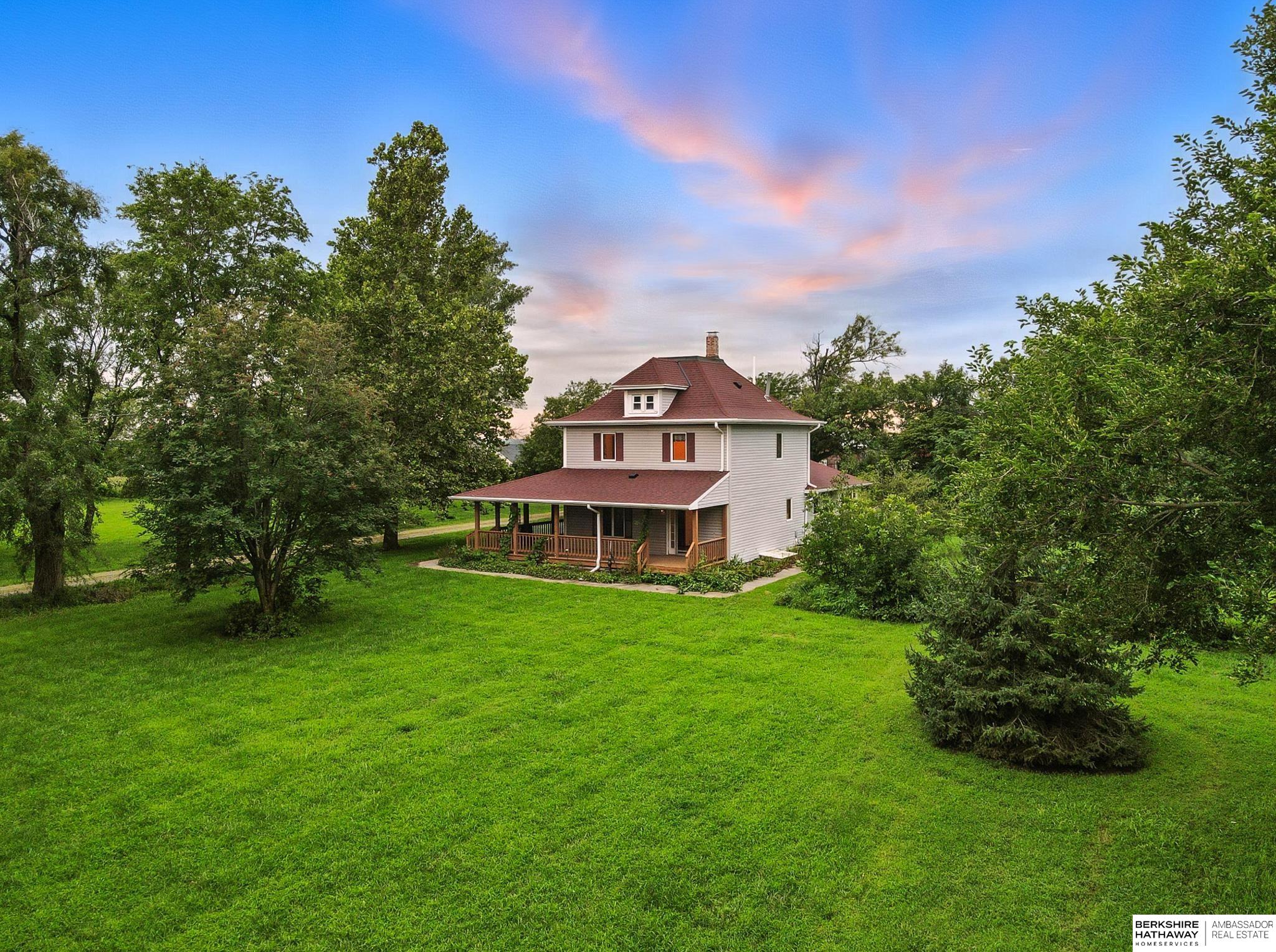 South of Blair, down a nearly fully paved country road, this 12+ acre retreat welcomes you with a custom masonry drive and panoramic views that make you slow down. Inside, a wide-open kitchen and dining space begs for laughter, late-night baking, and stories shared over coffee. The wraparound porch feels like something out of a novel — the kind where kids chase fireflies and morning light stretches across open fields. With your finishing touches inside, this home extends to four outbuildings: a 1280 SF shop, a 720 SF barn, a 624 SF garage with a 240 SF lean-to, and a 693 SF stable — all ready for animals, projects, or whatever dreams you’ve been waiting to build. Chickens? Bring them. Horses? Absolutely. A life with more sky, more space, and more meaning? It’s here. And you’re just minutes from Omaha, Fremont, and Elkhorn.