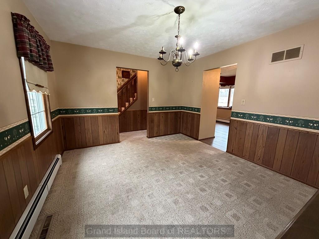 NEW PRICE!! Spacious and solid Sears home with great potential! Features 3 bedrooms upstairs, including a large primary suite with ensuite bath and walk-in closet. Main floor is sprawling with cozy fireplace, formal dining room, office area, and eat-in kitchen. Full basement includes an additional bedroom, bathroom, and abundant storage. Enjoy a screened-in patio overlooking a huge yard with a workshop building—perfect for hobbies or extra storage. Two-car attached garage is insulated with the option of gas heat. This home is ready for cosmetic updates, offering a great opportunity to add your personal touch. Seller is offering a $5,000 carpet allowance. Brand new central AC unit, and updated Pella windows help with the energy consumption.