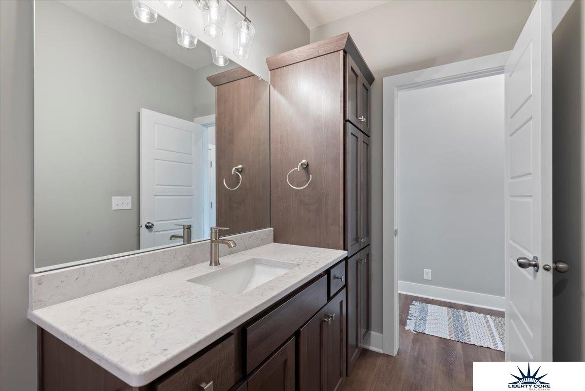 The Windham by Hallmark Homes Gallery series in Bennington's Copper Creek. Walkout lot with future views of new NRD lake. Farmhouse elevation with Hardie board and batten on front and covered porch. Hallmark's Gallery Series plans include 36" kitchen cabinets with crown molding, 12x10 deck and/or 12x10 patio, LVP in the main floor living room and upgraded lighting packages. Every Hallmark Home includes Quartz Countertops, GE Stainless Steel appliances, Moen plumbing fixtures, Luxury Vinyl Plank flooring, PureColor Carpet, 5-1/2" Base Trim, 2x6 Framed Exterior Walls, garage door openers, remotes and keypads, Stone on exterior and Sod w/ Sprinkler System! Tons of options to choose from! 1 Year New Home Warranty included. This home has not started construction. Photos are from model. Price reflects base price and lot price. Features shown in photos may not reflect list price. This home has not started construction, choose this plan or any of our plans and customize your selections!