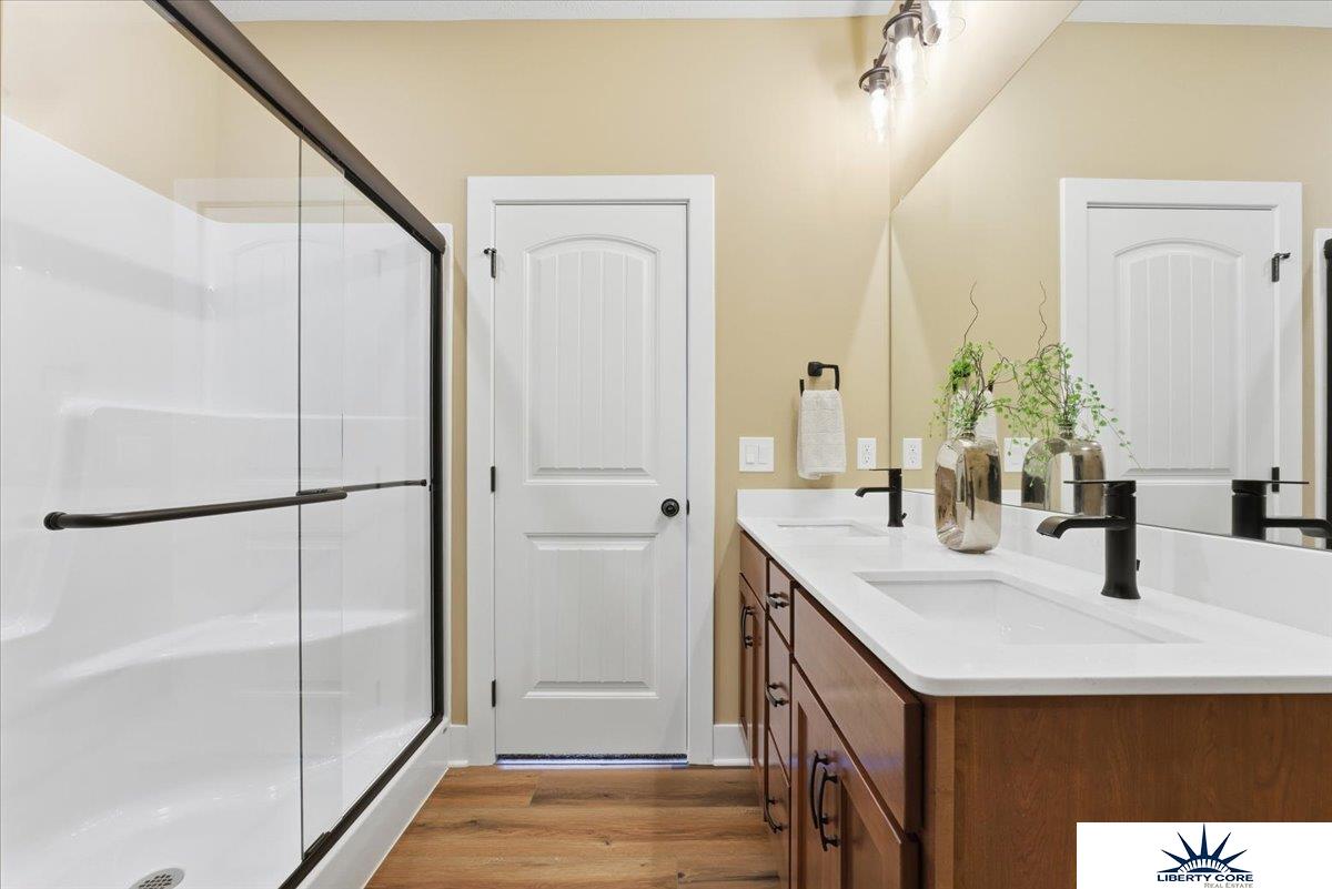 The Windham by Hallmark Homes Gallery series in Bennington's Copper Creek. Hallmark's Gallery Series plans include 36" kitchen cabinets with crown molding, 16x10 deck and/or 12x10 patio, LVP in the main floor living room and blinds in every bedroom. Every Hallmark Home includes Quartz Countertops, GE Stainless Steel appliances, Moen plumbing fixtures, Luxury Vinyl Plank flooring, PureColor Carpet, 5-1/2" Base Trim, 2x6 Framed Exterior Walls, Stone on exterior and Sod w/ Sprinkler System! This home features and extended garage and large corner lot! 1 Year New Home Warranty included.