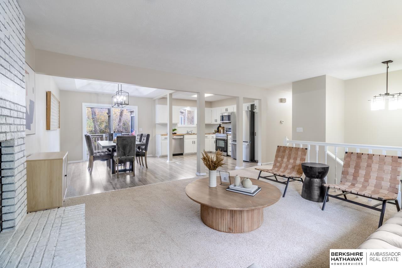 Step inside this cheerful split-entry home offering 3 bedrooms and 3 bathrooms! Enjoy brand-new carpet throughout, fresh LVP flooring in the kitchen and dining area, all-new kitchen appliances (2024), and a brand-new roof (2025). The main level features a bright, welcoming living room with a cozy fireplace and an open kitchen that flows right into the dining area—perfect for gatherings. Slide open the door to enjoy morning coffee or evening sunsets from the deck, or step into the sunroom for year-round relaxation. Downstairs, you’ll find a spacious family room with a second fireplace, a walkout basement, and convenient laundry space—everything you need for comfortable, stylish living!