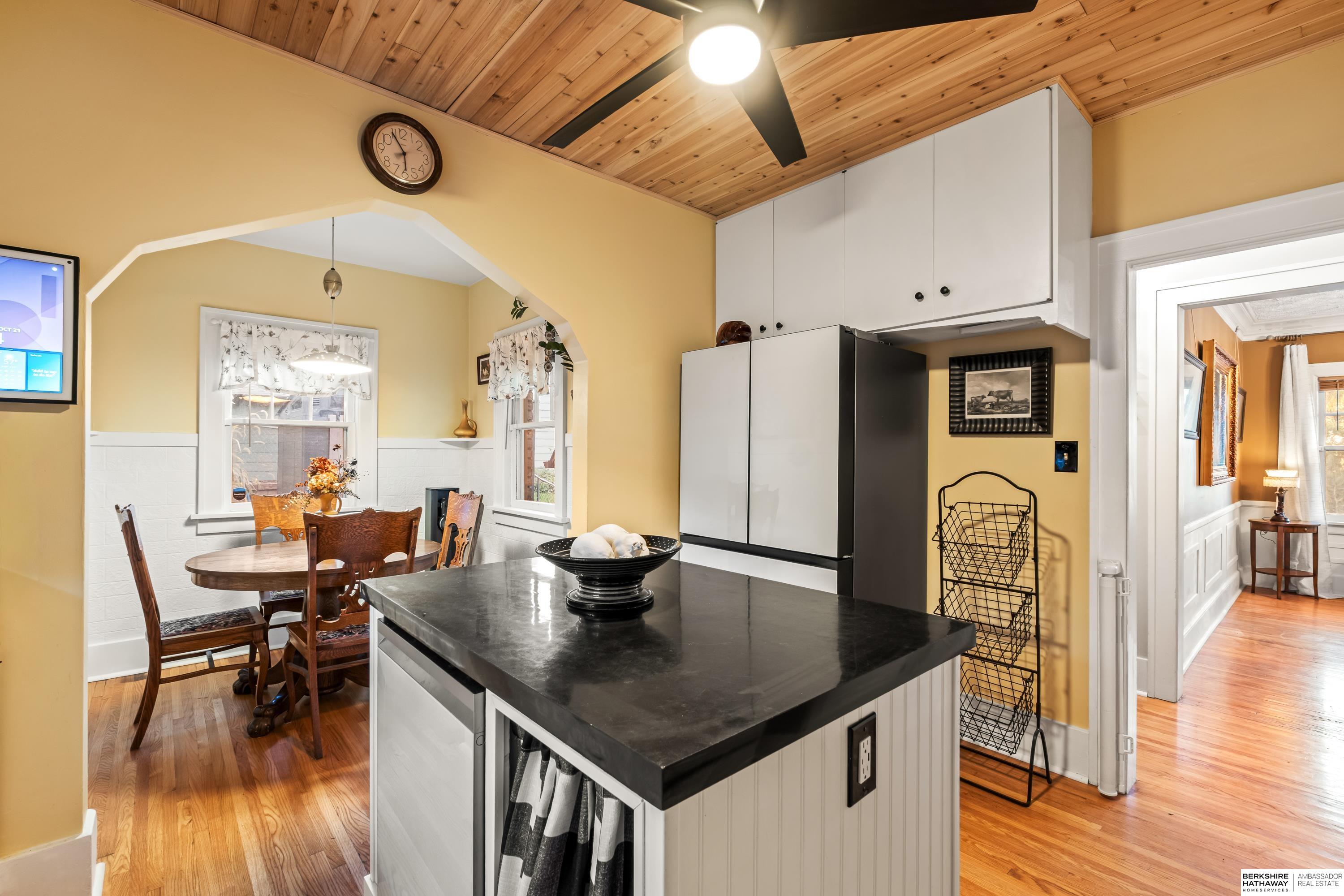 Come live on top of the world in Omaha's coveted Wyman Heights neighborhood! This 1925 custom 1.5-story home offers sweeping Missouri River views and the perfect blend of character and modern comfort. Featuring 3 bedrooms, 3 baths, and over 2,000 sq. ft. of finished living space, the home has been thoughtfully updated throughout. The renovated kitchen includes a new ceiling, fixtures, and finishes; the primary suite features a new walk-in closet, sitting area, and remodeled bathroom with custom shower. Enjoy upgraded electrical, PEX plumbing, insulation, and fresh paint. The finished lower level adds extra living space with new flooring, appliances, and an updated bath and kitchen. Exterior updates include a new roof, gutters, window wraps, front porch railing, shed, and refreshed landscaping with new stonework. A rare opportunity to own a private retreat with breathtaking views in historic Ponca Hills!