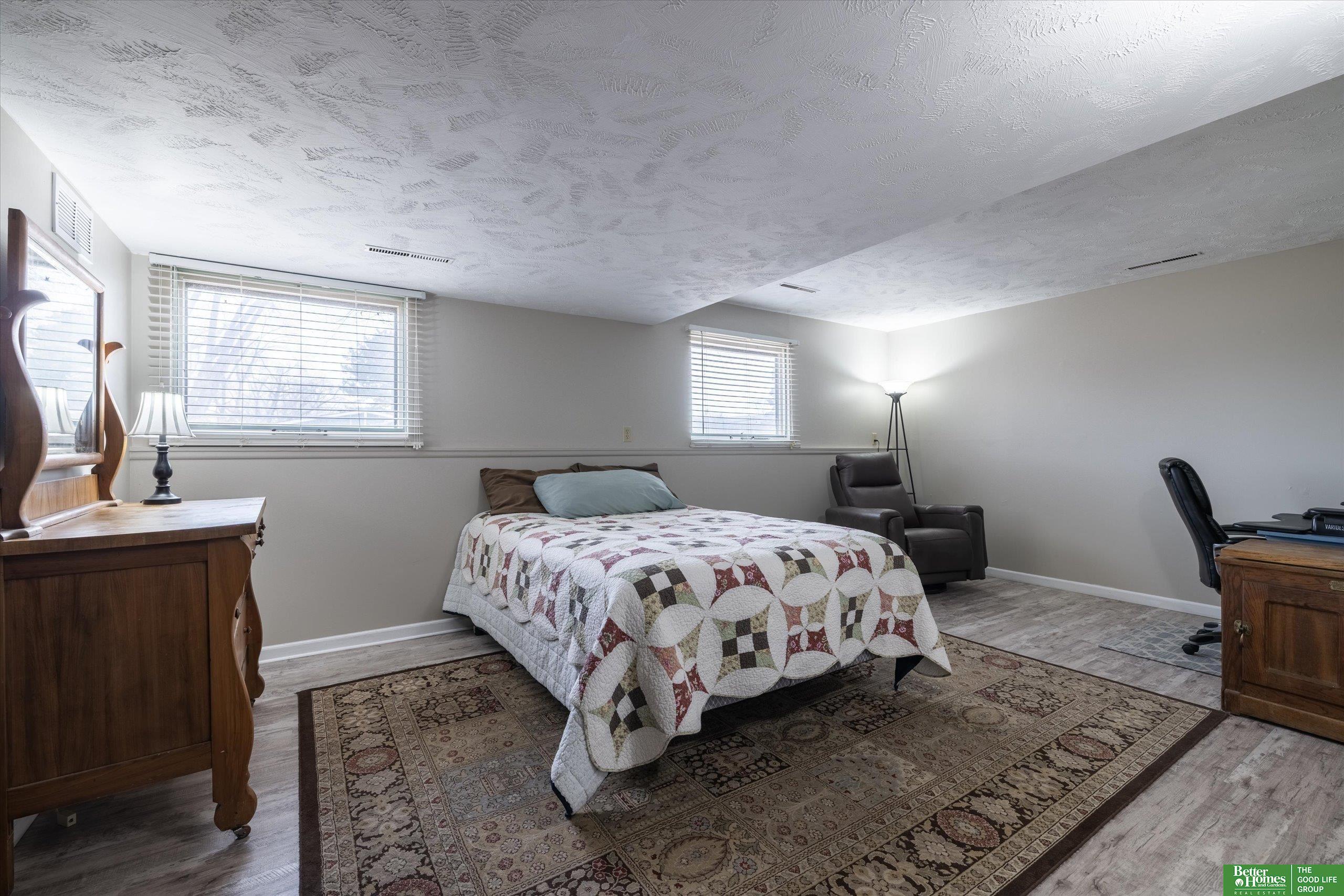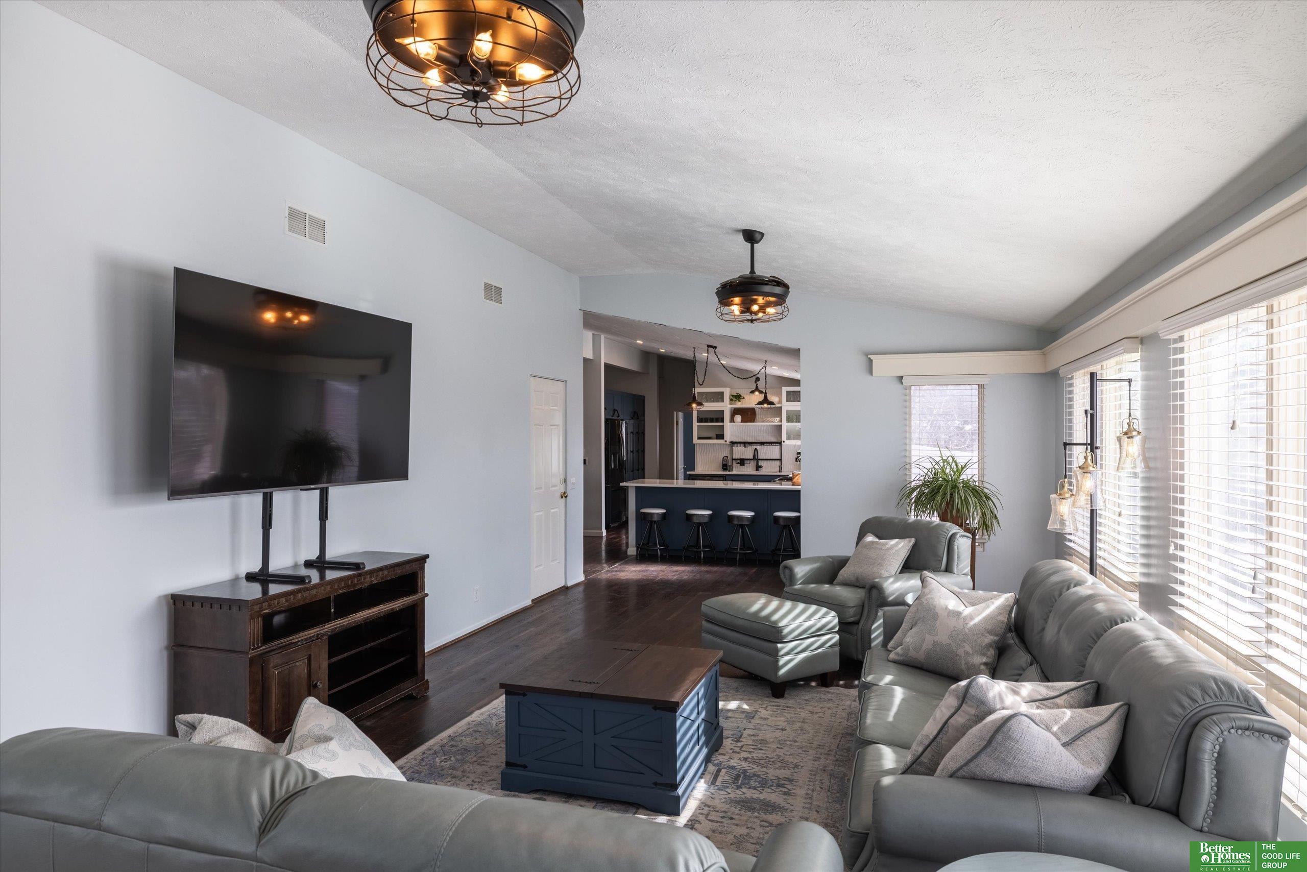 **OPEN HOUSE 2/15 from 2 PM to 3:30 PM**. Mid-century charm meets modern updates in this beautifully maintained home! Updated wood parquet decking on the inviting front porch sets the tone for the character and warmth inside. Vaulted ceilings and an open floor plan create a bright, airy feel throughout. The updated kitchen features LVP floors, quartz countertops, farmhouse sink, gas range, stainless steel appliances, soft-close drawers, tile backsplash, pull-out storage, and ample cabinetry. A spacious family room with LVP floors, oversized windows, vaulted ceiling, fresh paint, and patio access. The main level includes a large primary suite with walk-in closet and a full hallway bath. The lower level offers a versatile flex room plus a generous secondary bedroom with walk-in closet. Major updates include new furnace, A/C, and humidifier (Oct 2024) and new roof (2021). Additional highlights: sprinkler system, RV parking pad, driveway for up to 5 cars, vinyl siding & brick exterior.